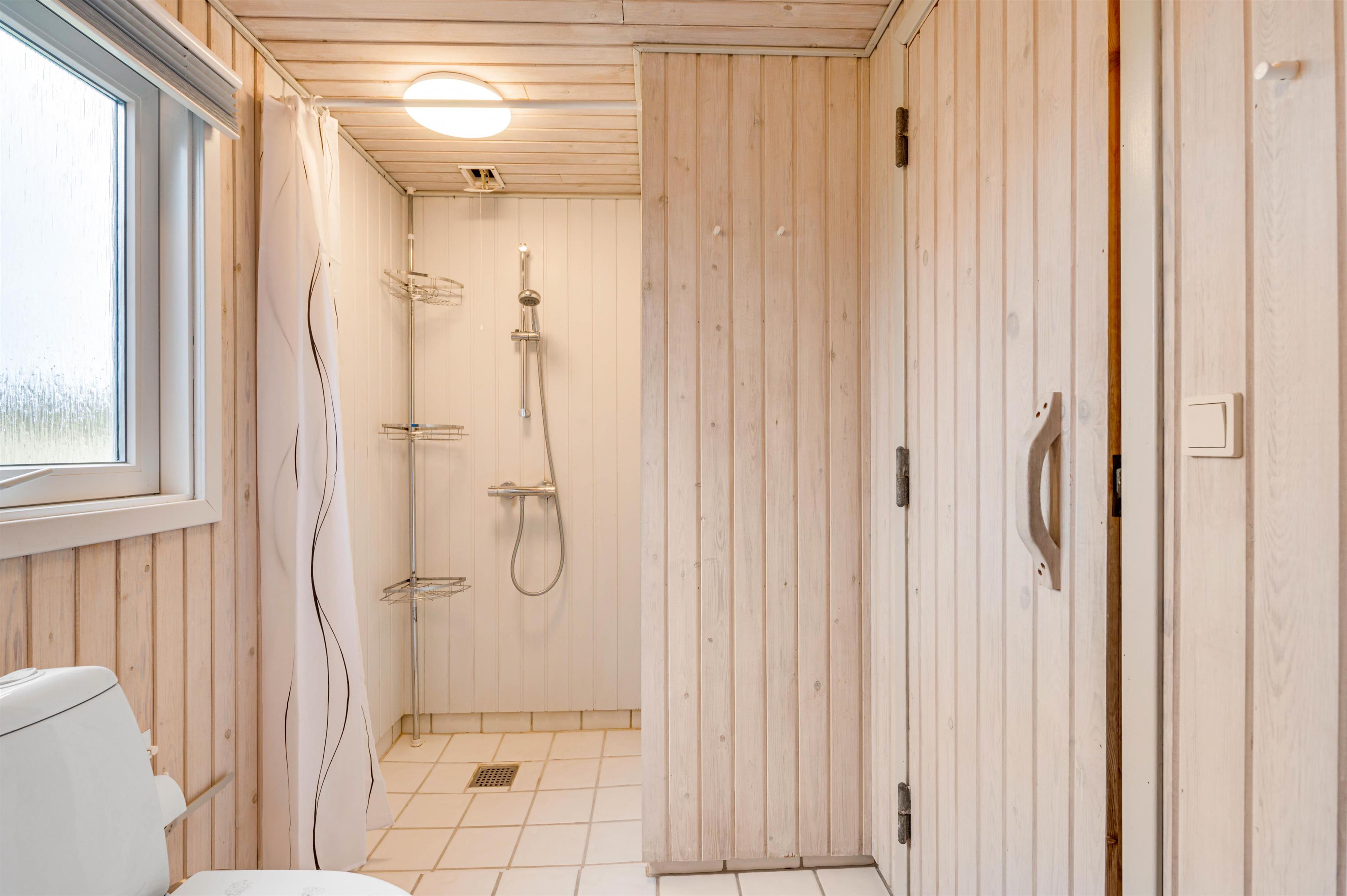 Højdepunktet i det renoverede sommerhus er saunaen, der indbyder til mange afslappende stunder i løbet af jeres ferie. I kan træde ind i saunaen fra sommerhusets badeværelse, sætte jer godt til rette og bare slappe helt af, så I kan få ladt jeres batterier op igen.