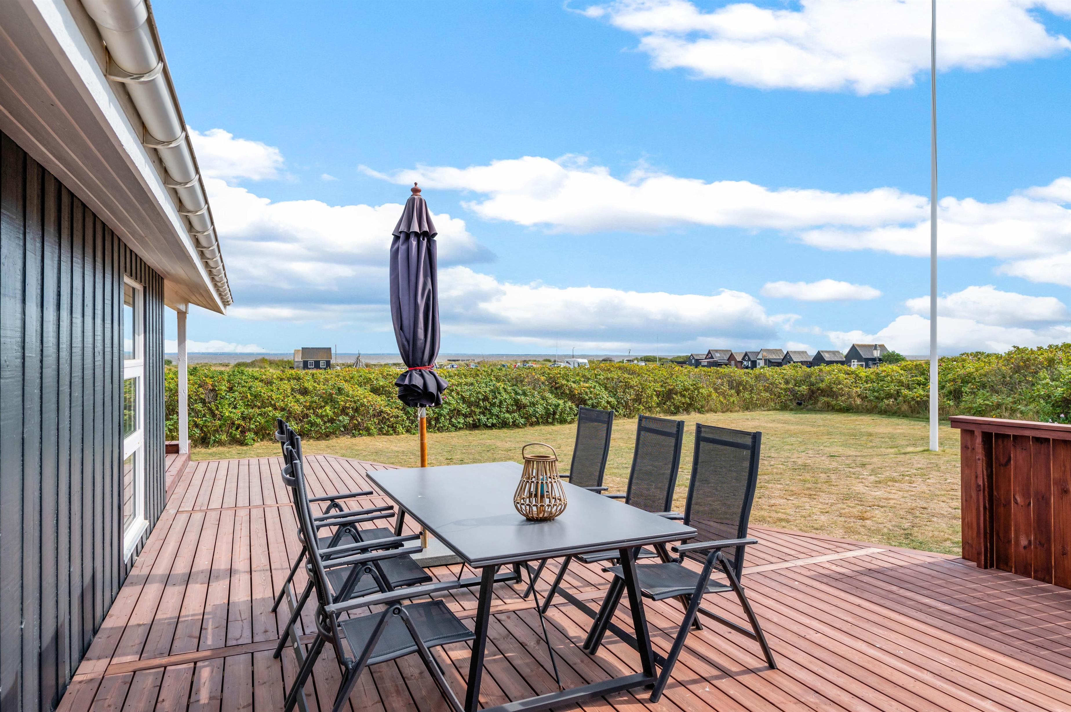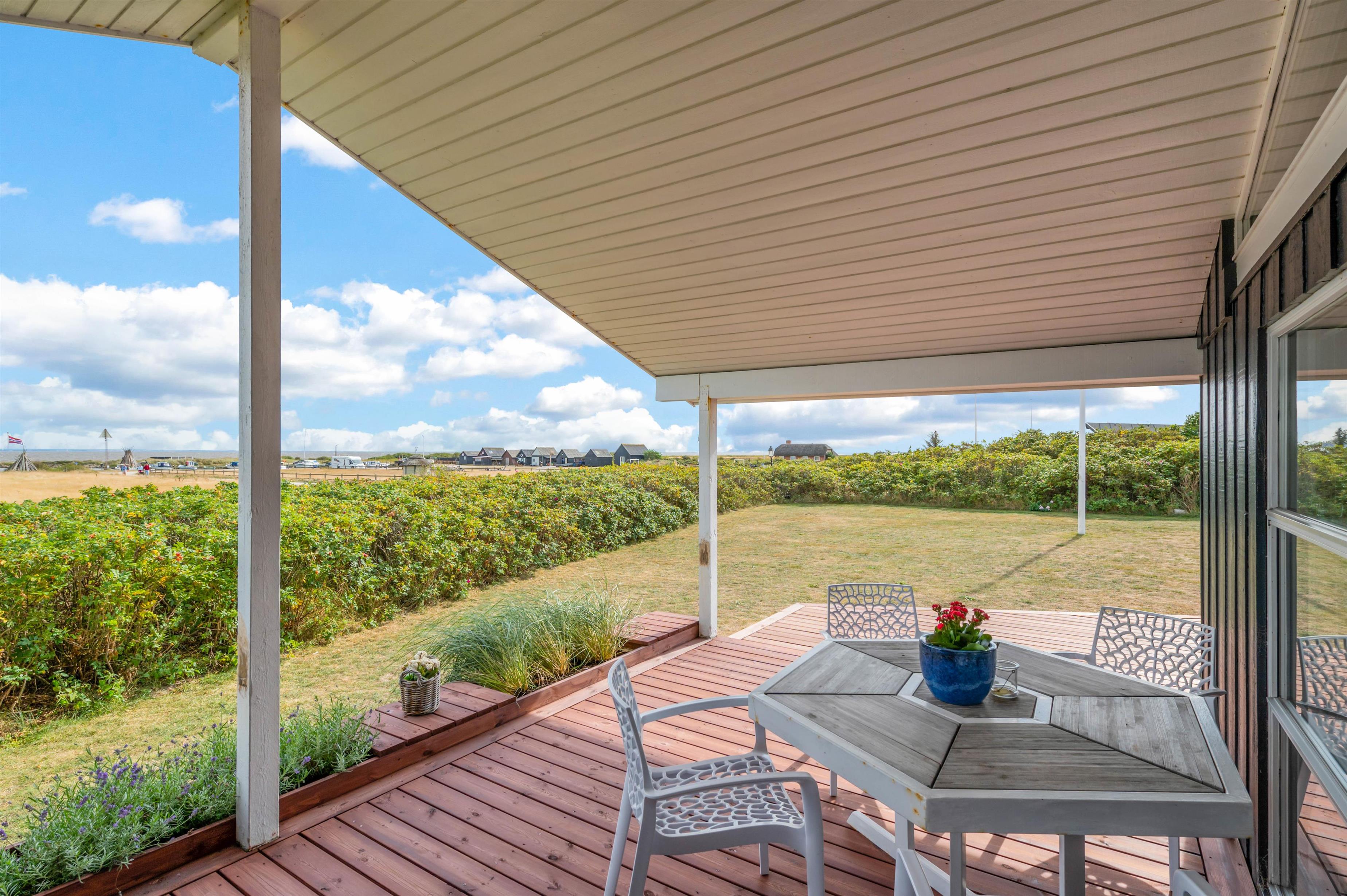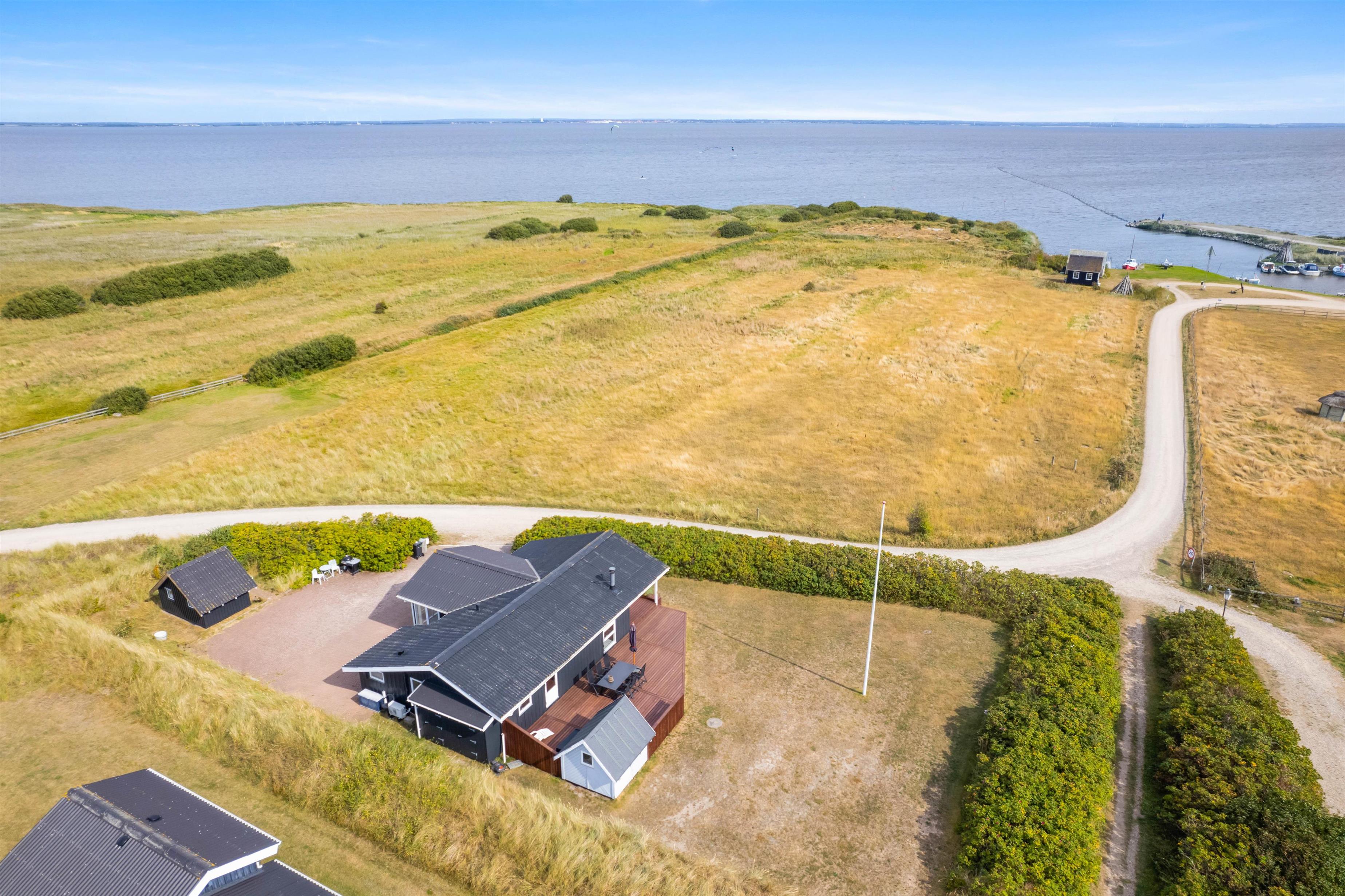 Udendørs venter jer blandt andet en terrasse, der vender mod syd, hvor I kan nyde sol meget af dagen. Her kan I sætte jer godt til rette i havemøbler og liggestole, mens I bare nyder solens varme stråler. Herfra har I desuden en dejlig fjord- og havneudsigt.