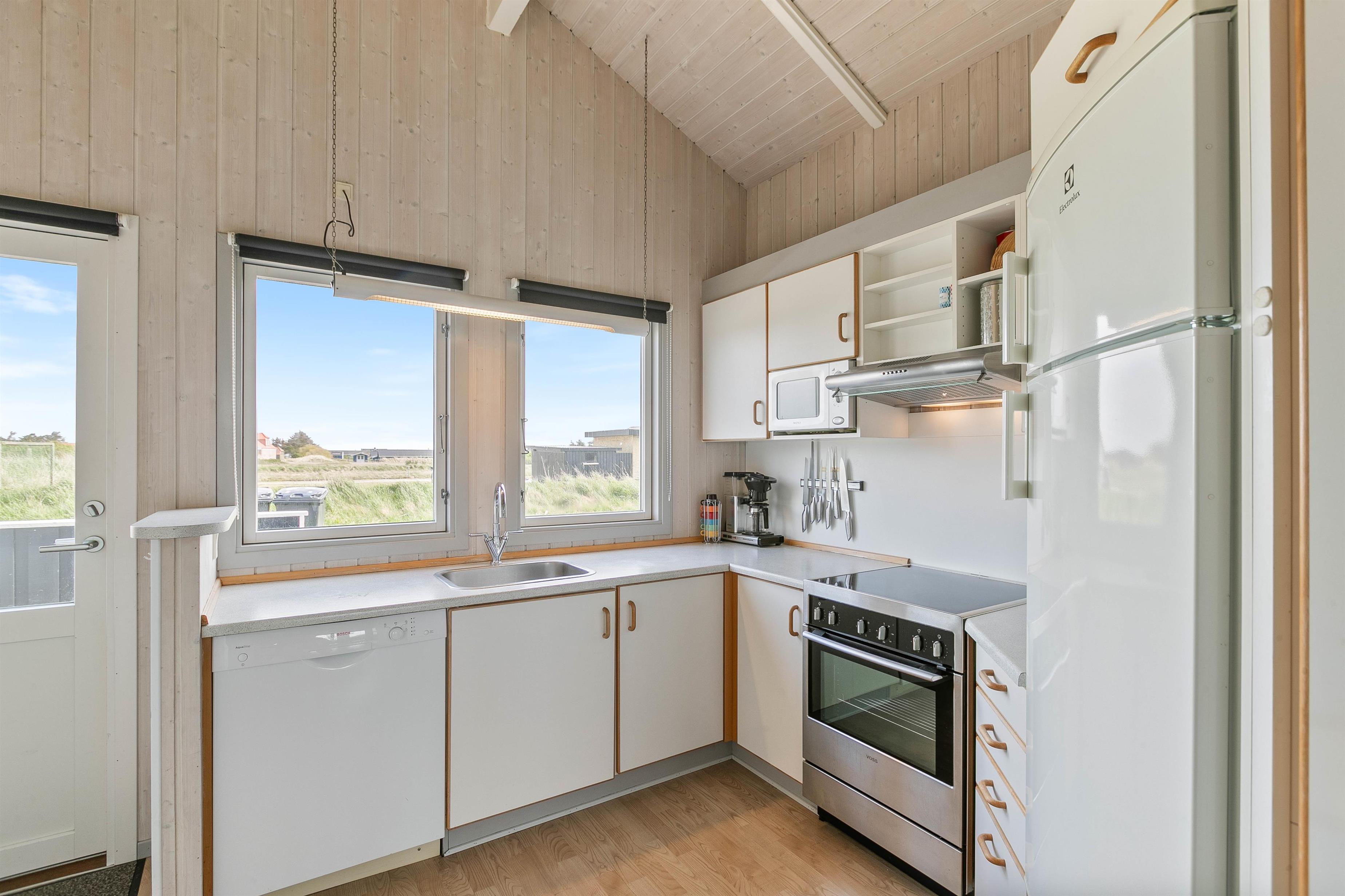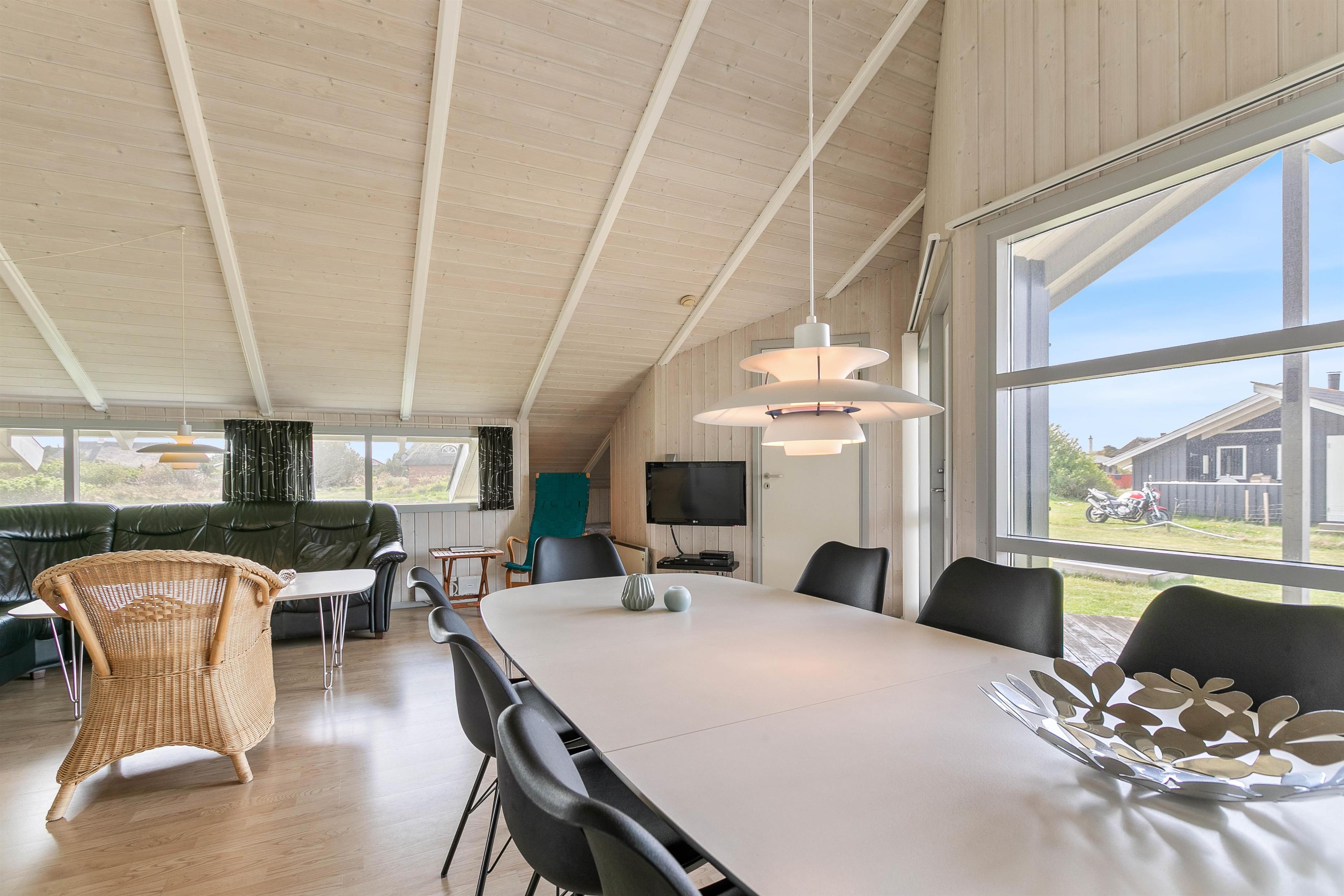Et rigtigt hyggeligt sommerhusområde midt på tangen, mellem Hvide Sande og Søndervig. Ikke langt fra huset ligger et stort fredet hedeområde med lille naturcenter og Nr. Lyngvig Fyr, hvor en tur op i toppen er et absolut “must”. Ellers er et besøg i Hvide Sande og Søndervig også obligatorisk. Her venter gode restauranter og spændende specialbutikker på dig.
