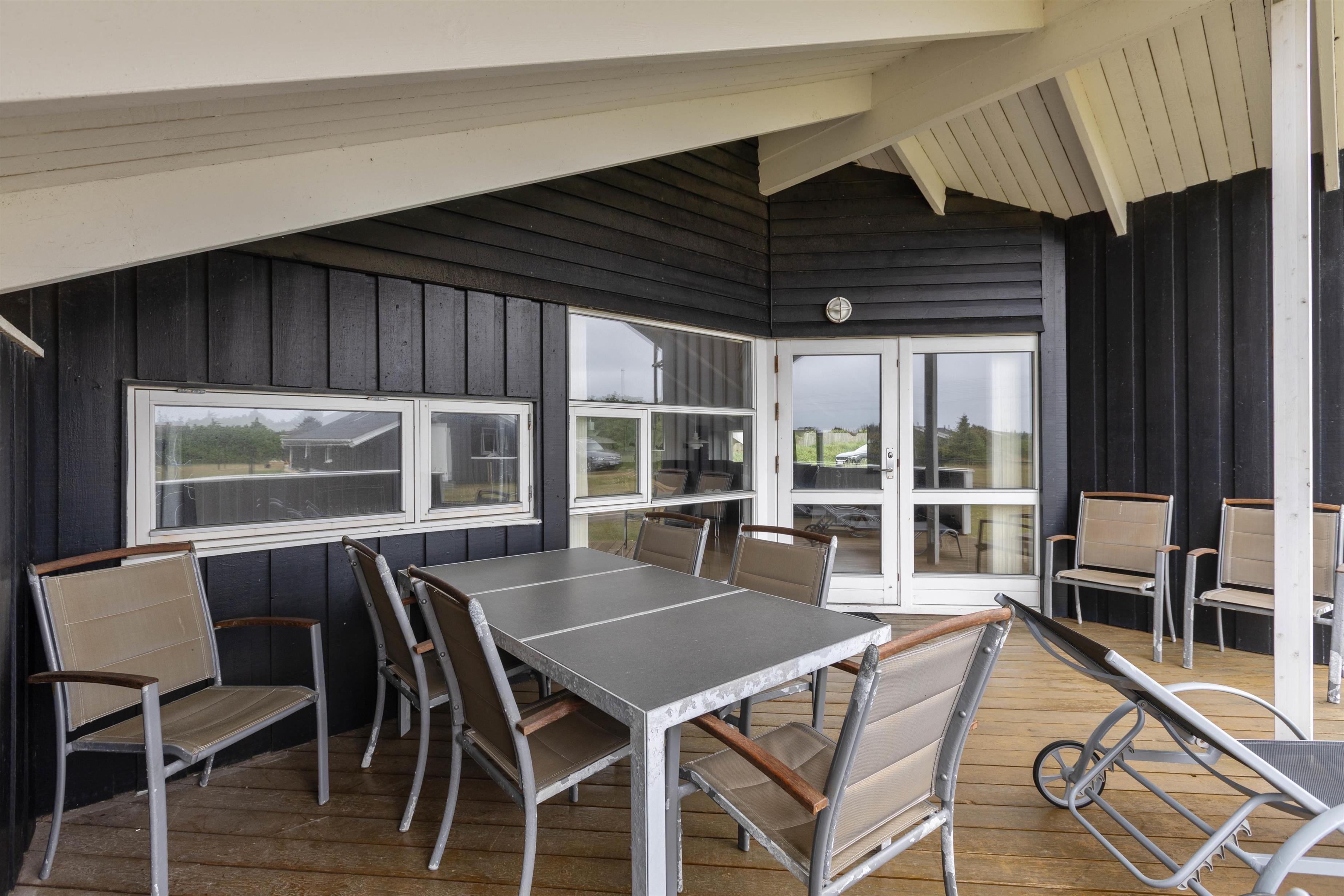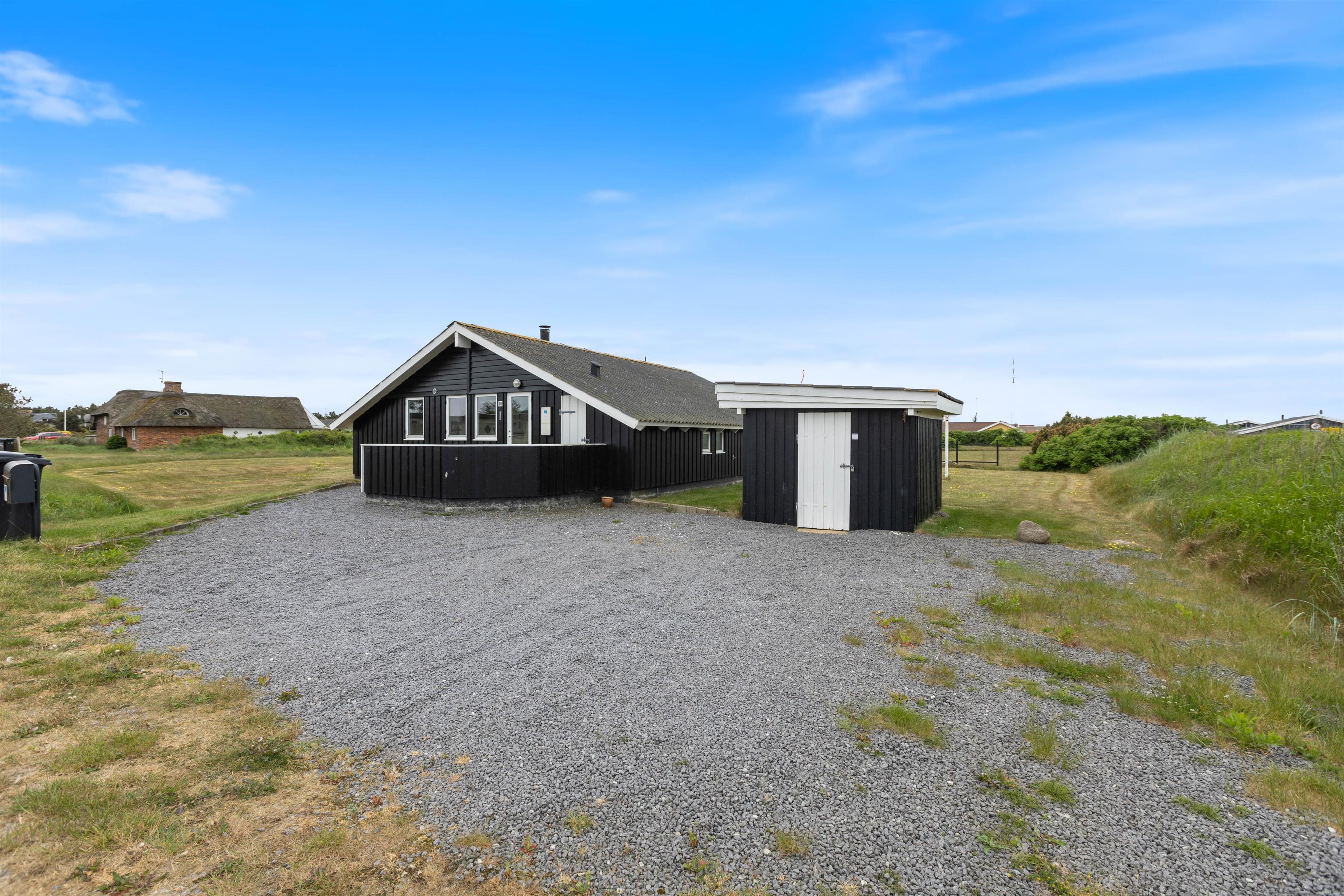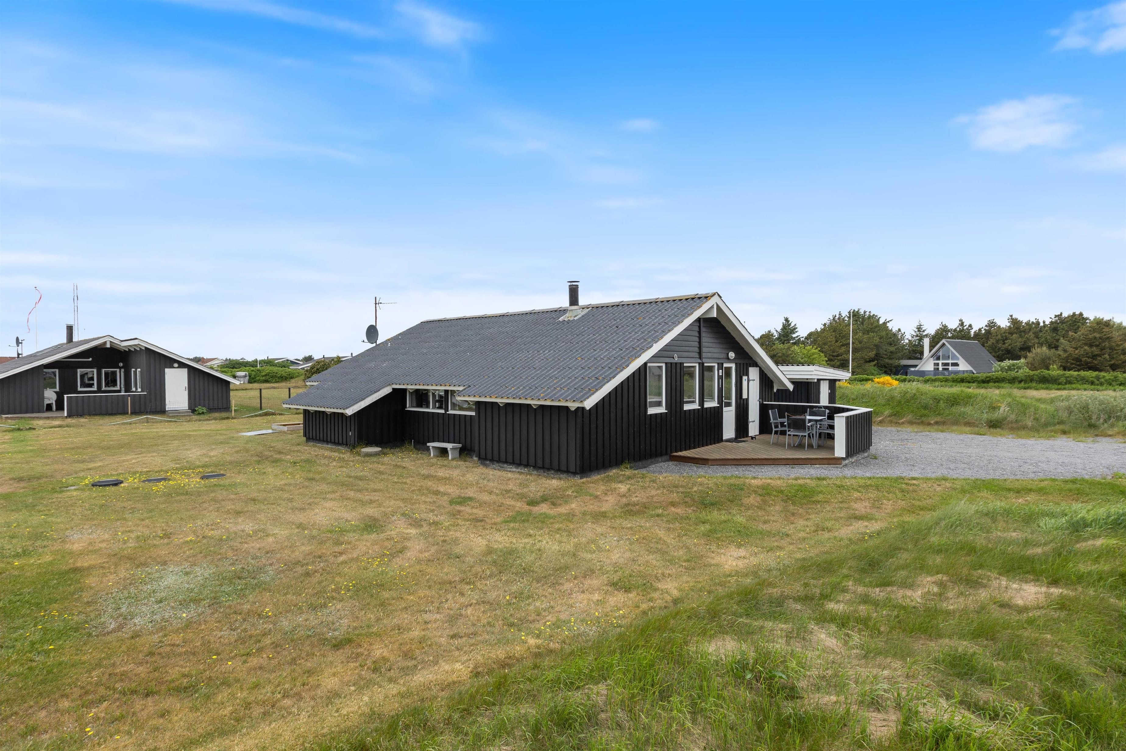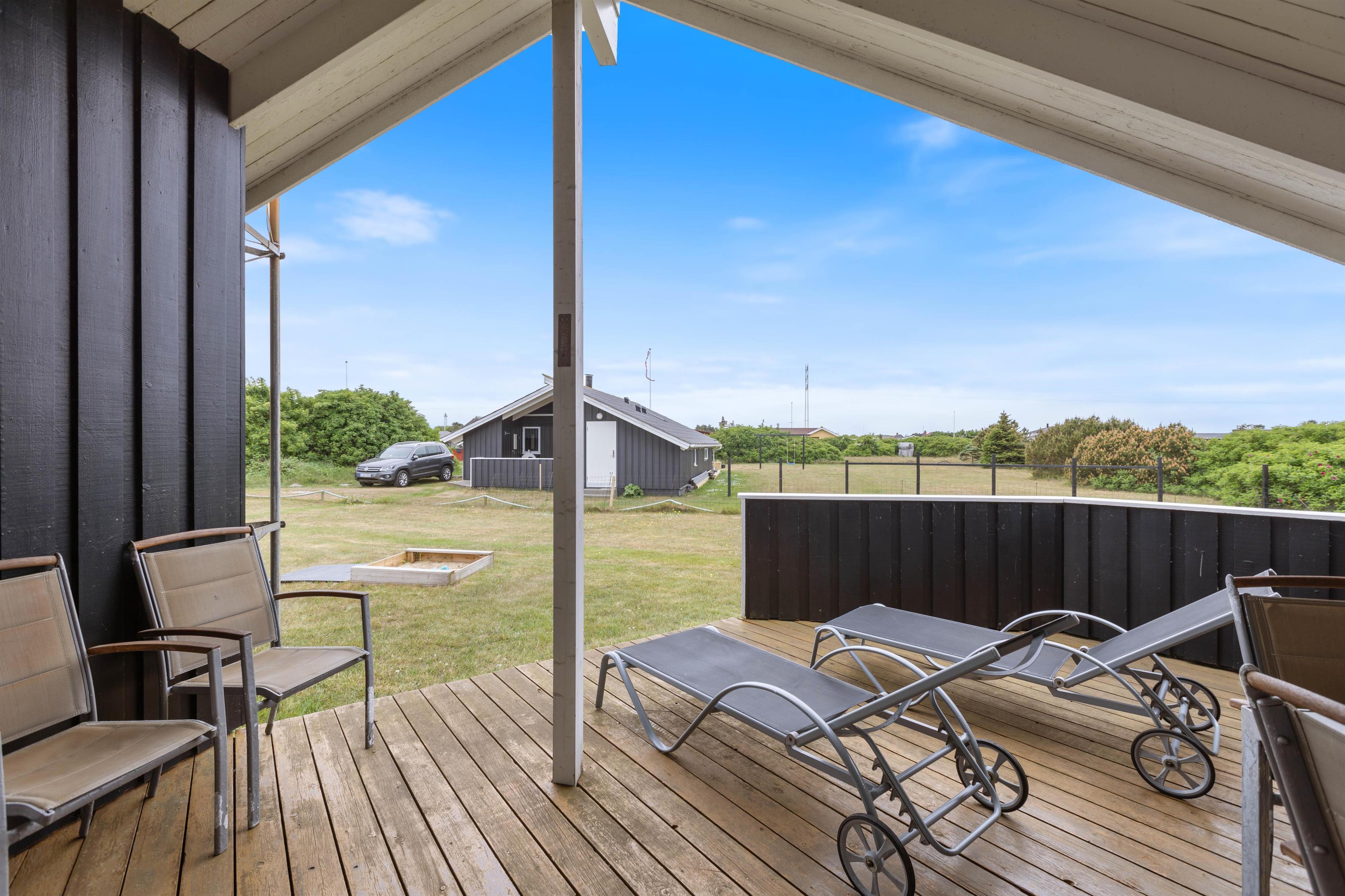 Dejligt og velholdt sommerhus beliggende i et hyggeligt sommerhusområde nord for Hvide Sande. Huset ligger på en plænegrund med gode muligheder for leg og boldspil, her er også opstillet sandkasse og gynge til de mindste.