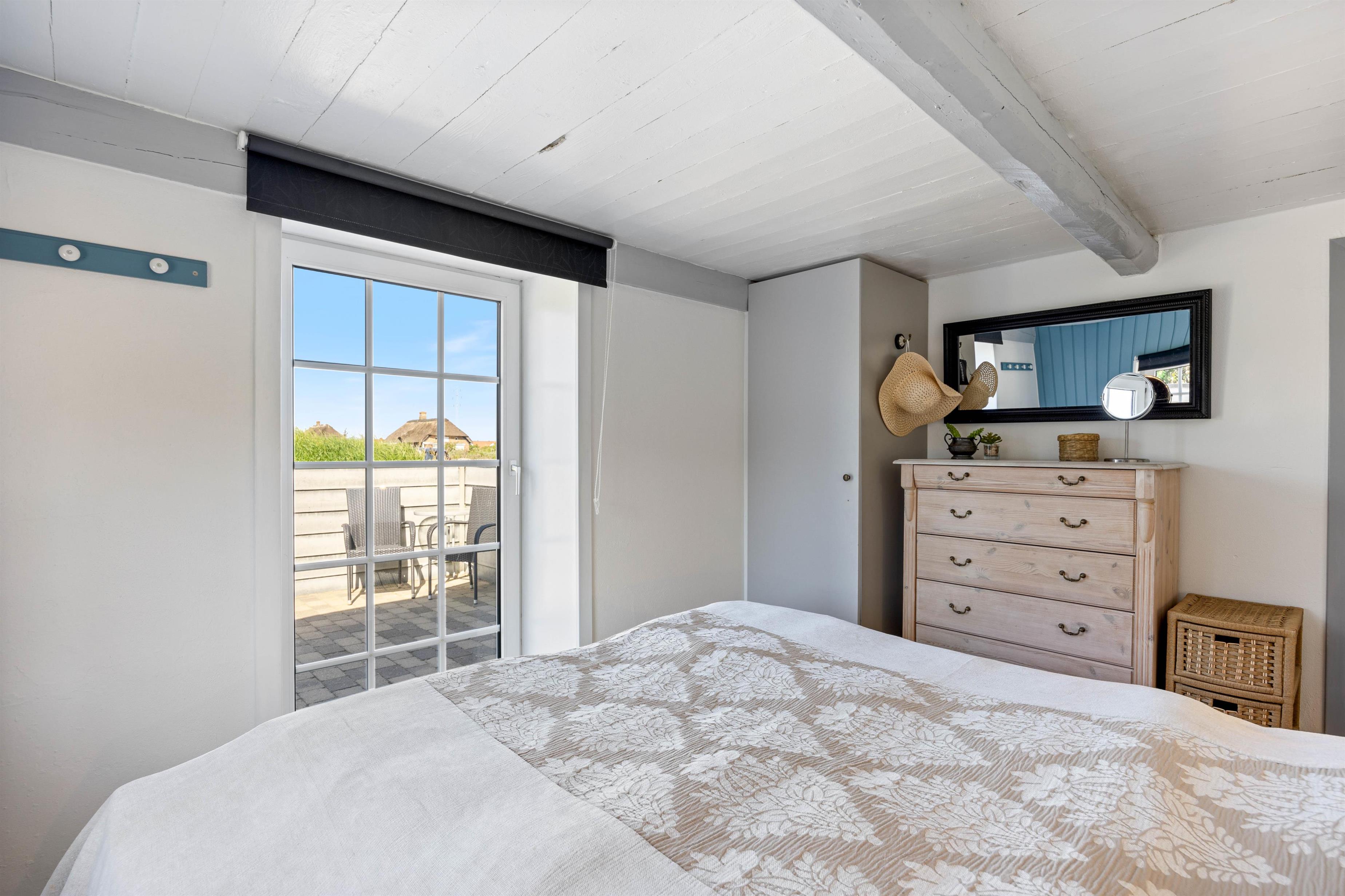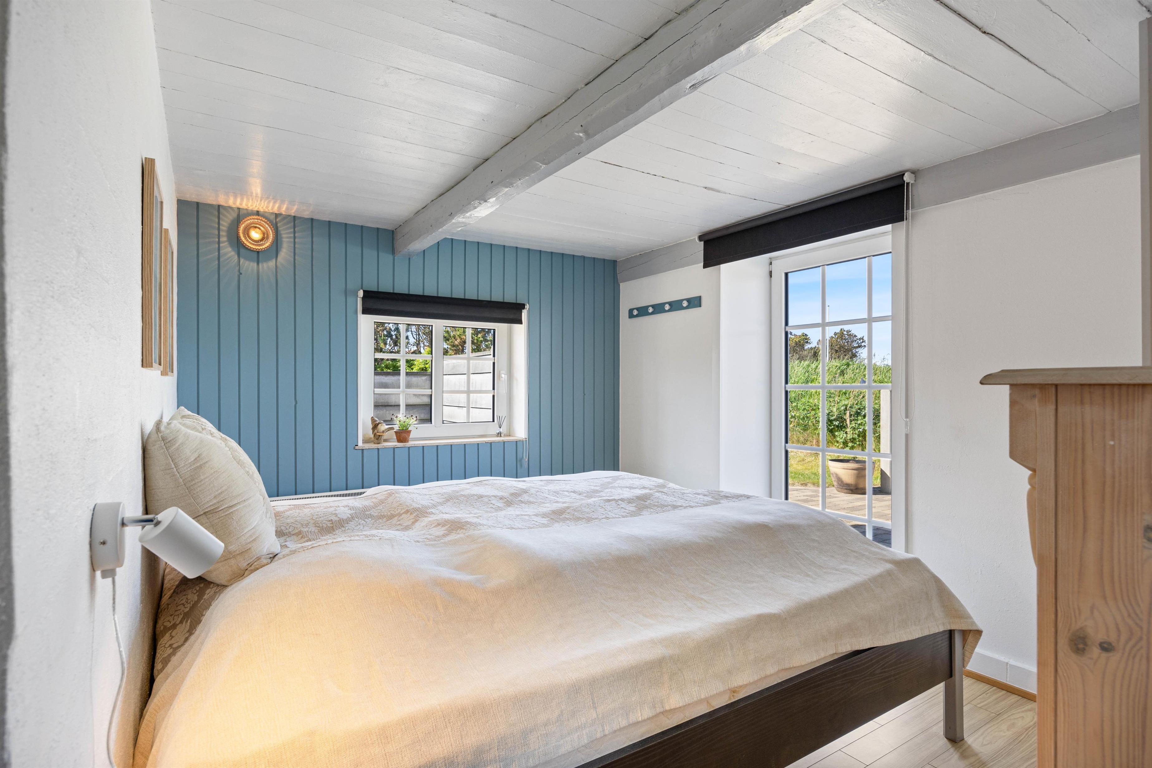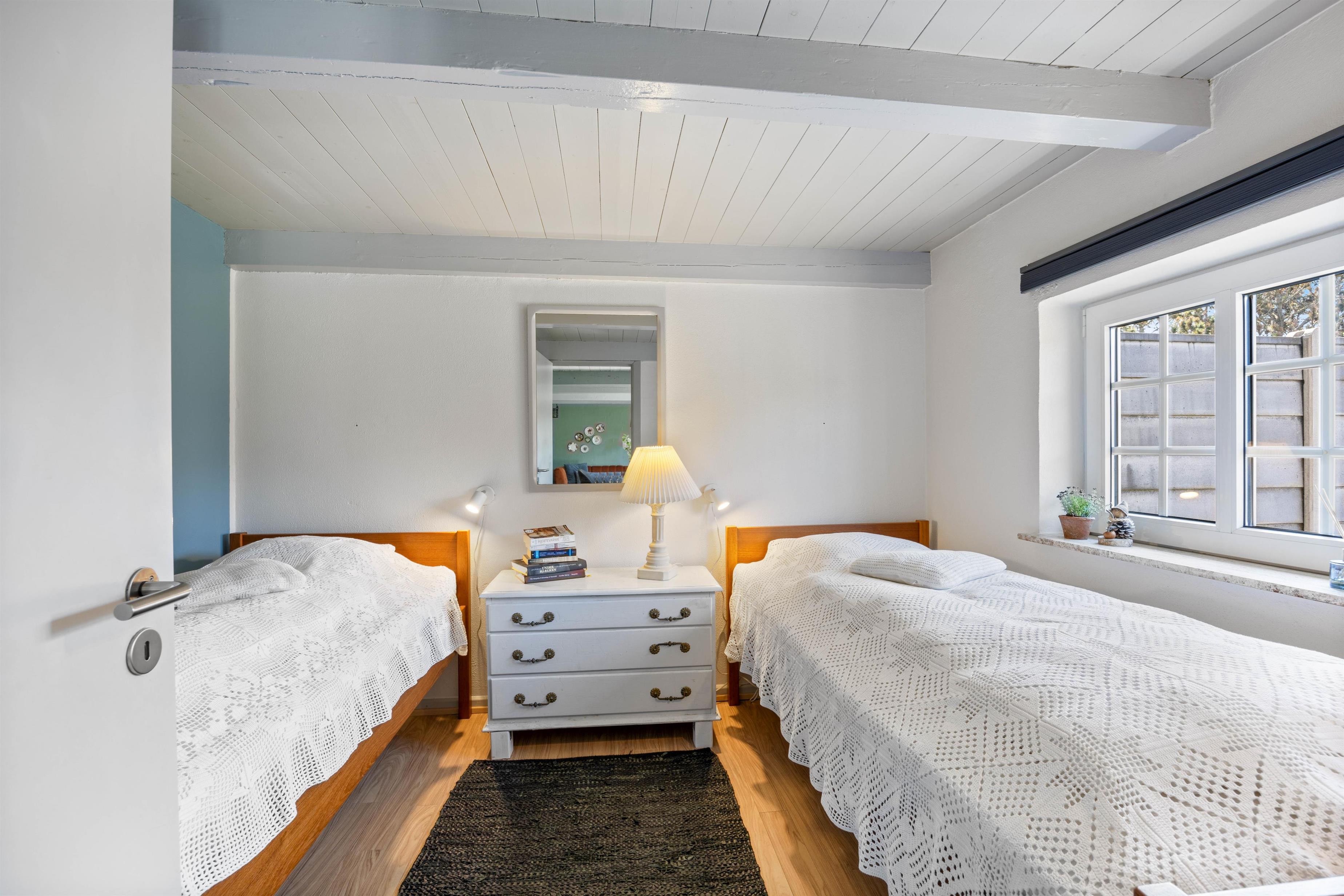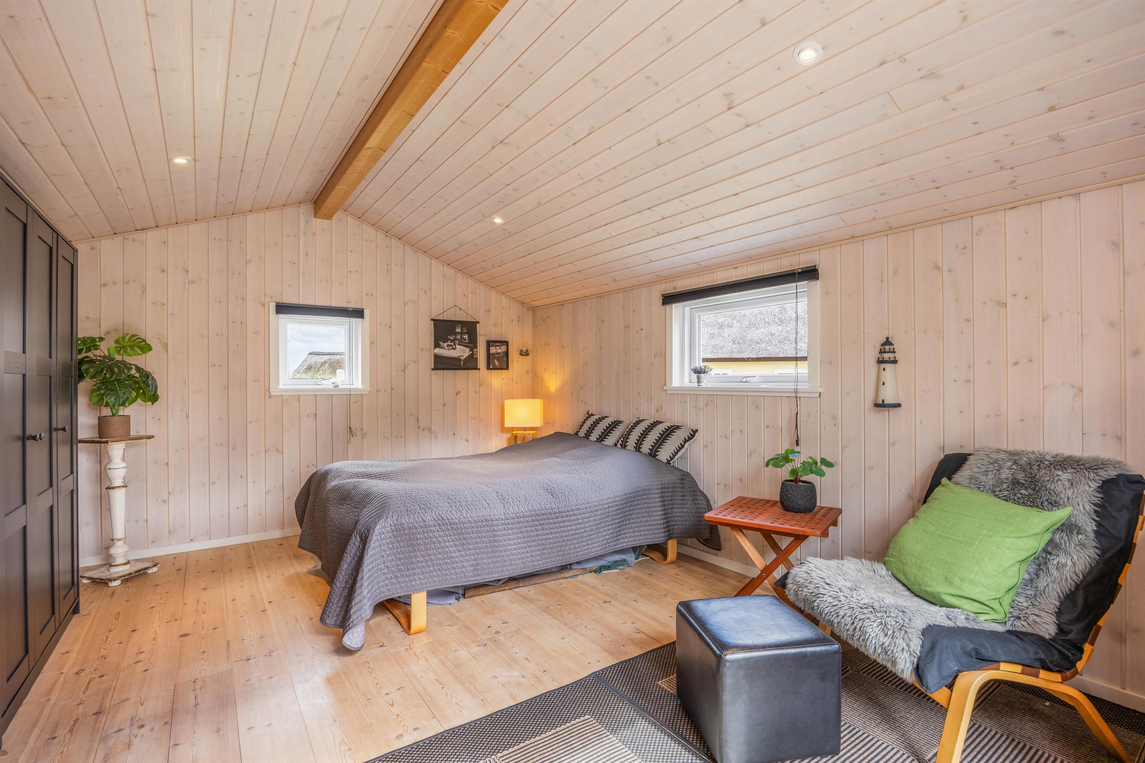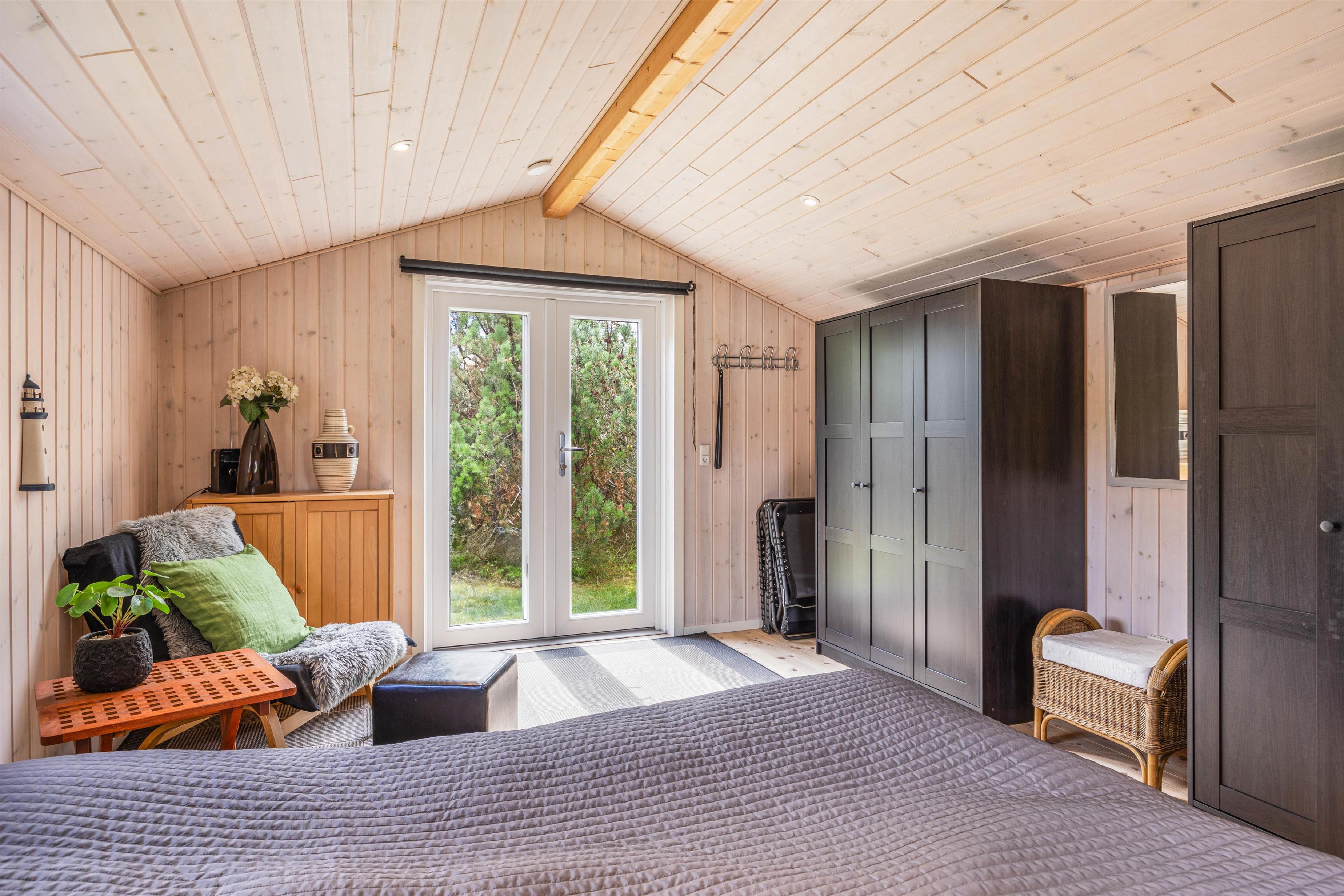 Når aftenen nærmer sig, og det er tid til at sove, er der i alt 5 sovepladser, som er fordelt på 2 soveværelser i sommerhuset og et soveværelse i annekset. Heraf med 2 dobbeltsenge og 2 enkeltsenge. I det tilhørende anneks er der også mulighed for, at I kan nyde stilheden. Derudover er der et badeværelse med gulvvarme, som sørger for, at I ikke fryser fødderne om morgenen.
