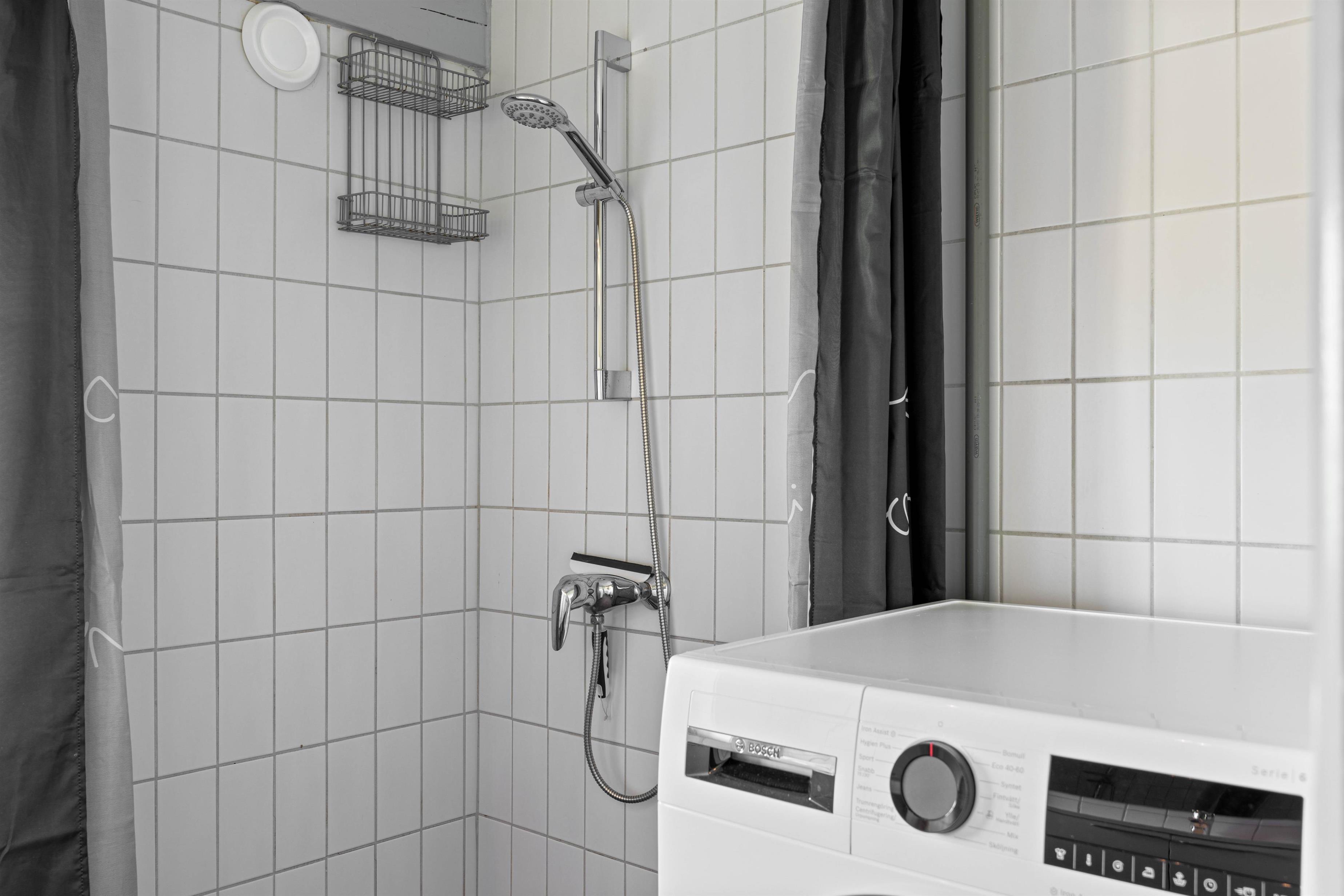 På badeværelset er der desuden en vaskemaskine, så I kan få vasket tøj og håndklæder i løbet af ferien.