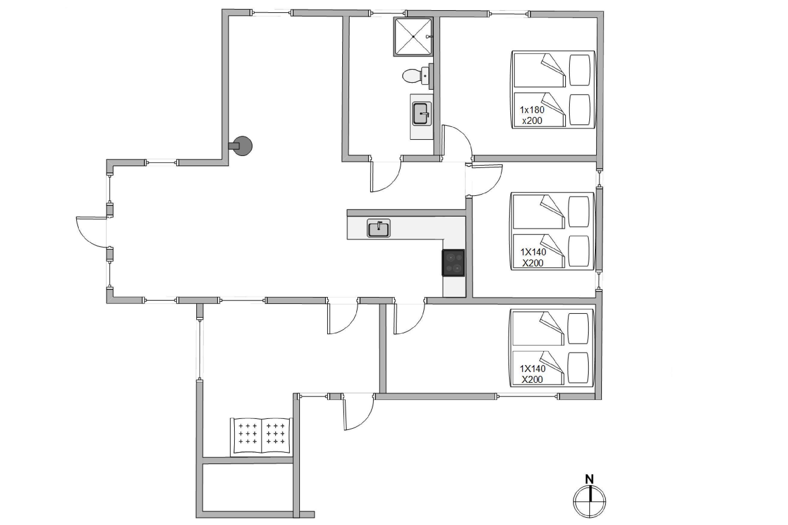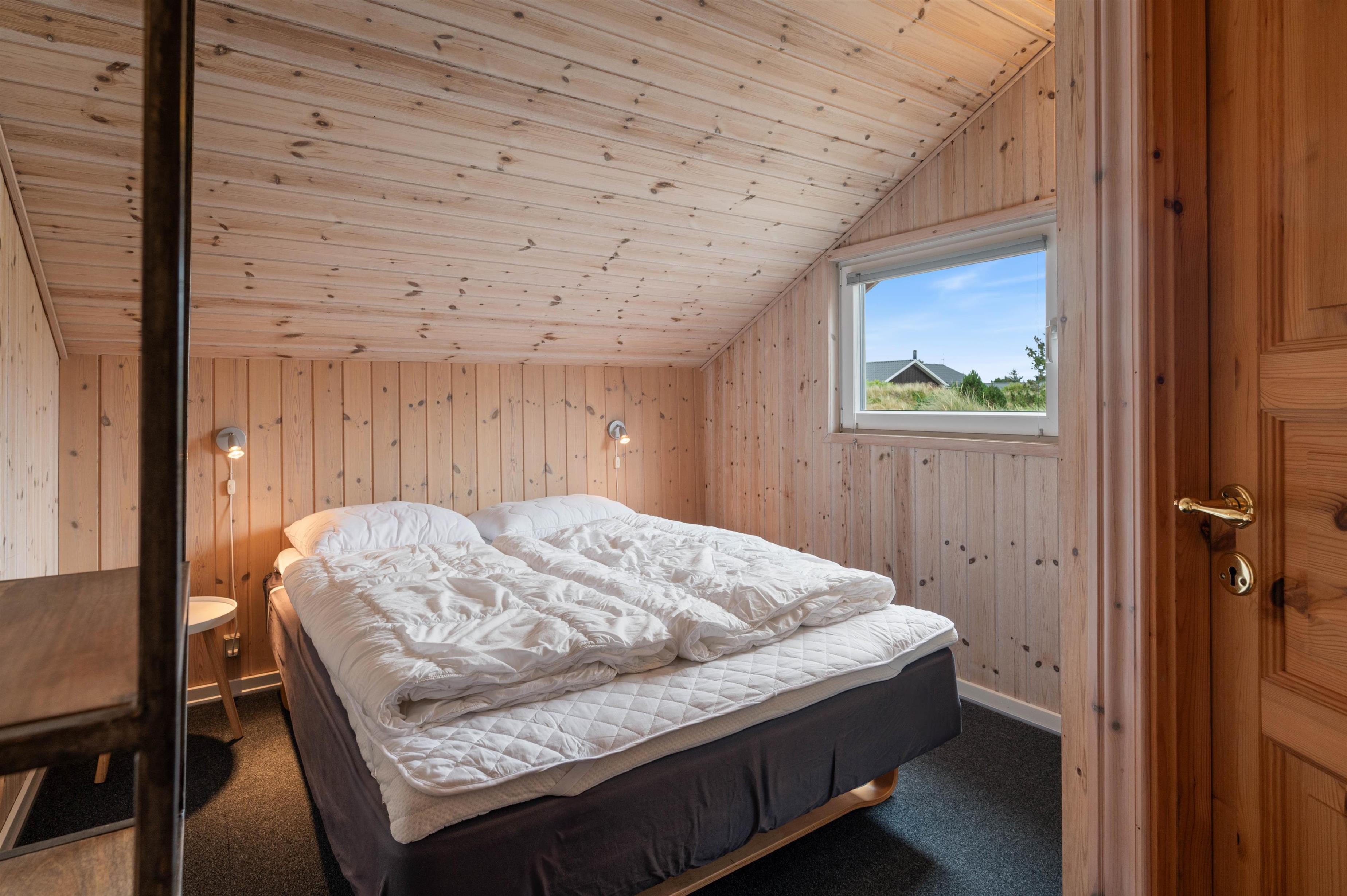 Et godt sommerhus beliggende på Fyrmarken i Nr. Lyngvig. Der er 3 soveværelser i huset, alle har gulvtæppe og er med dobbeltseng. Badeværelset har en bruseniche. Køkkenet er fra 2013. Og her er der mikroovn, opvaskemaskine og en fryser på 48 L. til rådighed. I både køkken og i stuen er der et flot klinkegulv, også fra 2013. Stuen er charmerende indrettet med en flot brændeovn med glaslåge, et TV, DVD-afspiller, parabol, radio, gratis trådløst internet og en energibesparende varmepumpe. Til huset er der også en hyggelig udestue.