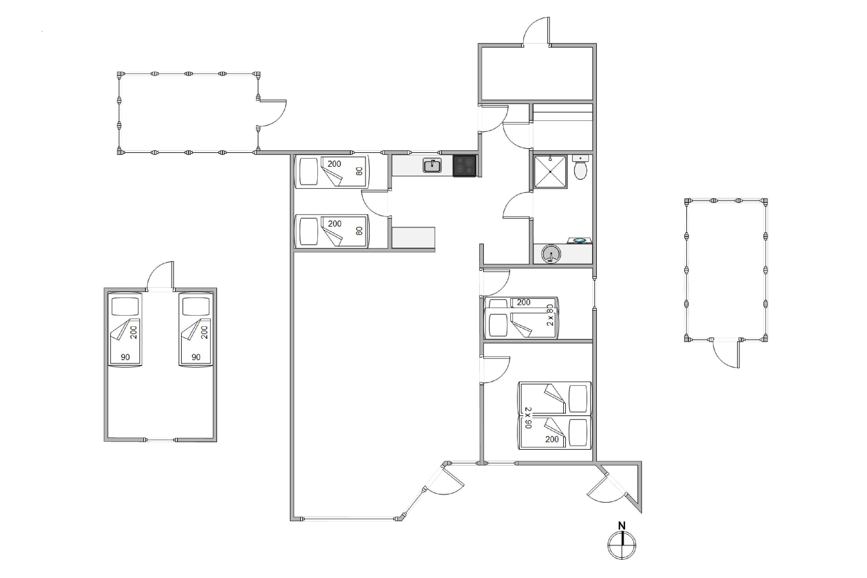 I sommerhuset er der 3 soveværelser: et med dobbeltseng, et med to enkeltsenge og et med en køjeseng – derudover er der 2 ekstra sovepladser i annekset, som især teenagere vil sætte pris på. Badeværelset er udstyret med både gulvvarme og vaskemaskine – og ikke mindst en dejlig sauna, hvor I kan slappe af efter en lang dag ved stranden.