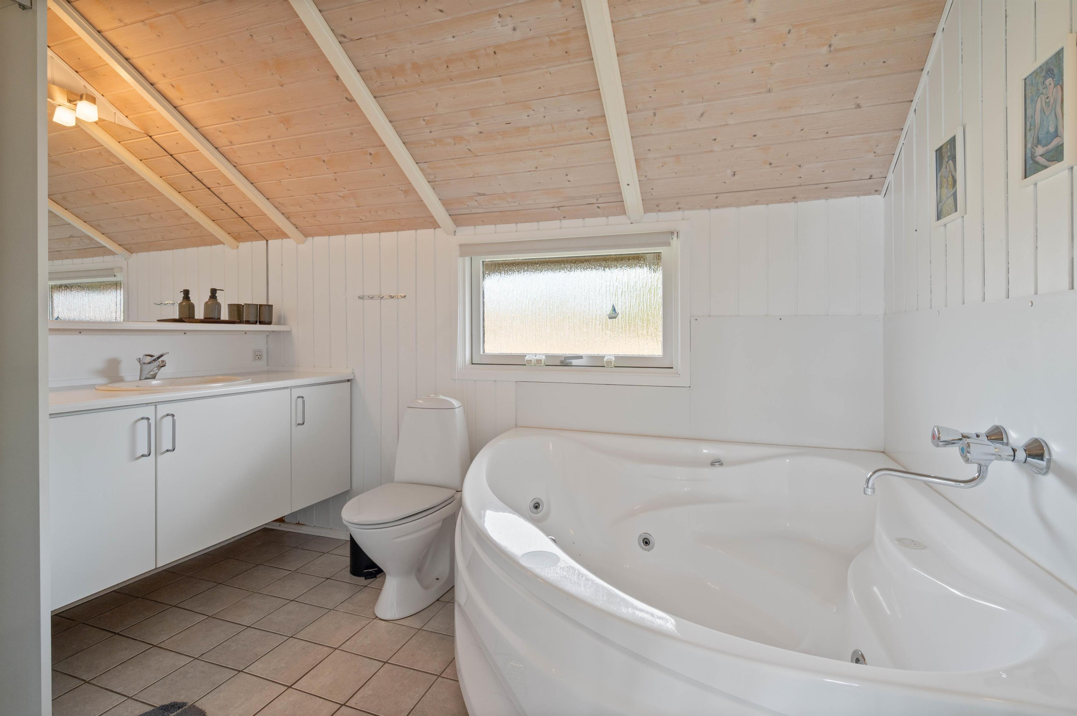 Et hyggeligt og charmerende feriehus med en skøn afskærmet terrasse. Det er smagfuldt og velindrettet, og der er sauna, spa, internet og opvaskemaskine. Her kan en familie have en skøn ferie, både i huset og i området omkring huset. Nr. Lyngvig Fyr ligger tæt på, hvor der også er et godt stisystem.