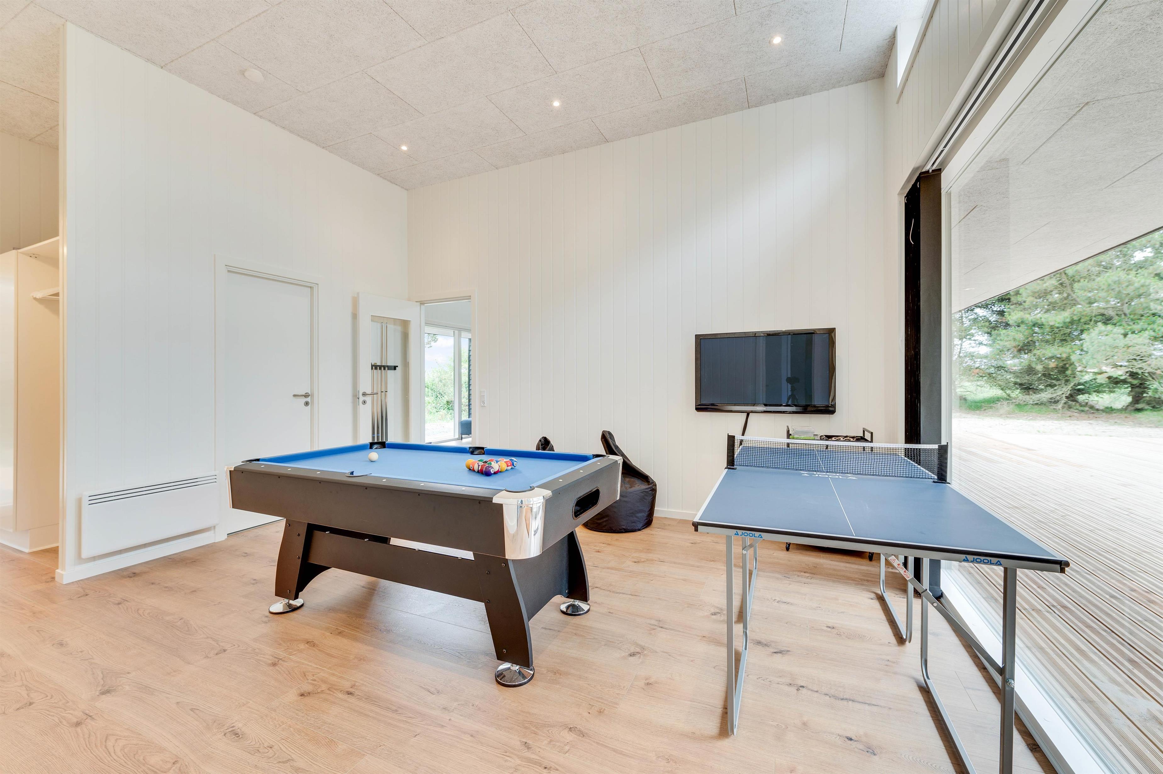 Den moderne indretning efterlader ikke meget at ønske; ud over, at der selvfølgelig er sørget for alle praktiske nødvendigheder, er der også tænkt på underholdningsaspektet. Derfor får I her et aktivitetsrum med både billard og bordtennis, hvor de konkurrenceglade og aktive feriegæster rigtigt kan slå sig løs og brillere.