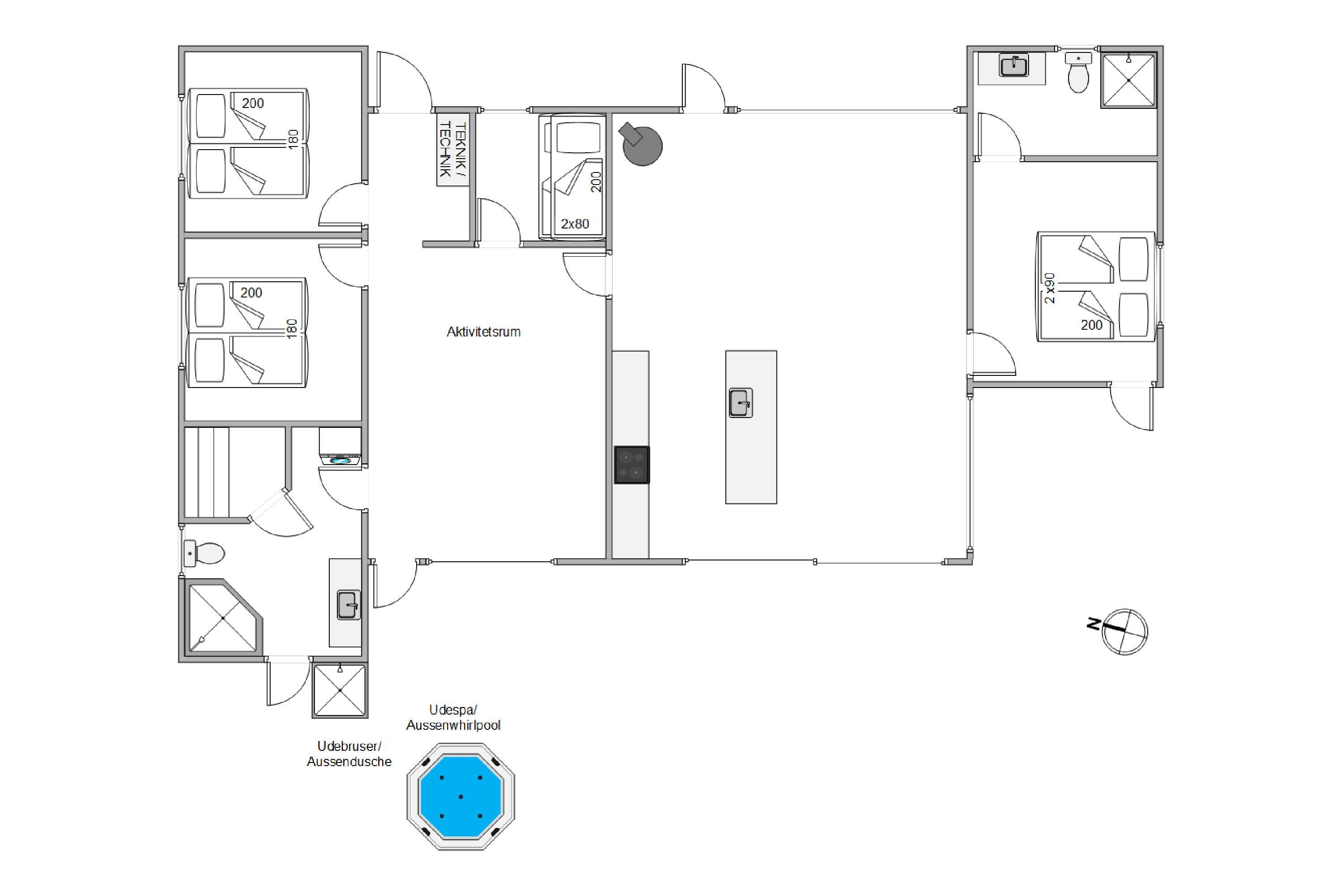 Drømmer I om en ferie ved Vesterhavet med underholdning for hele familien? Så er dette fine aktivitetshus i Nr. Lyngvig et godt bud på jeres næste ferieadresse! Her får I et topmoderne feriehus med plads til 8 personer, der blandt andet byder på aktivitetsrum med billard og bordtennis, sauna og en lækker terrasse med udendørs spabad og udebruser. Op til 2 hunde er desuden velkomne på feriematriklen med beliggenhed på Sivbjerg 14.