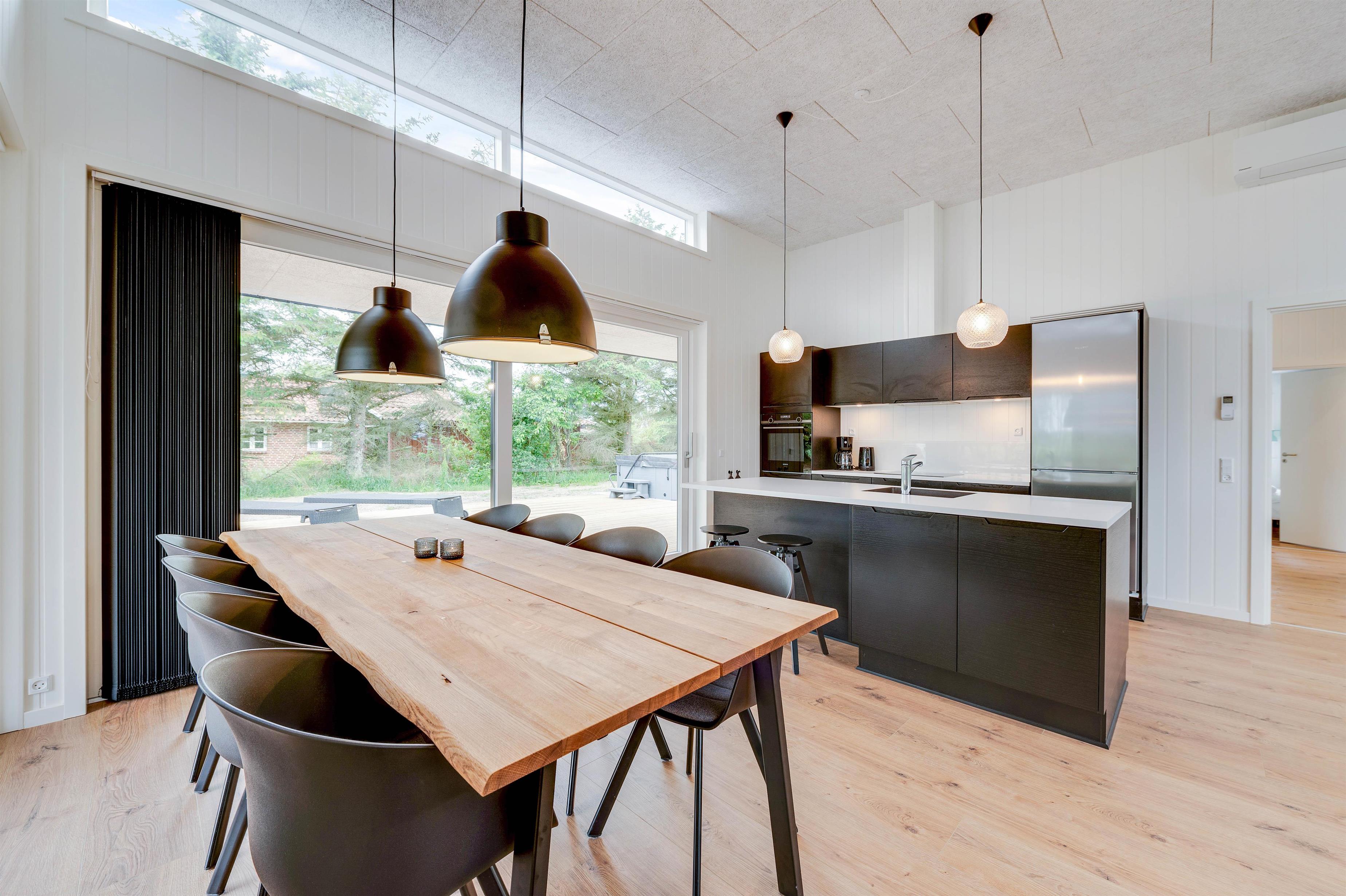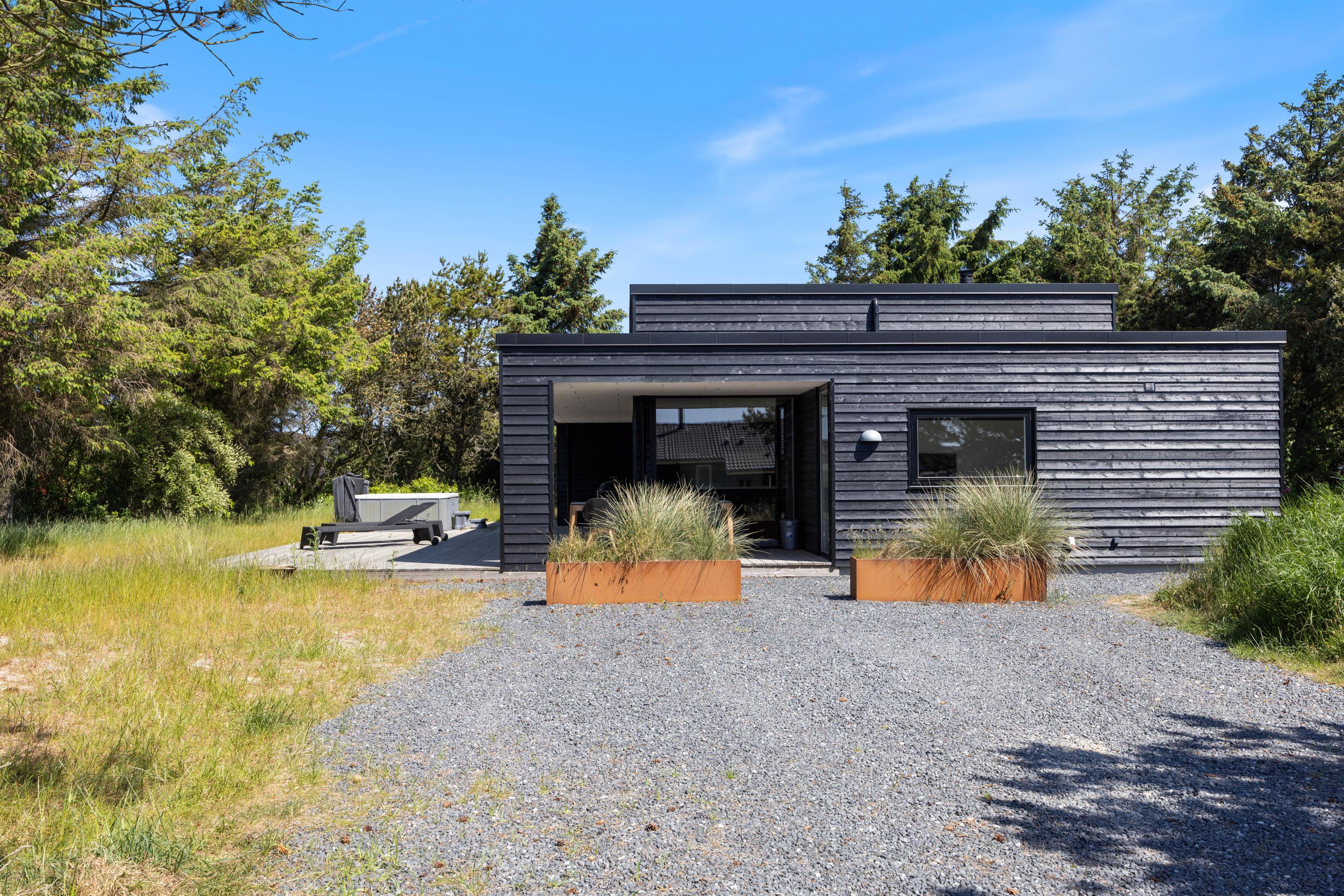 Afslapning er også et nøgleord i indretningen. Feriehuset byder på flere lækre wellnessoplevelser og muligheder for ægte selvforkælelse. På den store træterrasse står udespaen klar til at tage hånd om jer, og et afbræk i den varme jacuzzi er en sikker vej til fornyet energi.