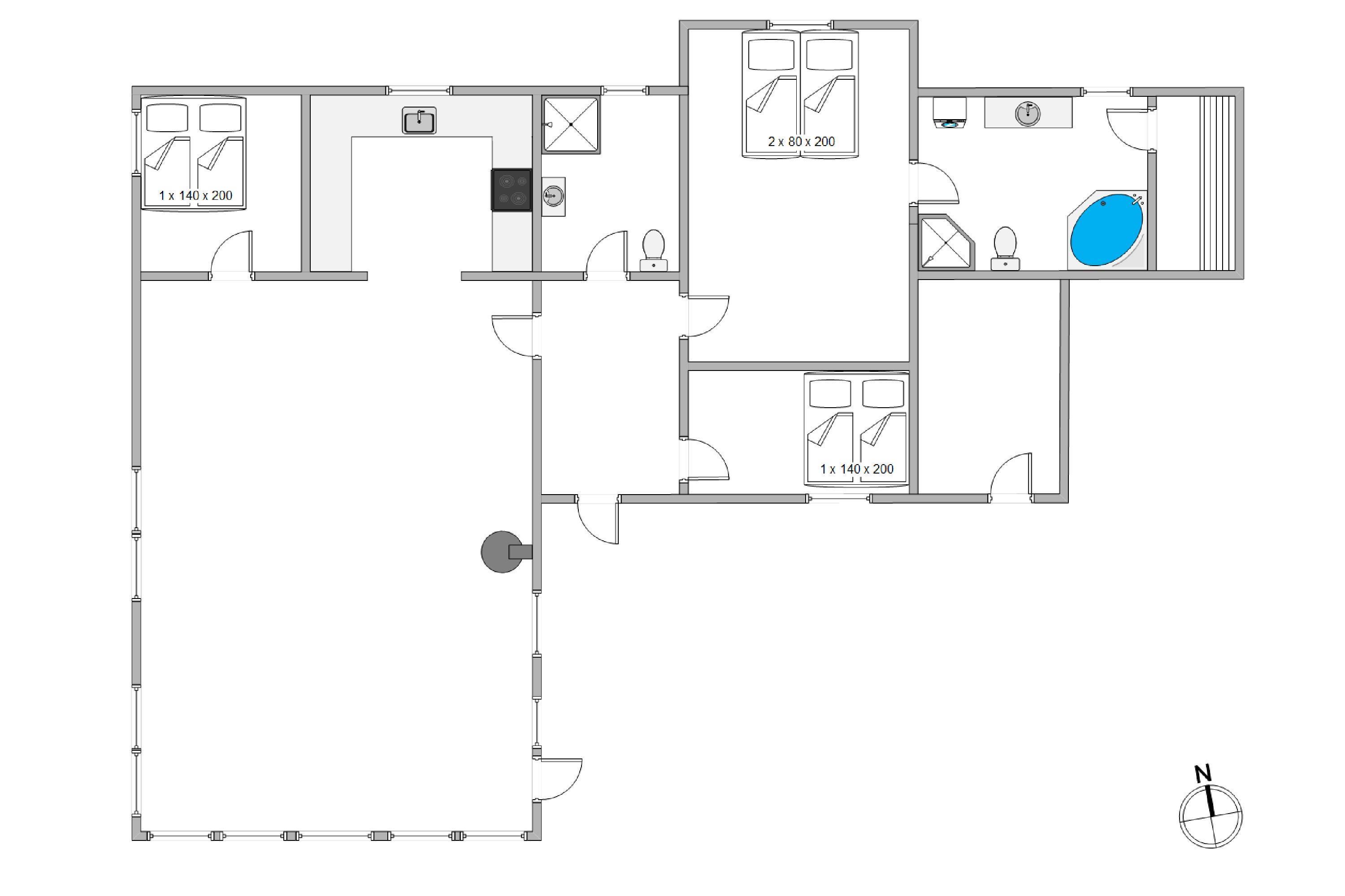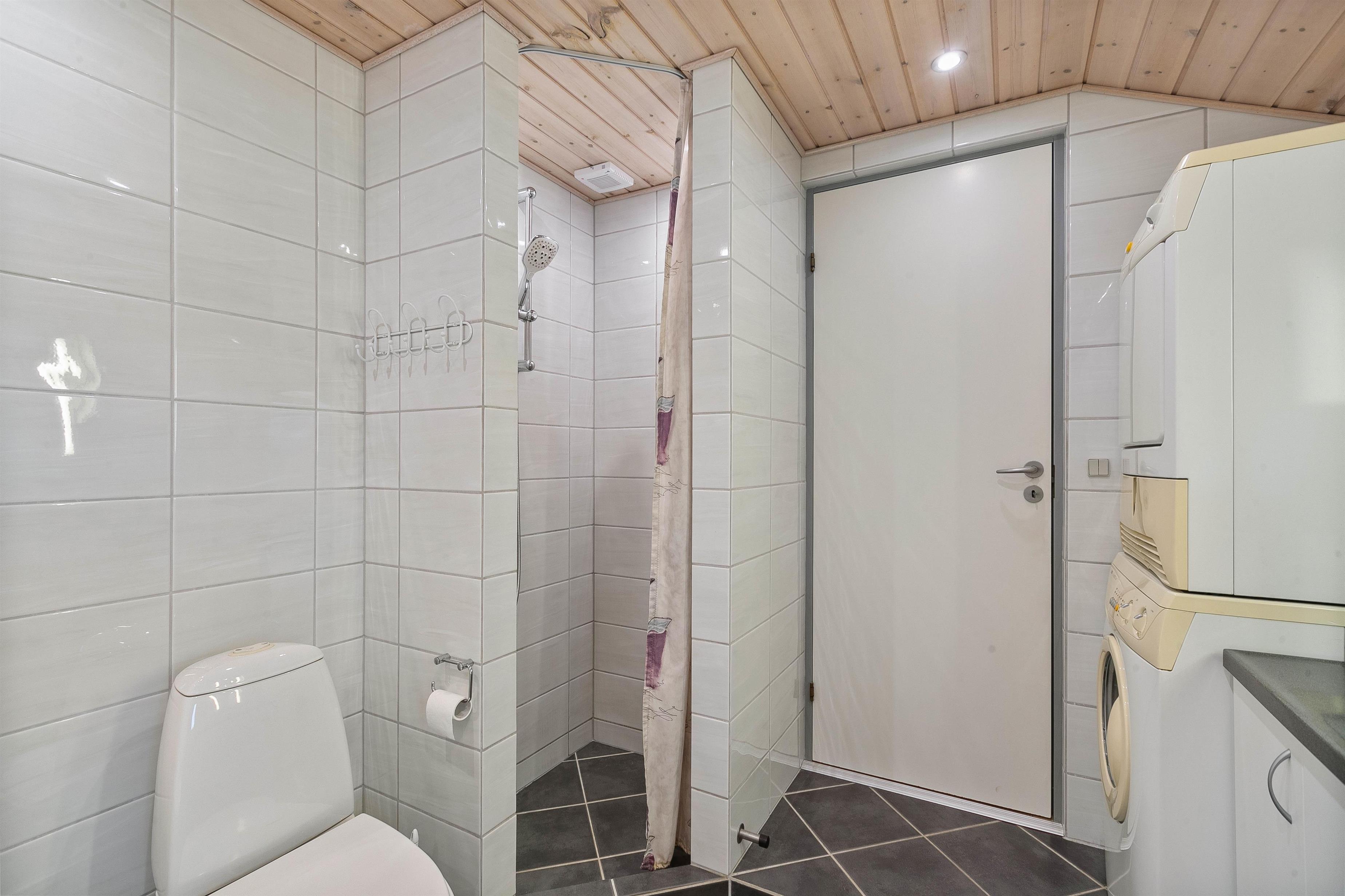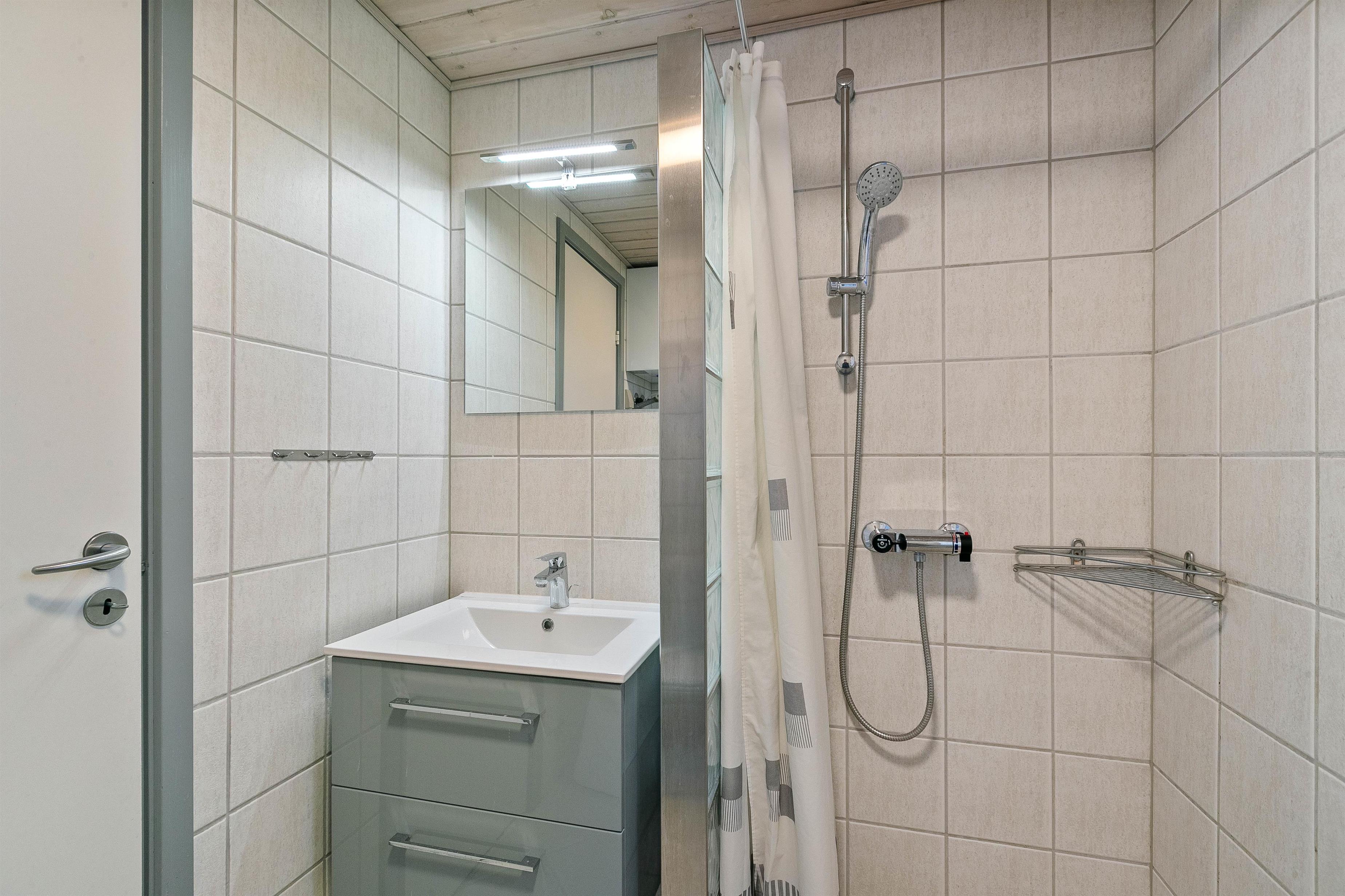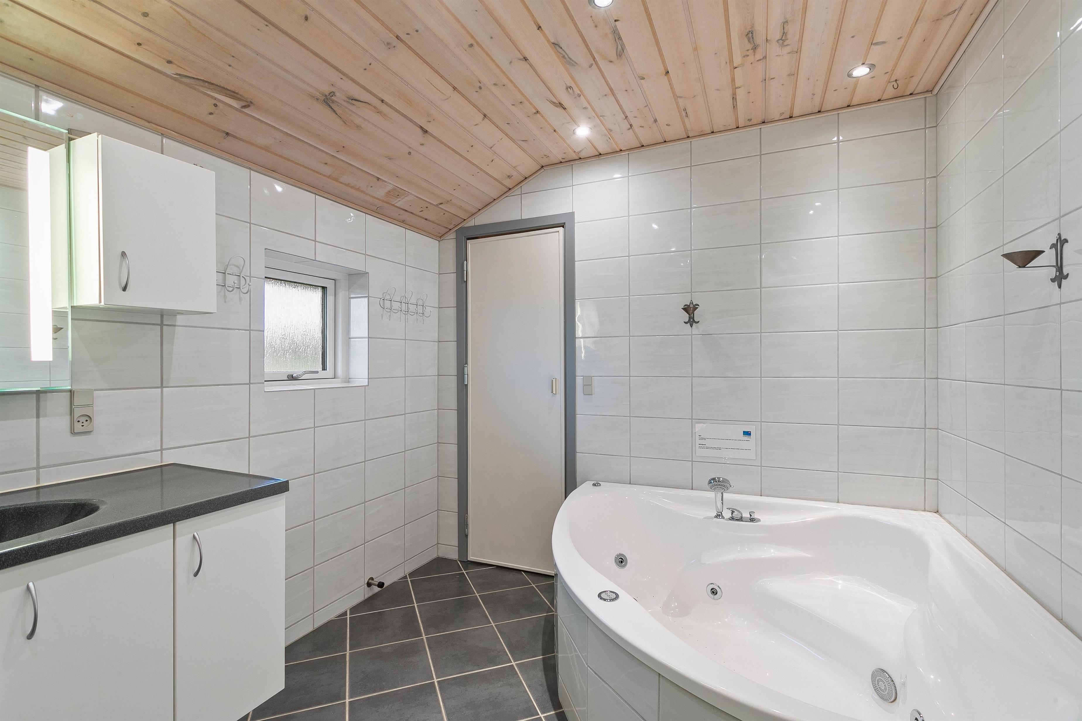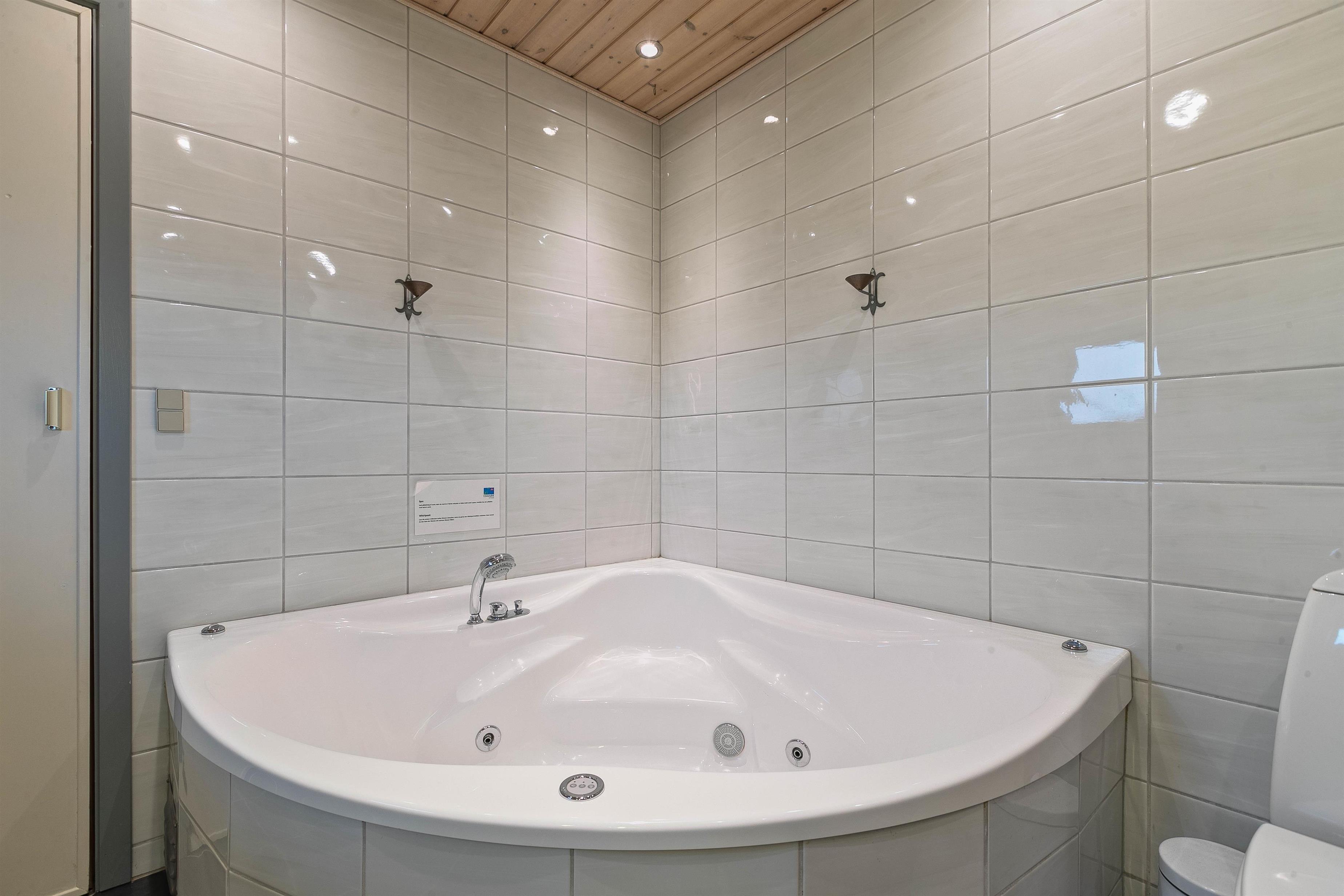 Huset indeholder udover 3 soverum også 2 rigtig gode badeværelser, det ene et stort badeværelse med både spabad og sauna og naturligvis med gulvvarme og der er bruser i begge badeværelser.