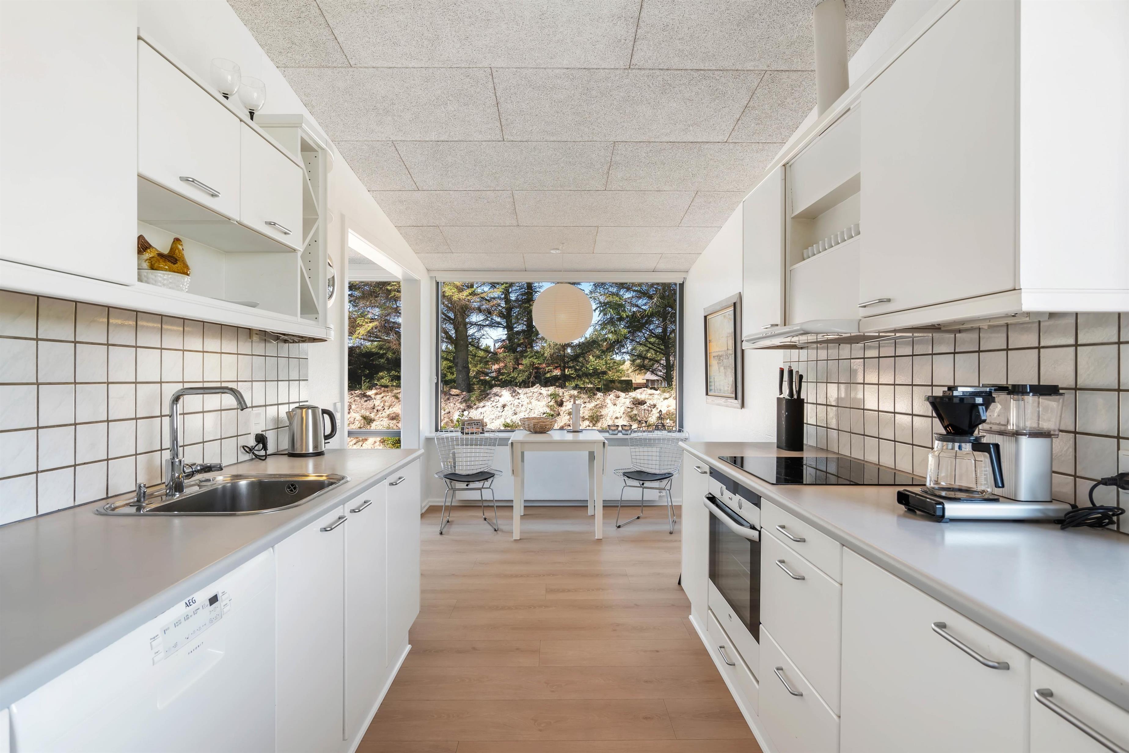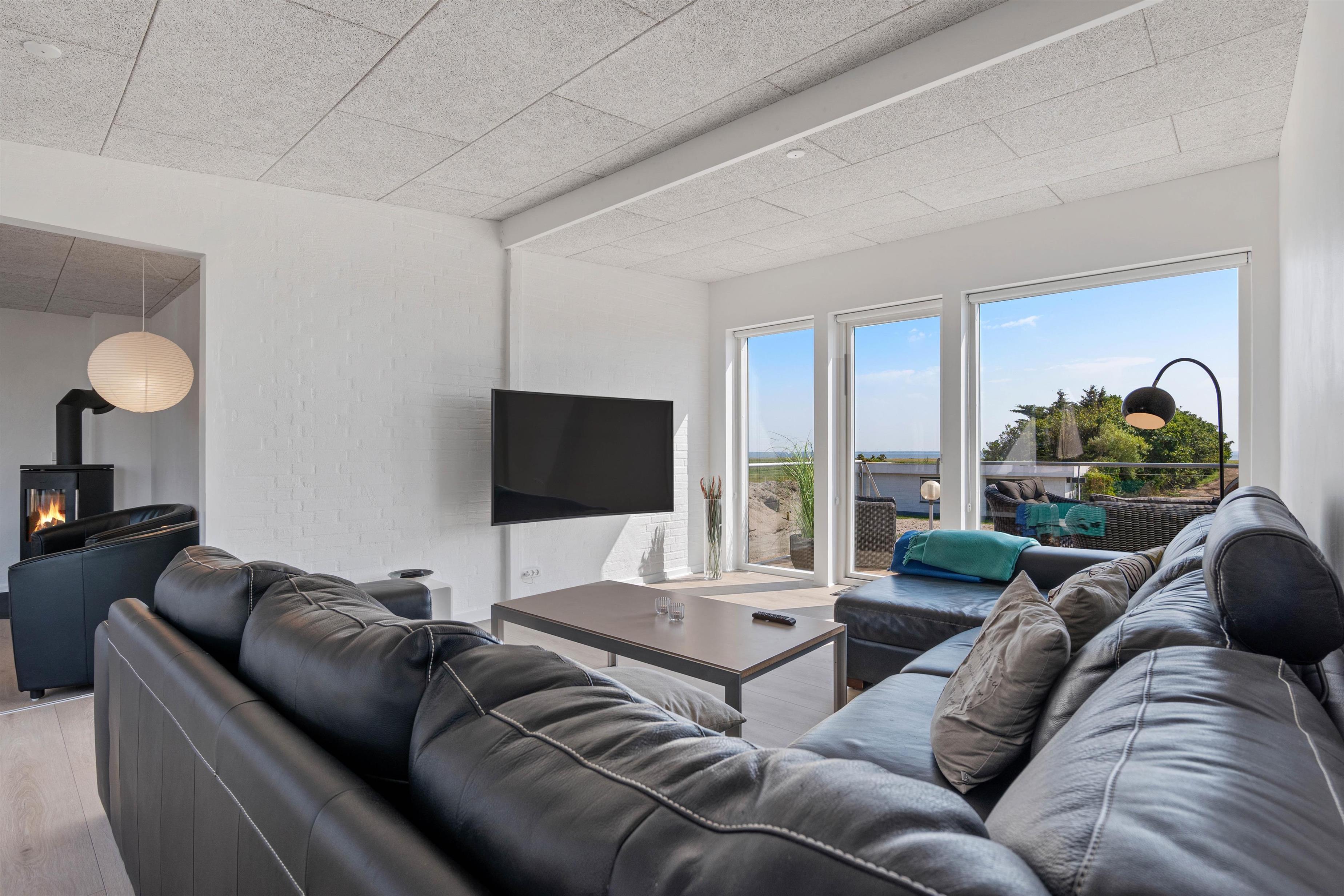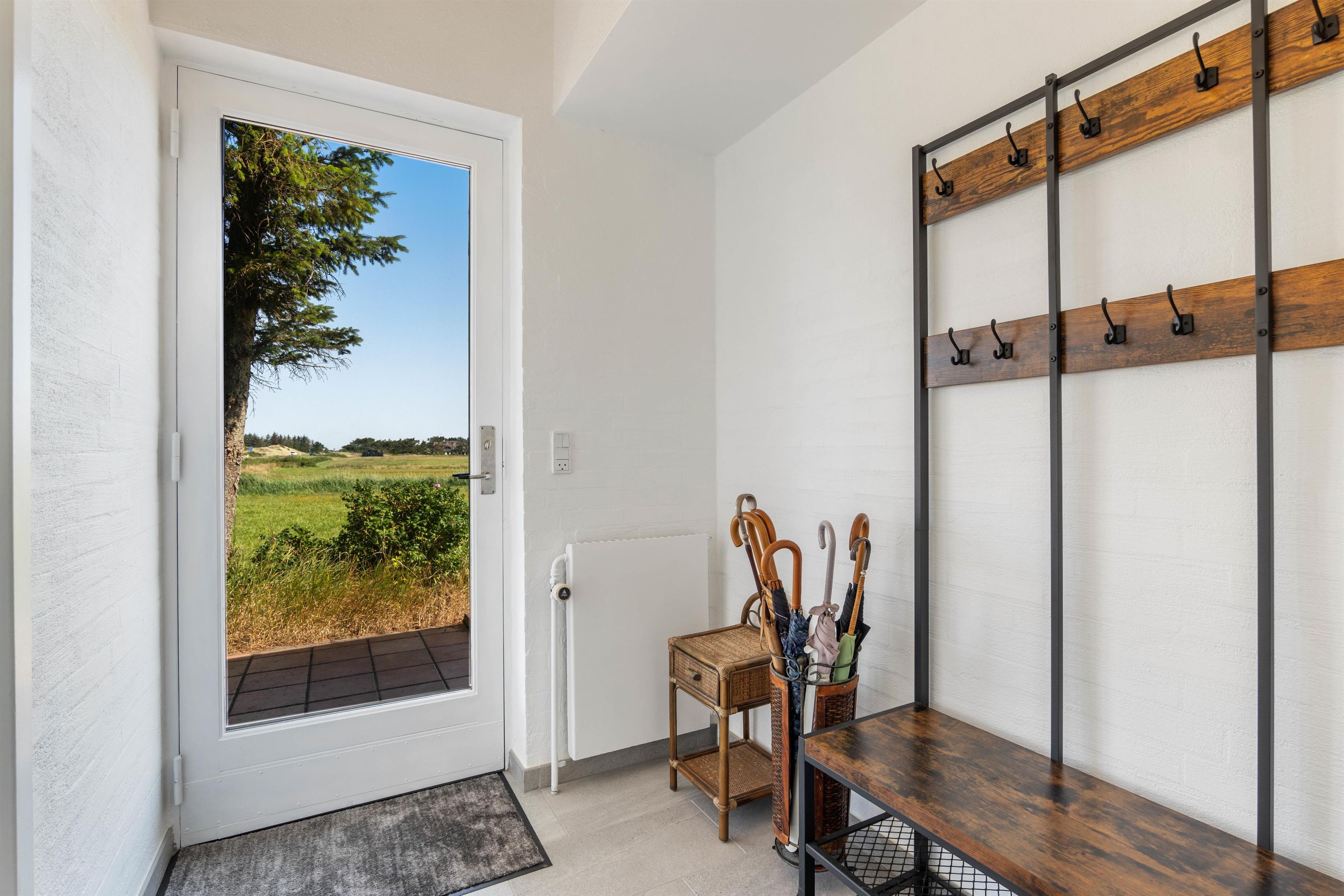 I har også flere terrasser på sommerhusets udeområde, hvor I kan slappe af i havemøbler og liggestole i løbet af ferien, og på de lune ferieaftener kan I tilberede aftensmaden på gas-grillen. Fra den øverste terrasse kan I endda nyde udsigten til Rindkøbing Fjord.