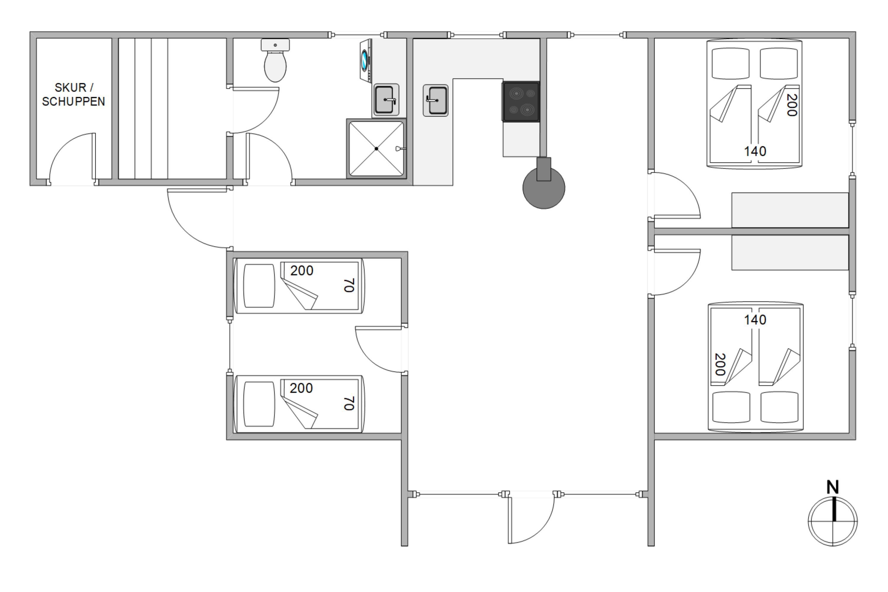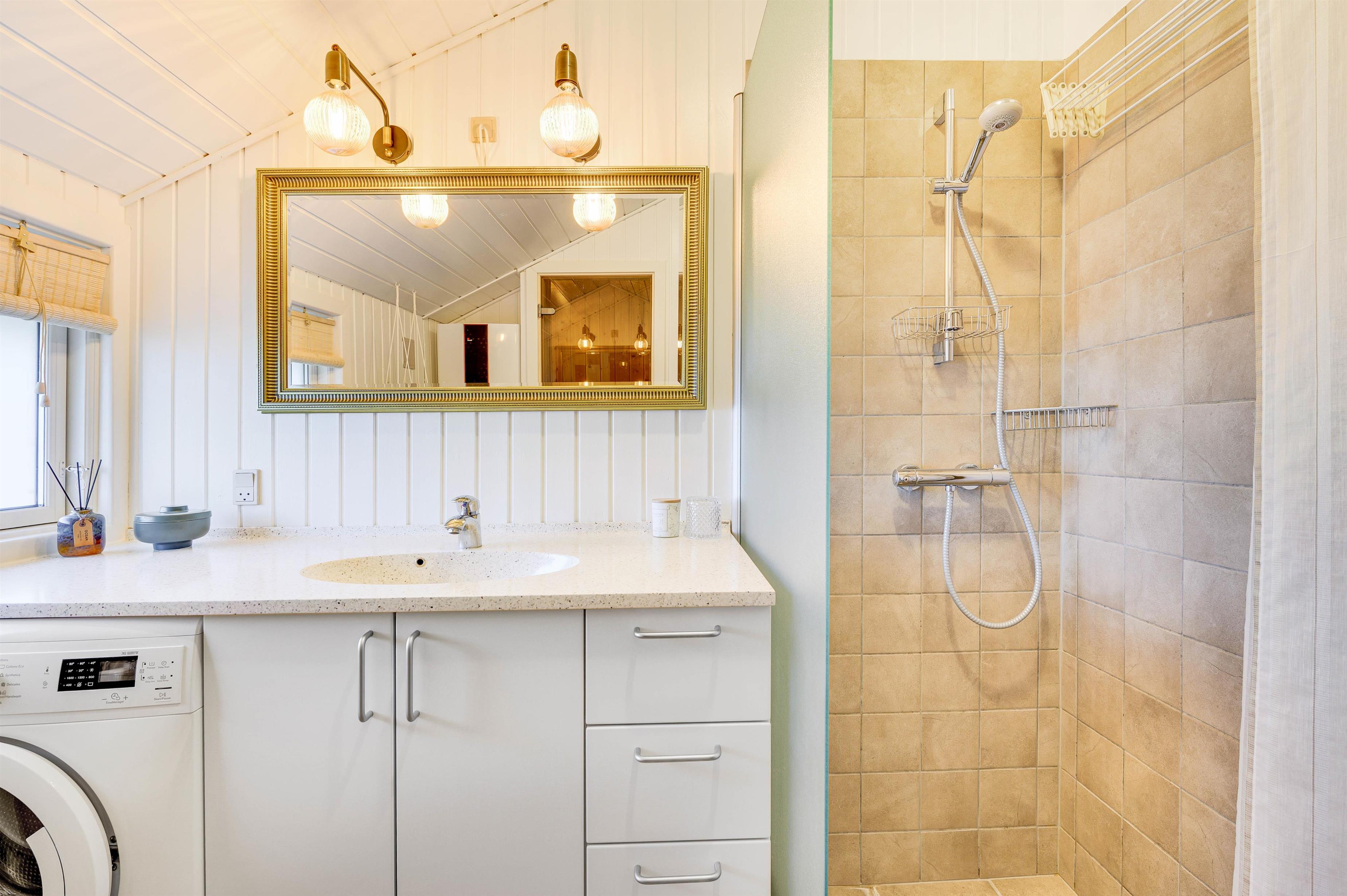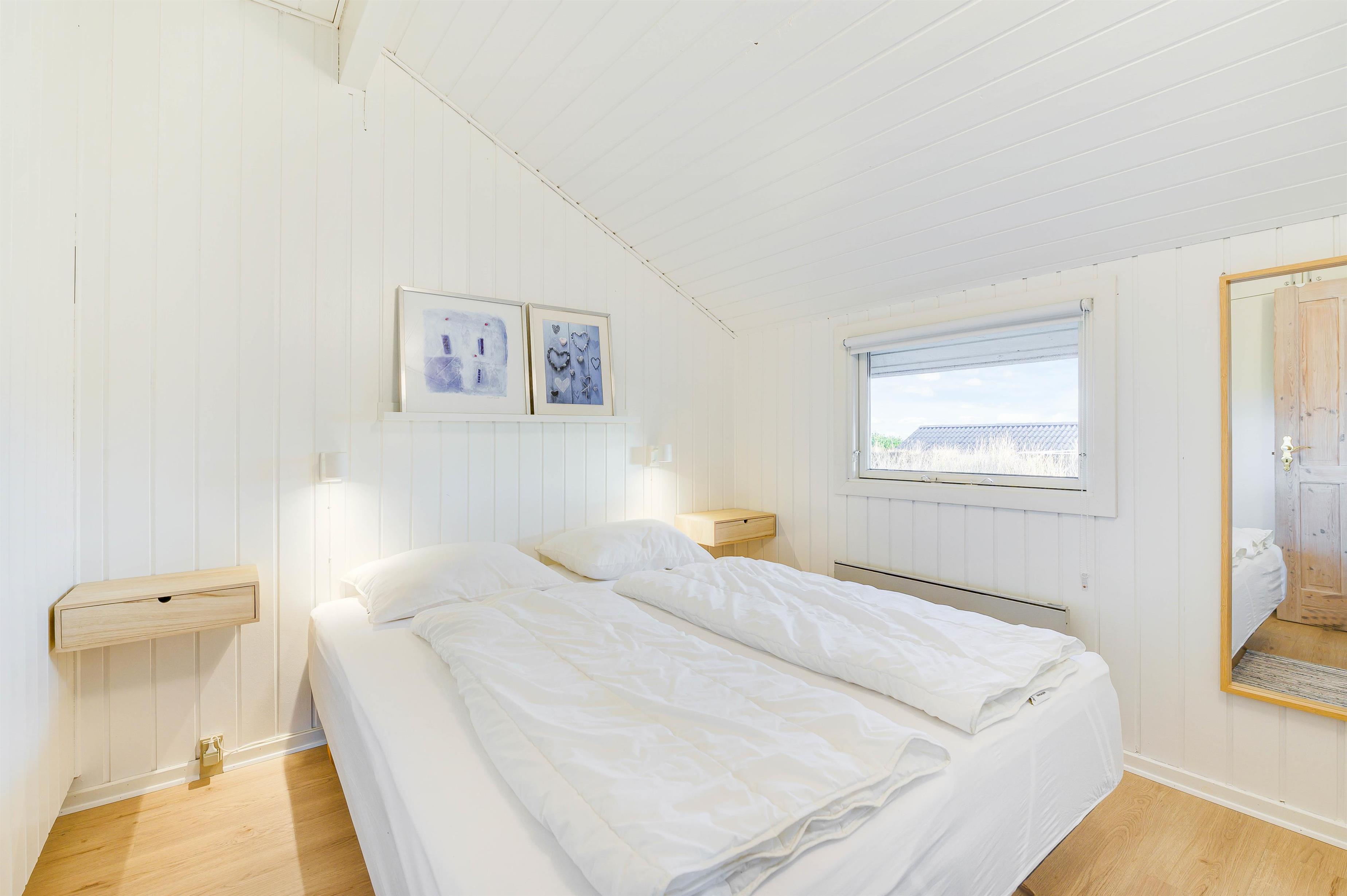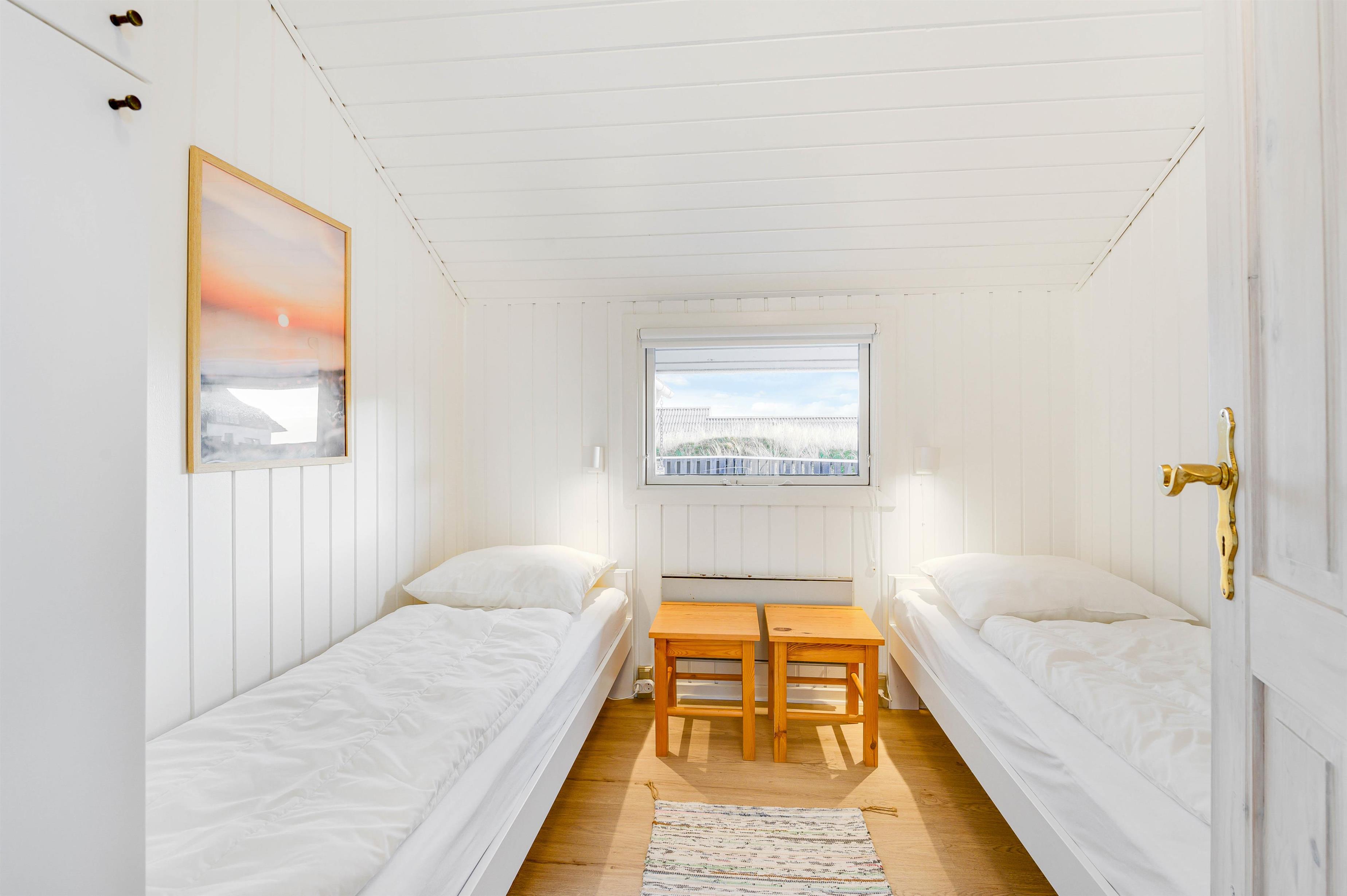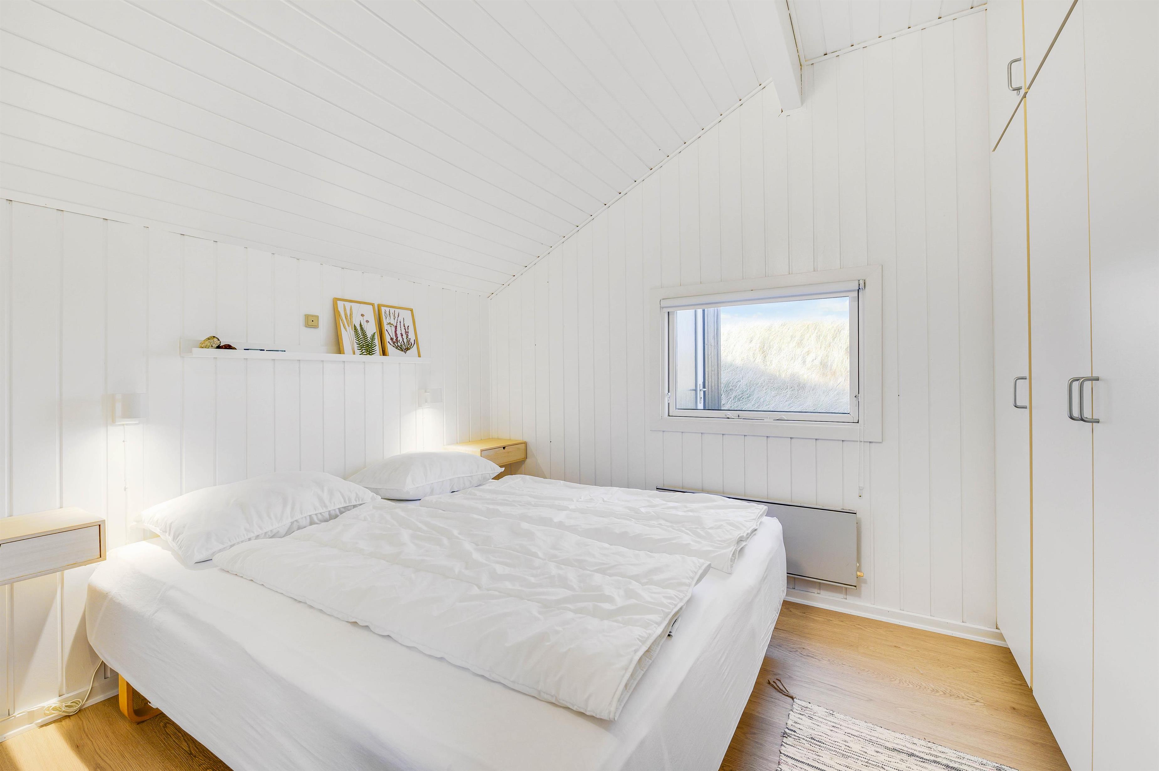 Eller hvad med en tur i feriehusets sauna? Her kan I rigtigt få ladet batterierne op eller få varmen igen efter en blæsende tur ved Vesterhavet. Sovepladserne i feriehuset fordeler sig på 3 soverum, hvoraf de 2 er indrettet med dobbeltsenge, og det tredje er indrettet med 2 enkeltmandssenge. I badeværelset er der desuden gulvvarme.