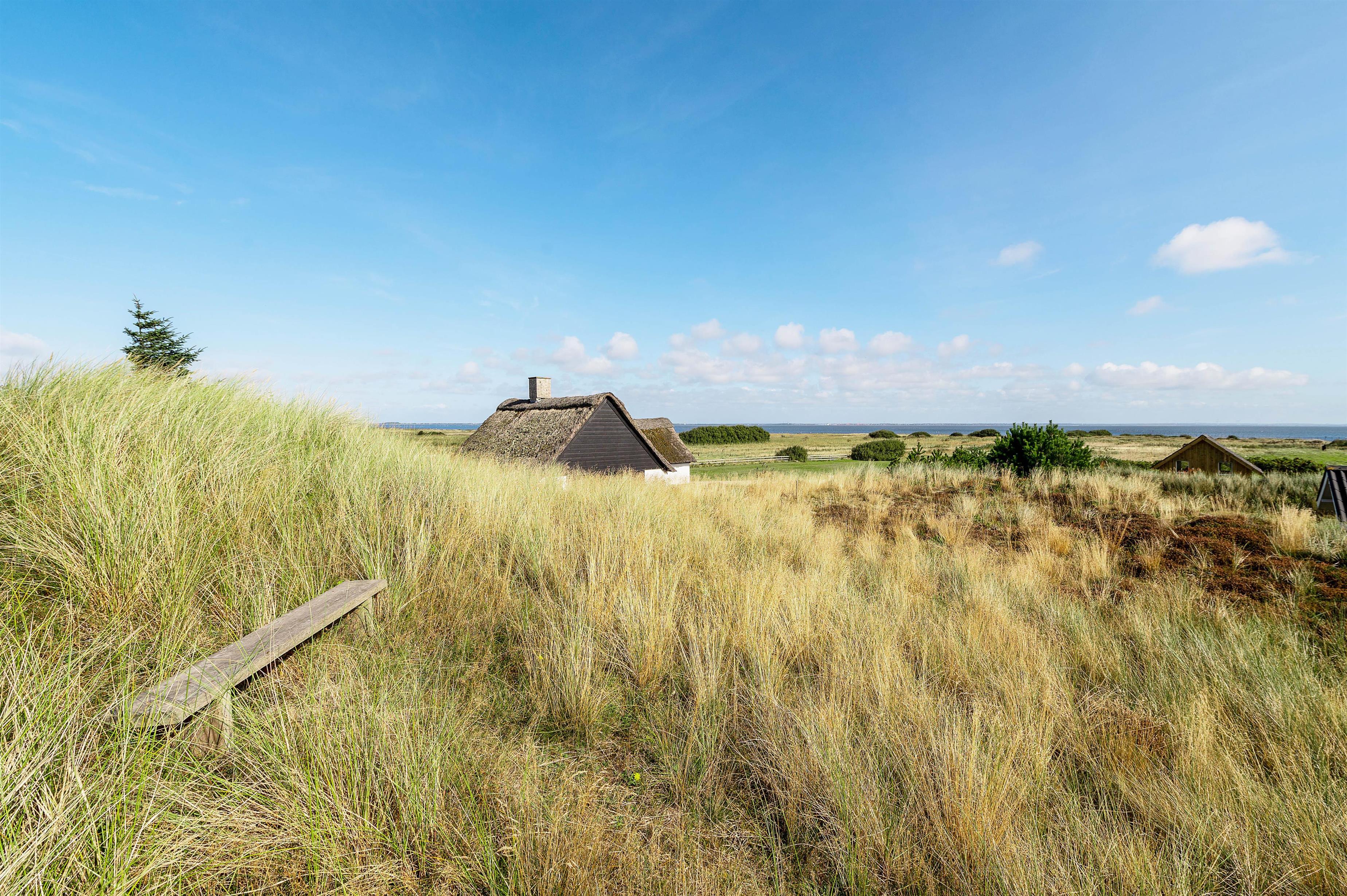 Få meter fra sommerhuset er en bænk, hvor I om aftenen kan vælge at placere jer og nyde den gode udsigt udover klitlandskabet. Og hvis I er heldige kan I se en smuk solnedgang.