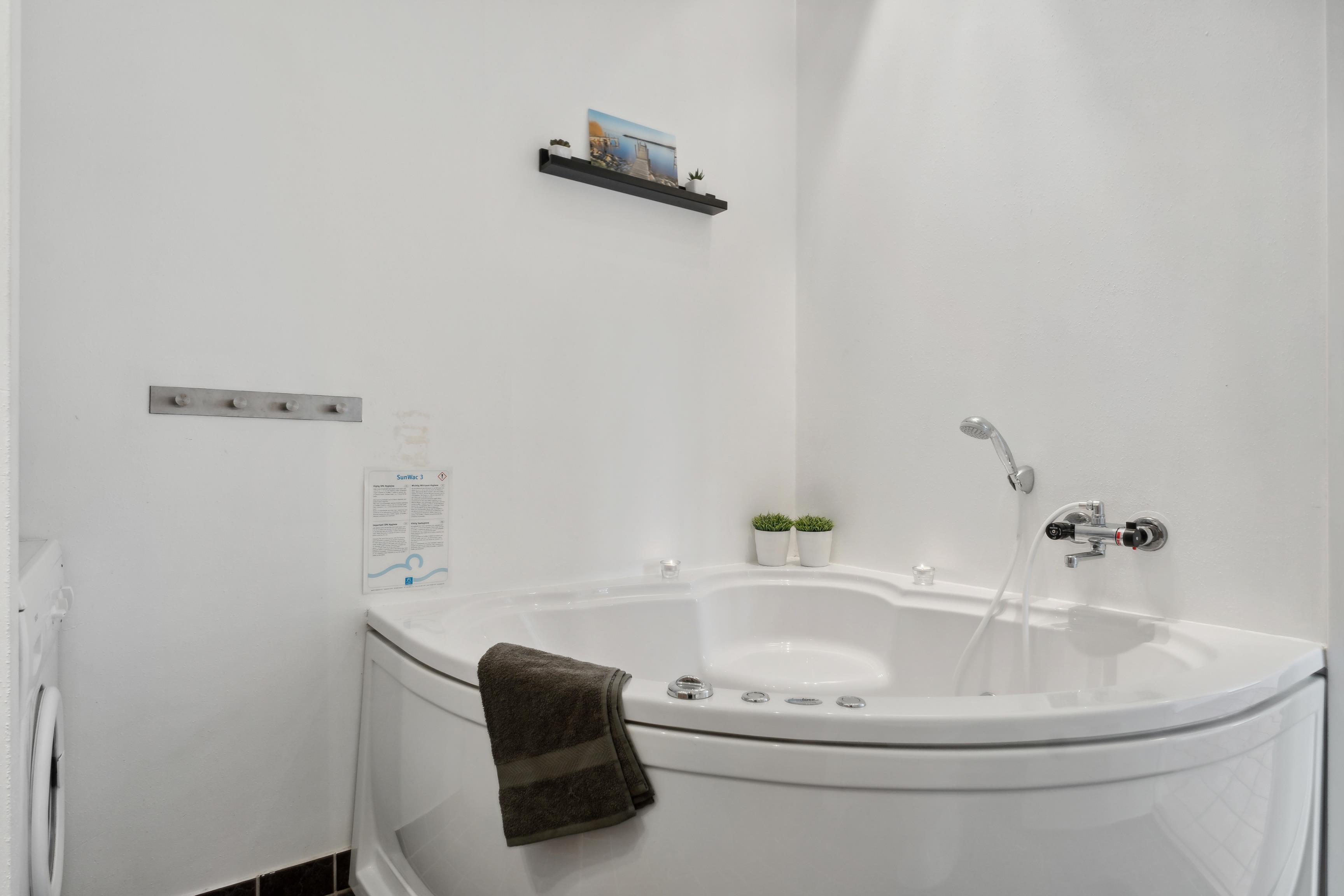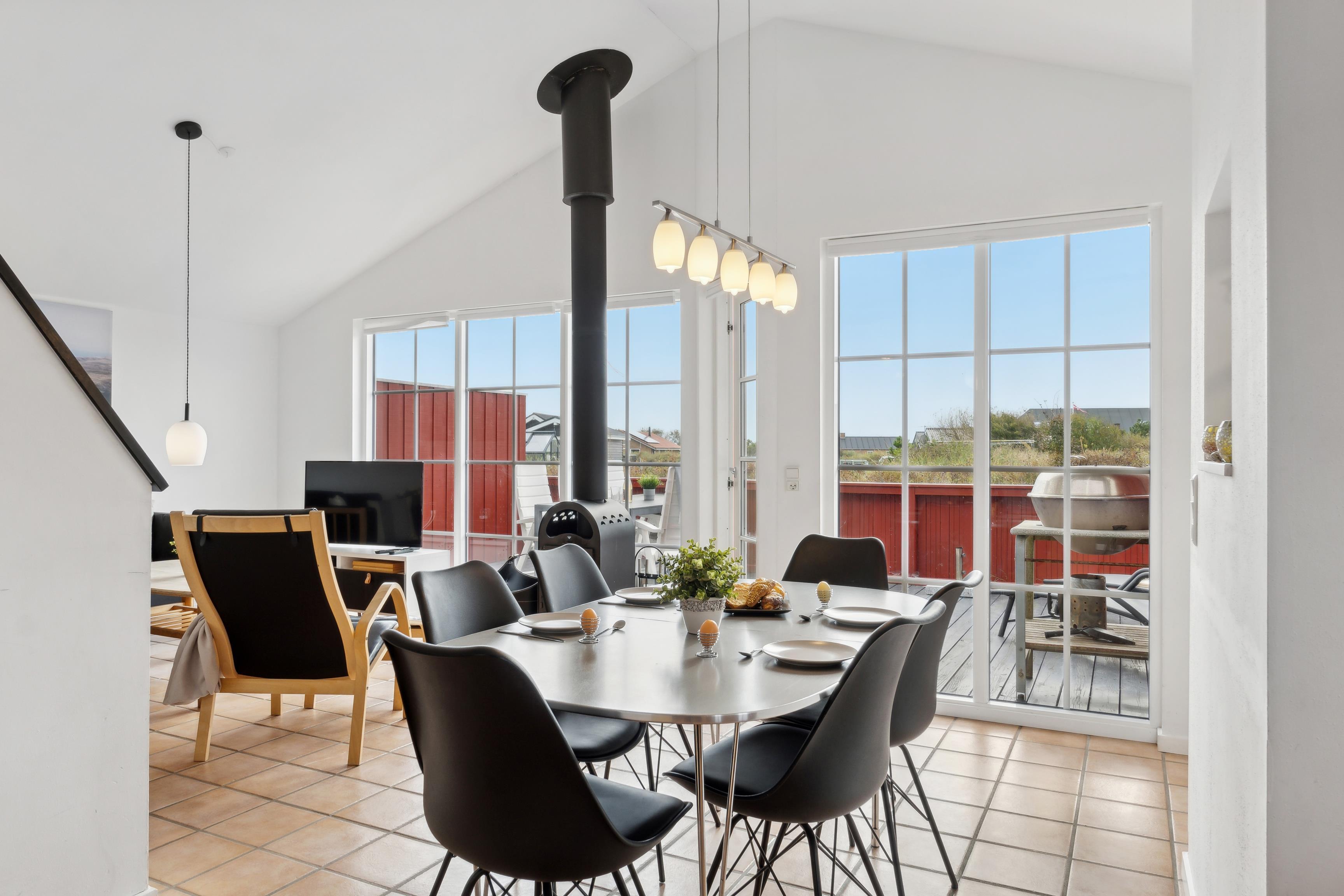 Huset har 3 soveværelser, hvoraf 2 har dobbeltseng og 1 har køjeseng, og derudover er der en hems, der tilbyder en ekstra soveplads. Den åbne stue/køkken-kombination skaber en hyggelig atmosfære – perfekt til hyggelige stunder med familien, venner eller bare jer to. Nyd varmen fra brændeovnen på kølige aftener og lyt til træets knitren, når flammerne blusser i den. Feriehuset er udstyret med tv, parabol og Chromecast, så I nemt kan streame jeres yndlingsfilm og -serier. Hold kontakten med hjemmet via det gratis wifi, så I kan dele oplevelser, holde jer opdateret eller surfe på internettet. Badeværelset er udstyret med bruser, gulvvarme og et indbydende spabad.