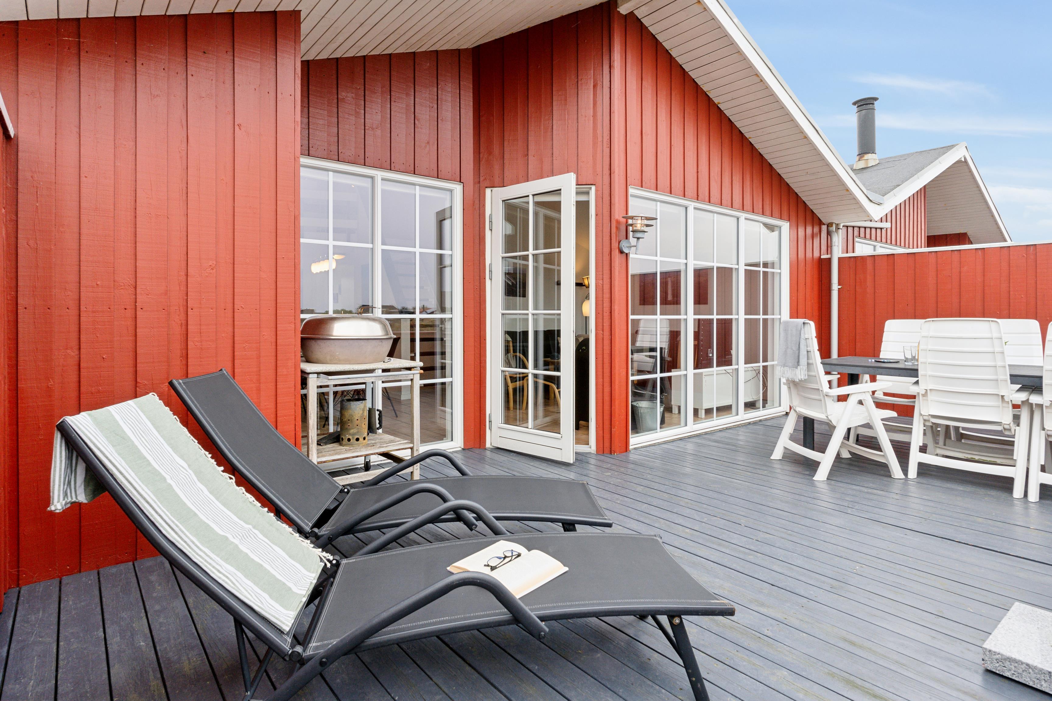 Slap af i solen på de tilgængelige liggestole eller grill sammen under åben himmel på den store terrasse. Til hyggelige sammenkomster står der et stort bord med komfortable stole på den store sydvendte terrasse. Lige ved siden af ligger en legeplads, hvor børnene kan lege og have det sjovt i sikkerhed.