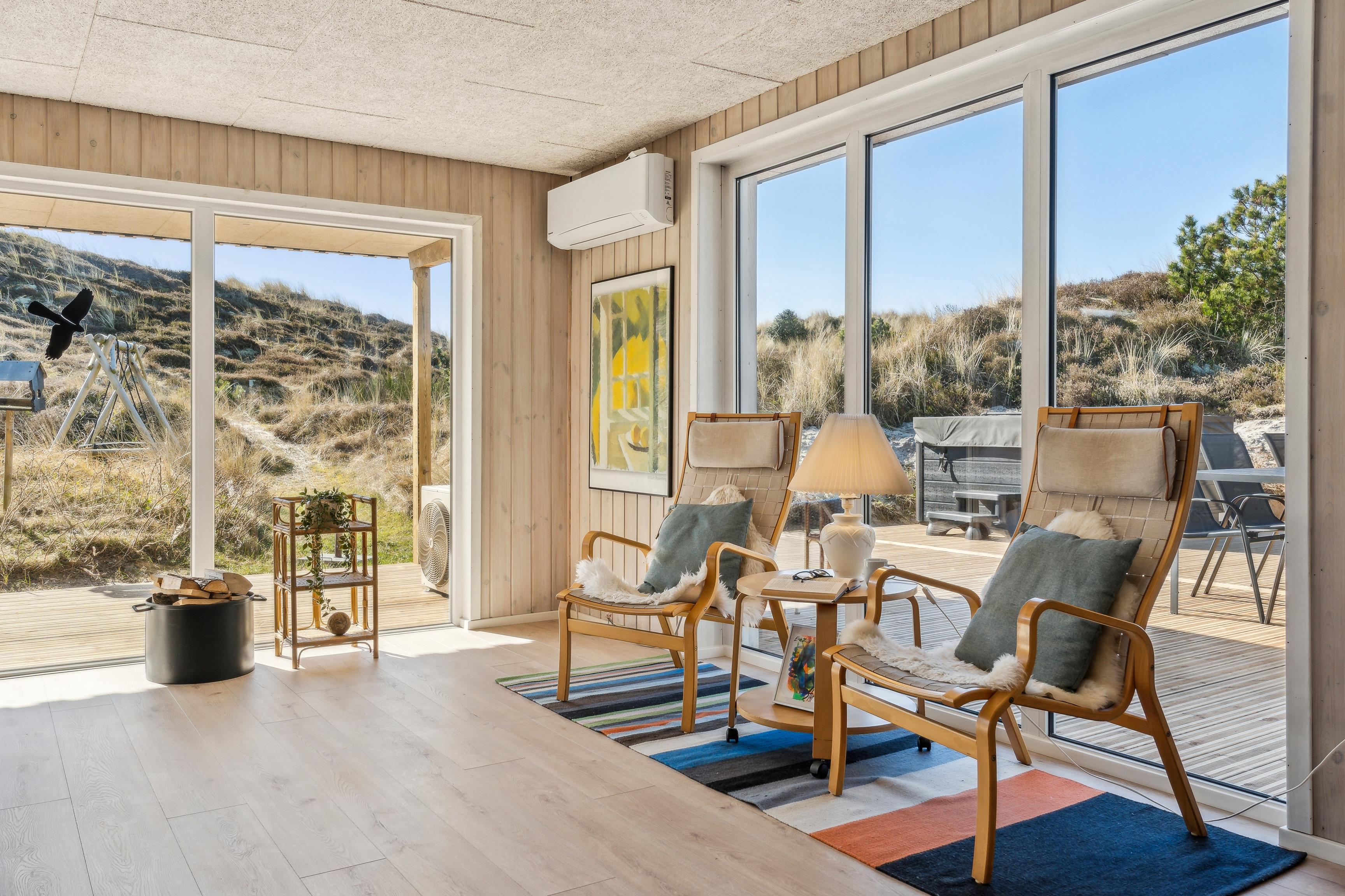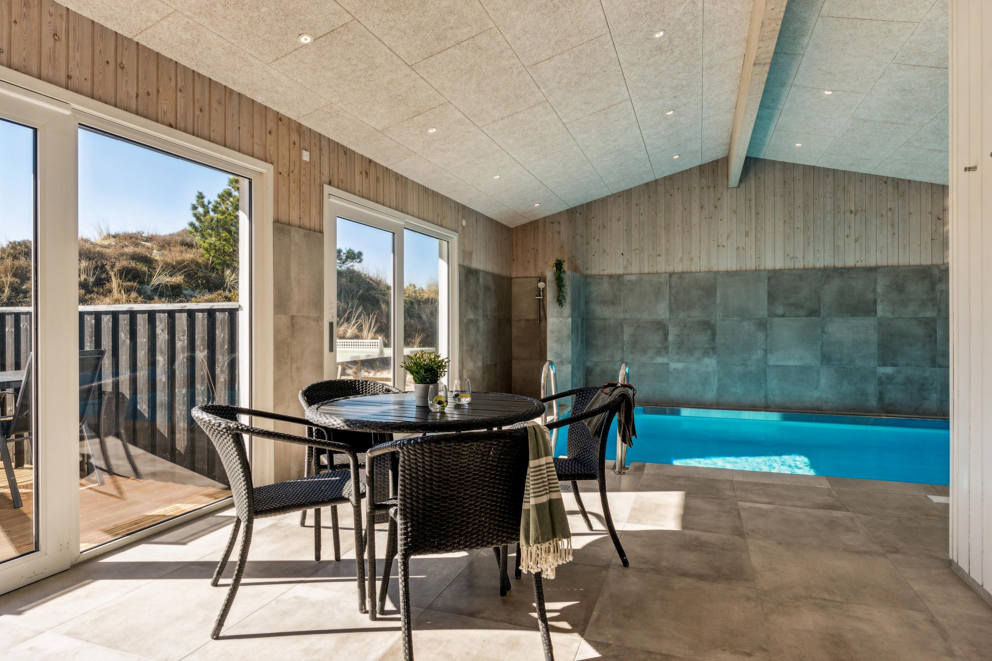 Fantastisk nyrenoveret sommerhus. Efter en omfattende opdatering i 2025 fremstår huset nu som et moderne og luksuriøst ferieparadis med nyt stort udendørs spabad, opdateret poolområde og skønne terrasser. Huset ligger på en 3.000 m² kuperet klitgrund, hvor du kan nyde en helt ugeneret beliggenhed tæt på den storslåede natur. Fra terrasserne har du en flot udsigt til Nr. Lyngvig Fyr, og der er rig mulighed for sjov og afslapning med bordfodbold, udendørs bordtennis og gratis trådløst internet.