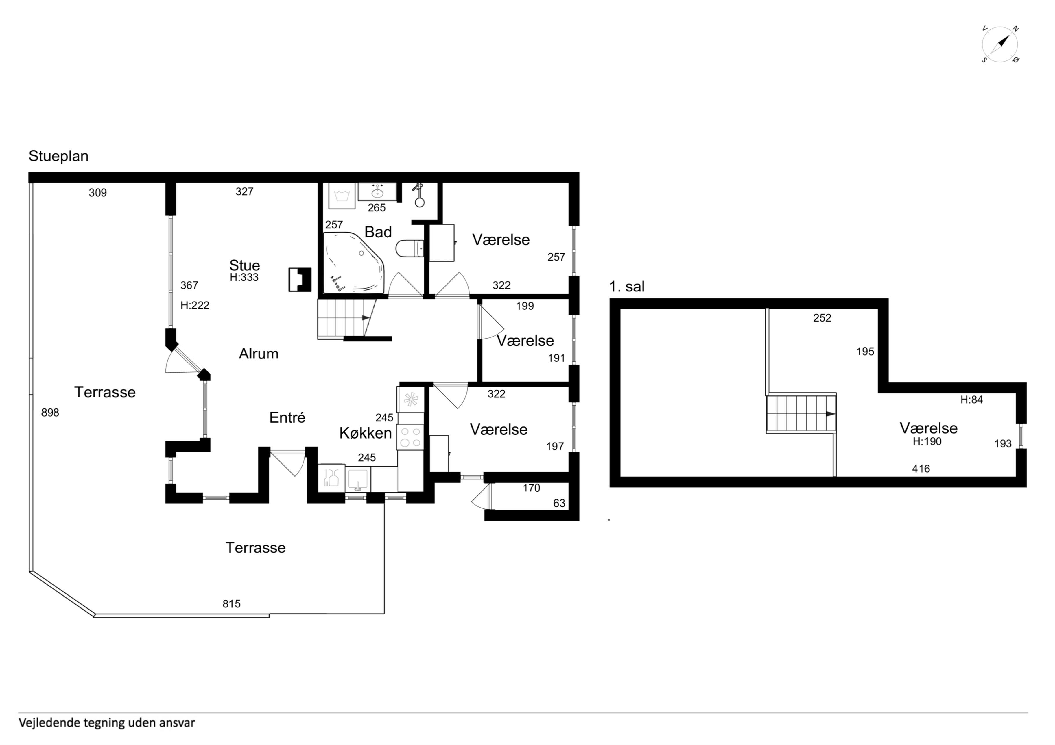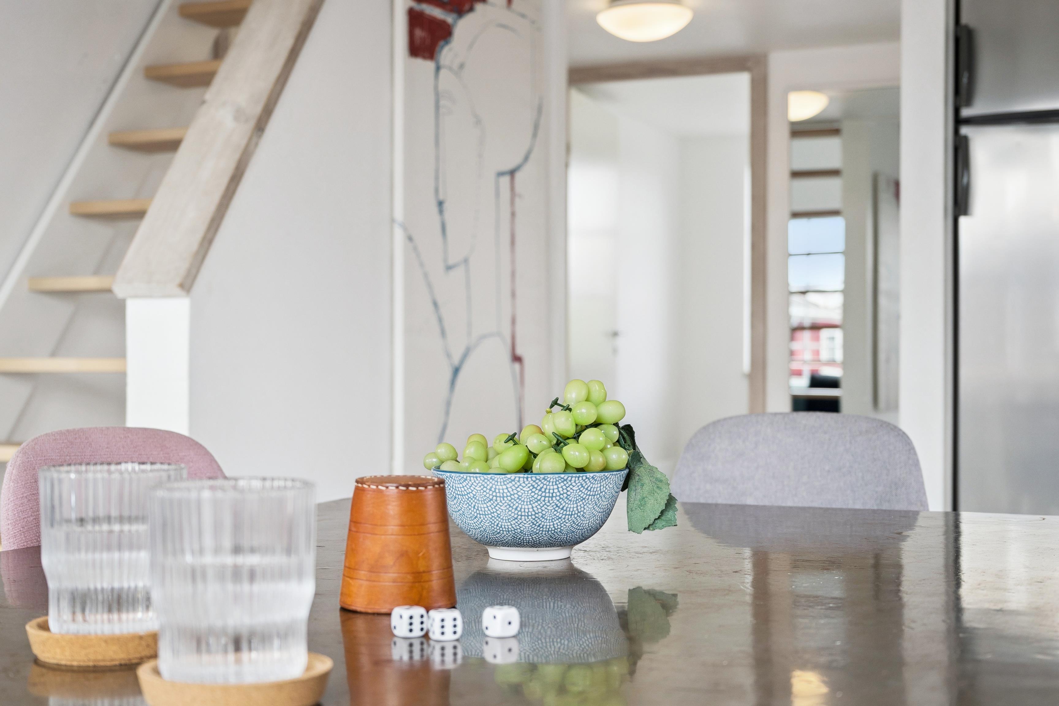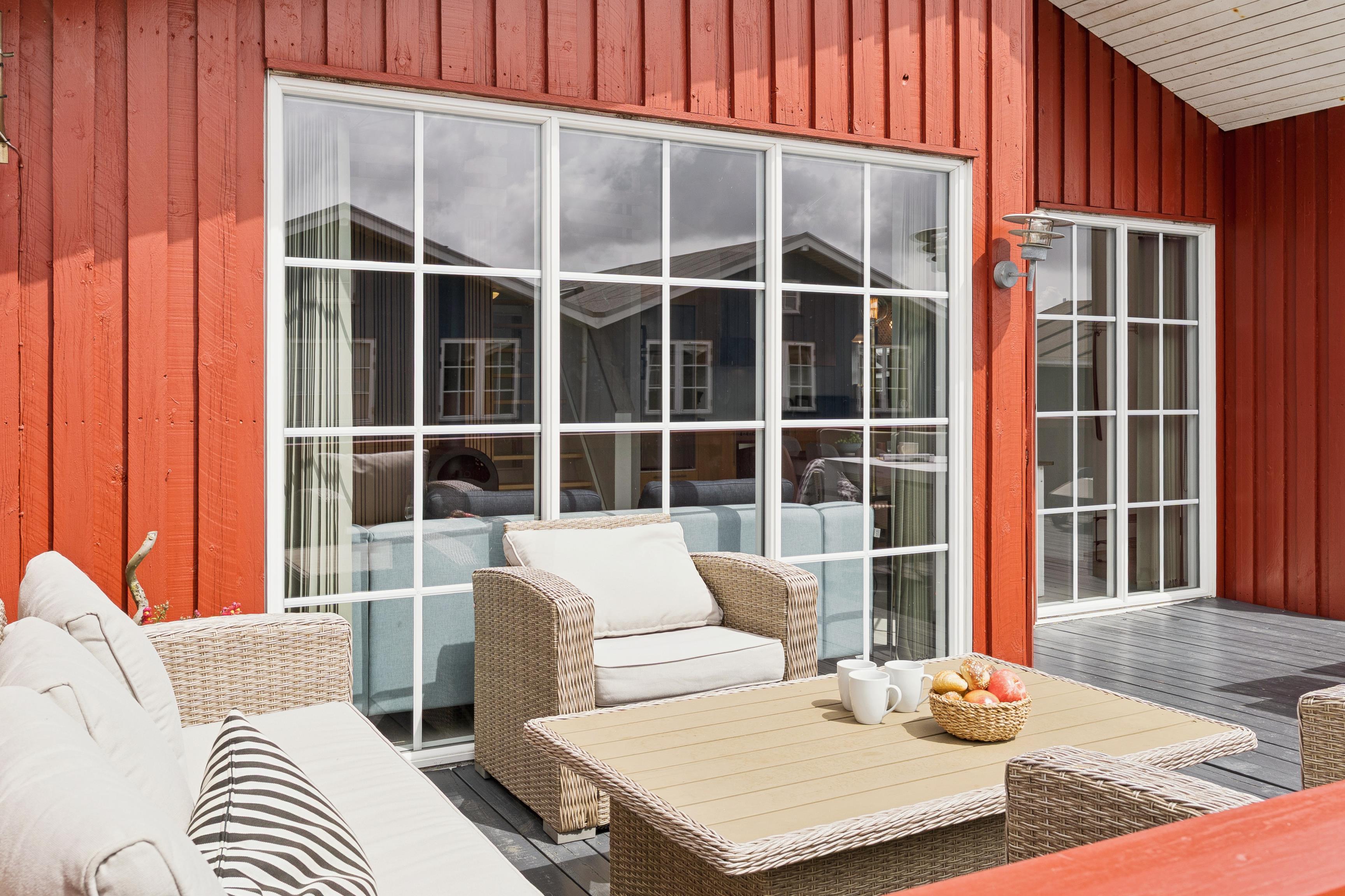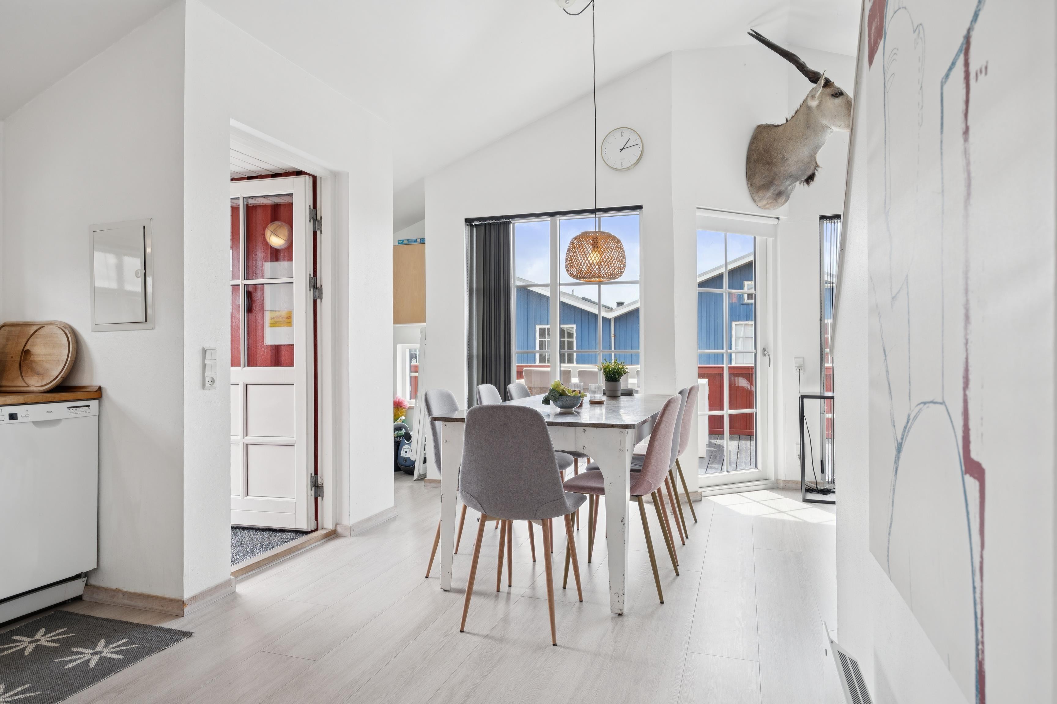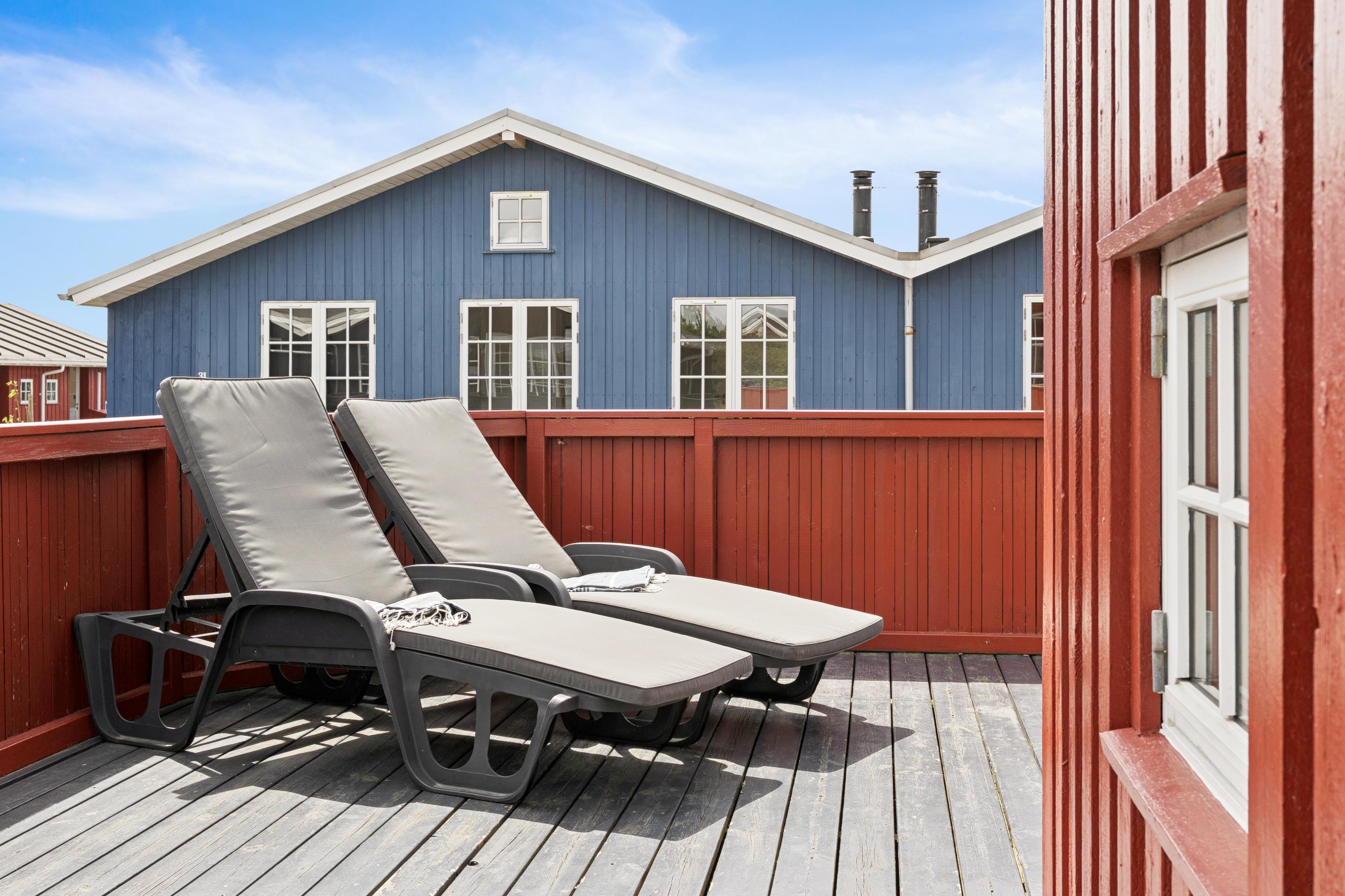 Huset har tre soveværelser, to med dobbeltsenge og et med køjeseng, plus et loft med ekstra soveplads. Det åbne køkken-alrum skaber en hyggelig atmosfære – perfekt til at tilbringe tid med familie, venner eller bare jer to. Nyd varmen fra brændeovnen på kølige aftener og lyt til knitren af ??brænde, når flammerne blusser op. Badeværelset har bruser, gulvvarme og et dejligt spabad til to personer, hvor I kan slappe af og koble fra. Fra stuen har I direkte adgang til en 50 m² stor terrasse mod både øst og syd. I kan nyde solen på liggestolene næsten hele dagen lang. Et stort bord og en komfortabel sofagruppe er til rådighed til aftener udendørs med familie eller venner.