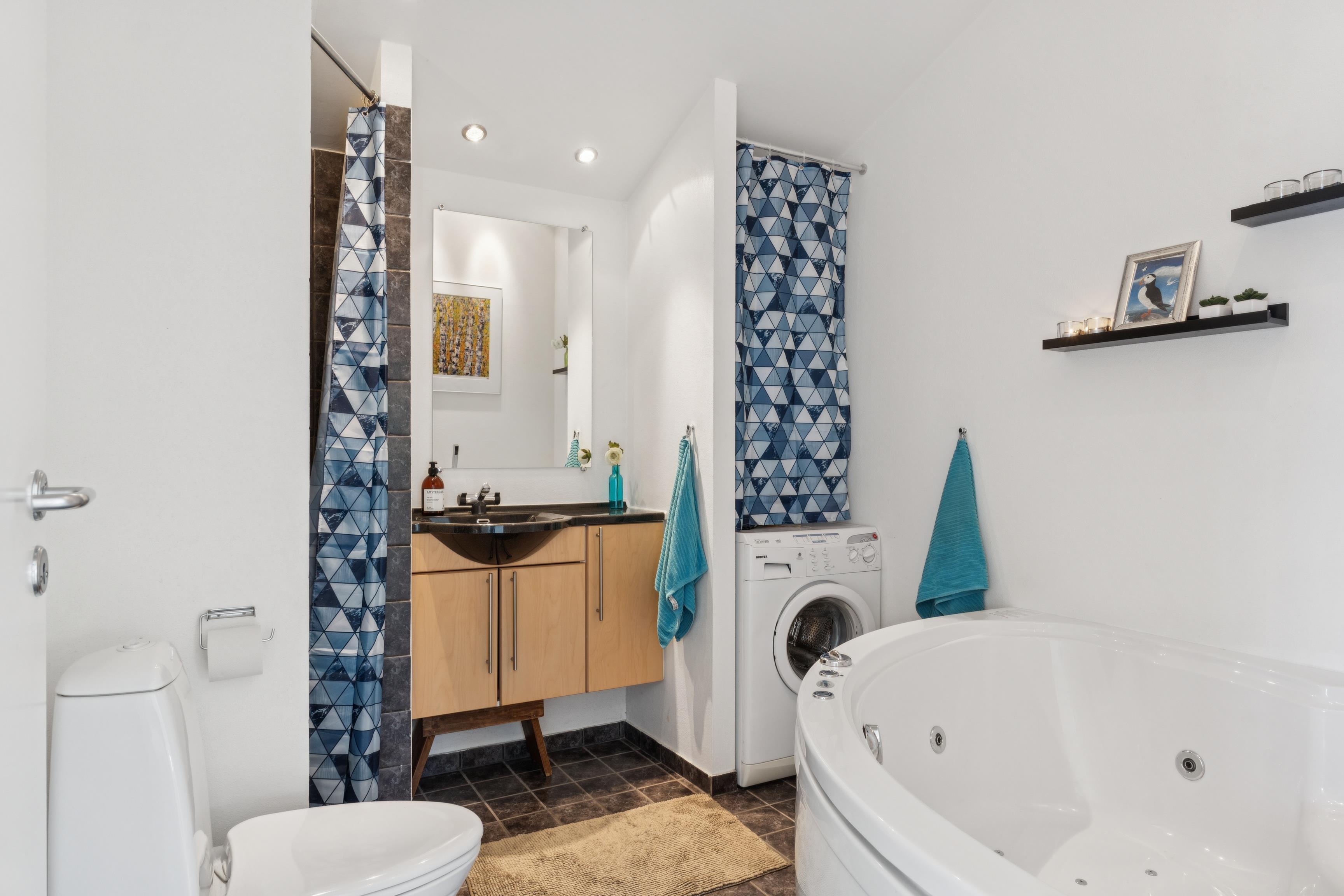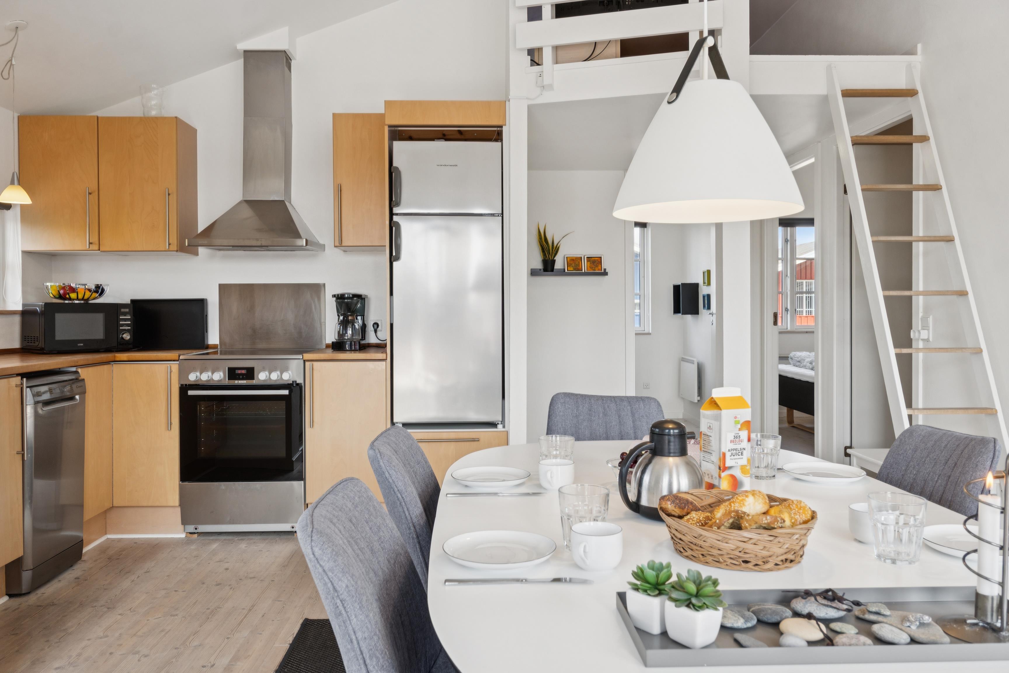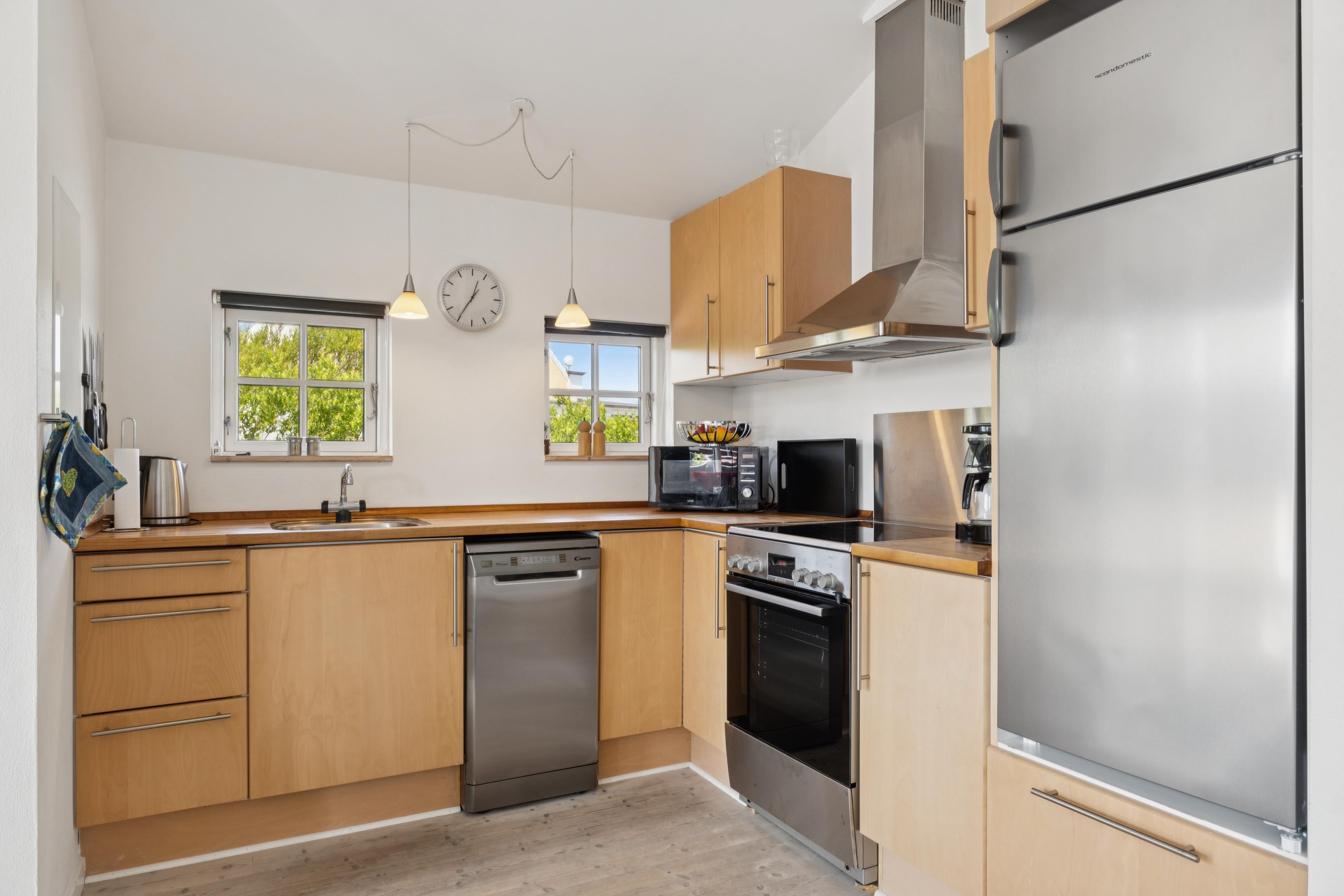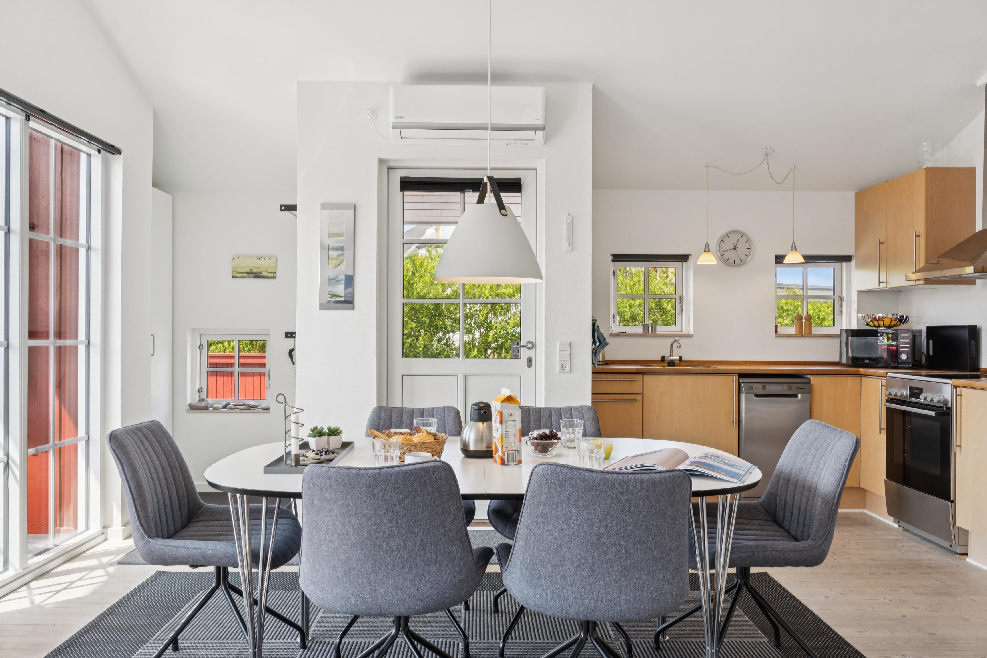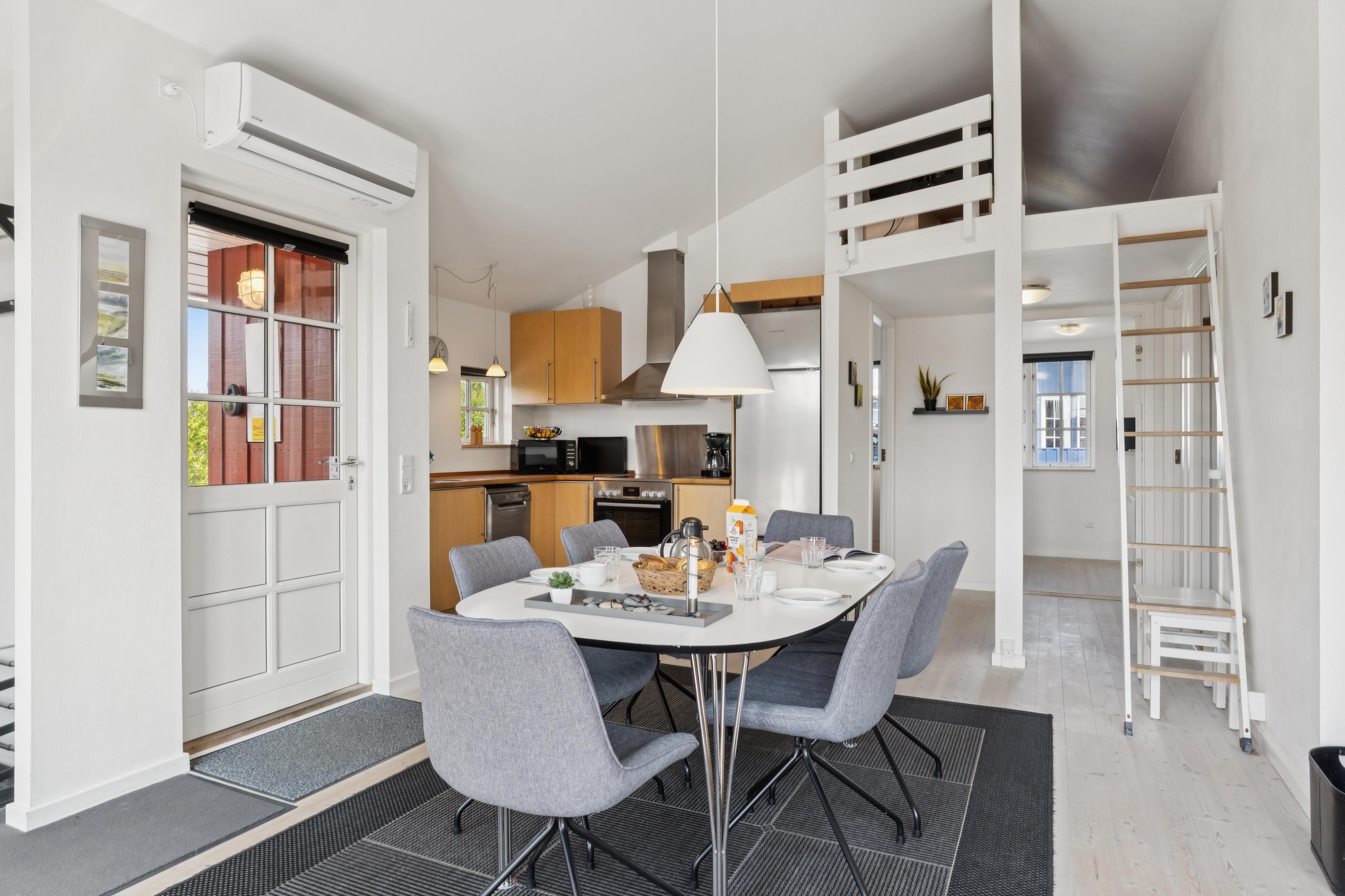 Den åbne stue/køkken-kombination skaber en hyggelig atmosfære – perfekt til hyggelige stunder med familien, venner eller bare to. Nyd varmen fra brændeovnen på kølige aftener og lyt til træets knitren, når flammerne blusser op. Desuden er feriehuset udstyret med en økonomisk og energieffektiv varmepumpe. I stuen er der et Smart-TV med danske og tyske kanaler samt Chromecast og radio. På hemsen er der også et tv med Chromecast og en dvd-afspiller. Der er også gratis wifi. Huset har et lyst badeværelse med bruser, gulvvarme og et spabad til afslapning.