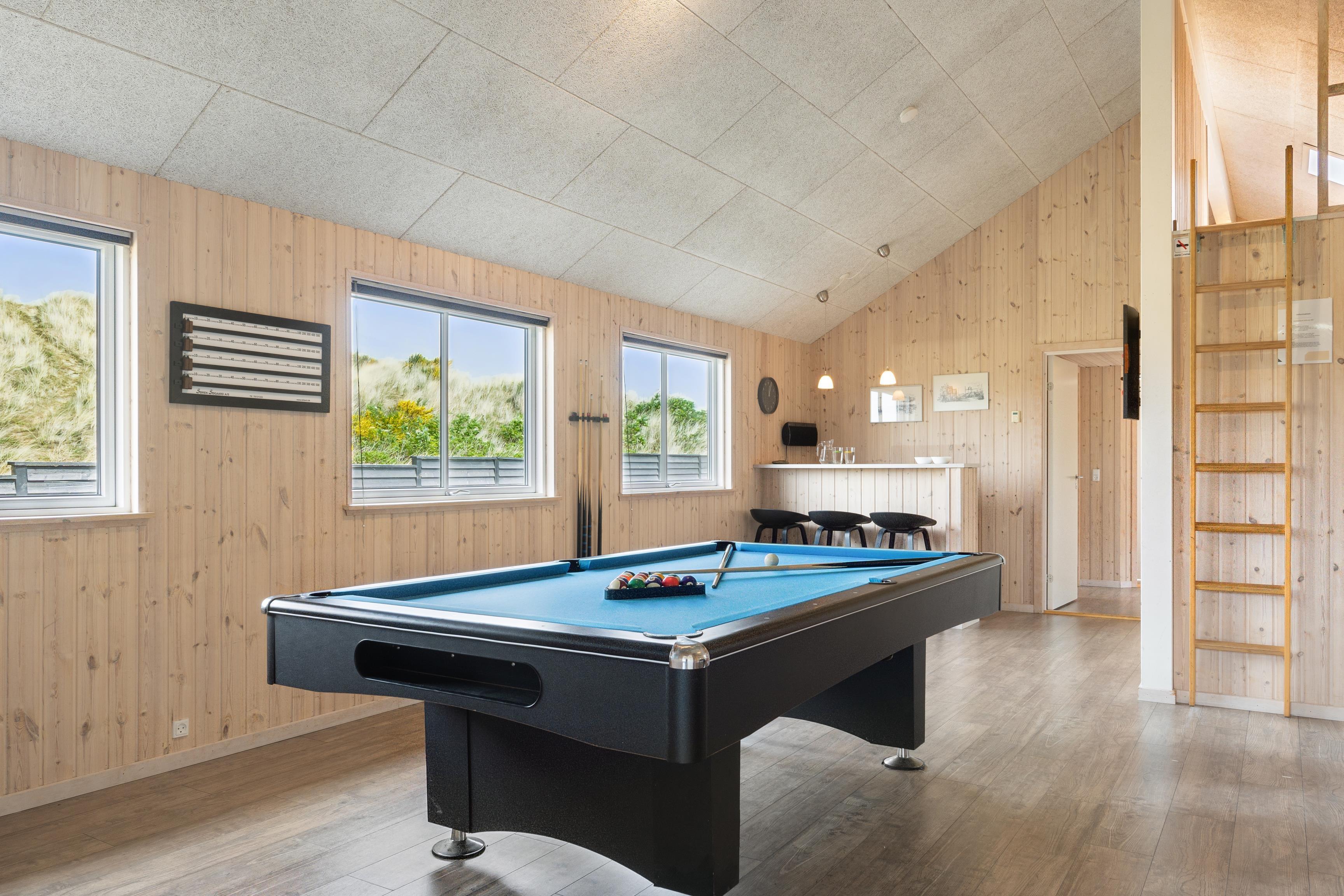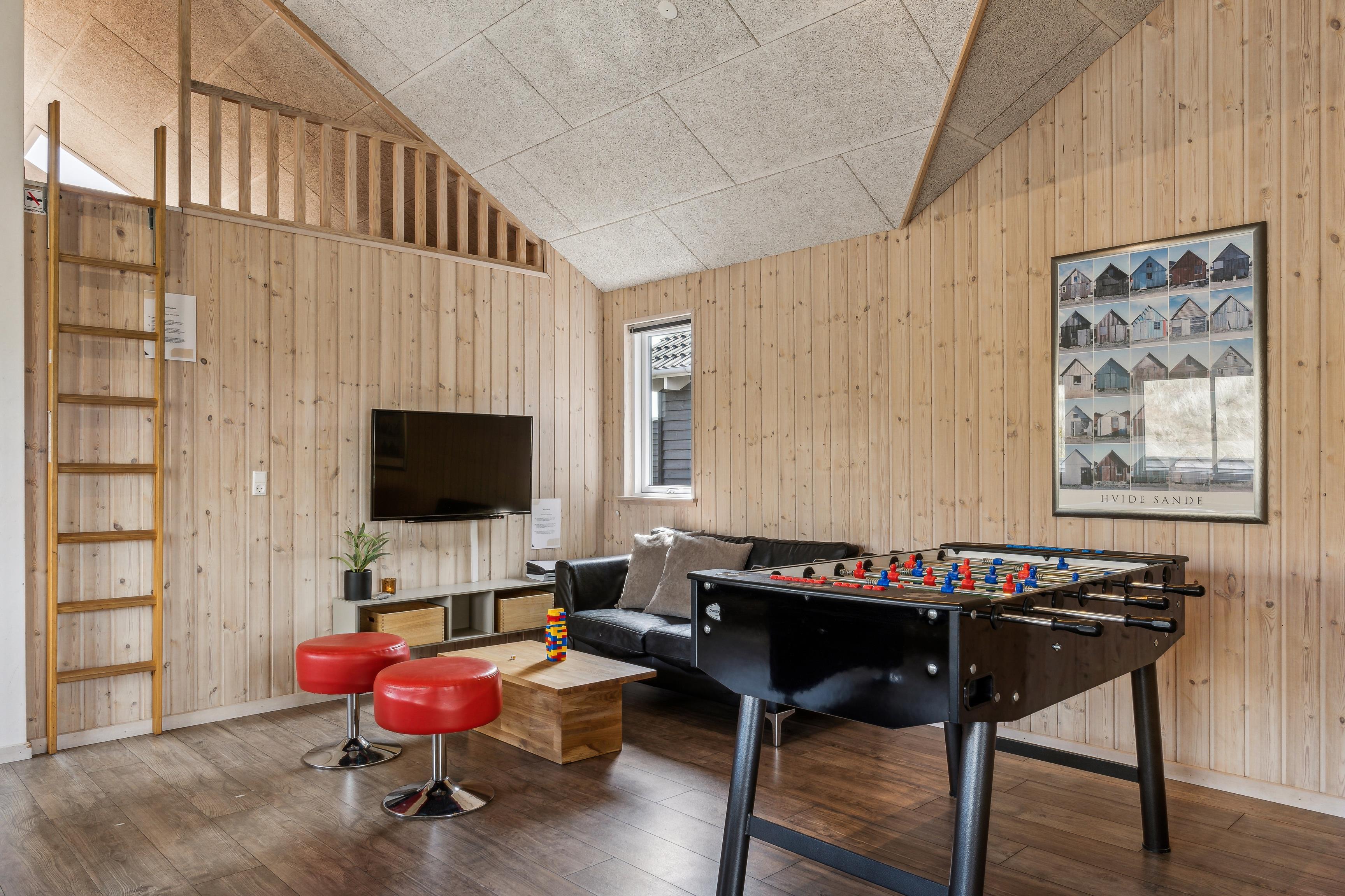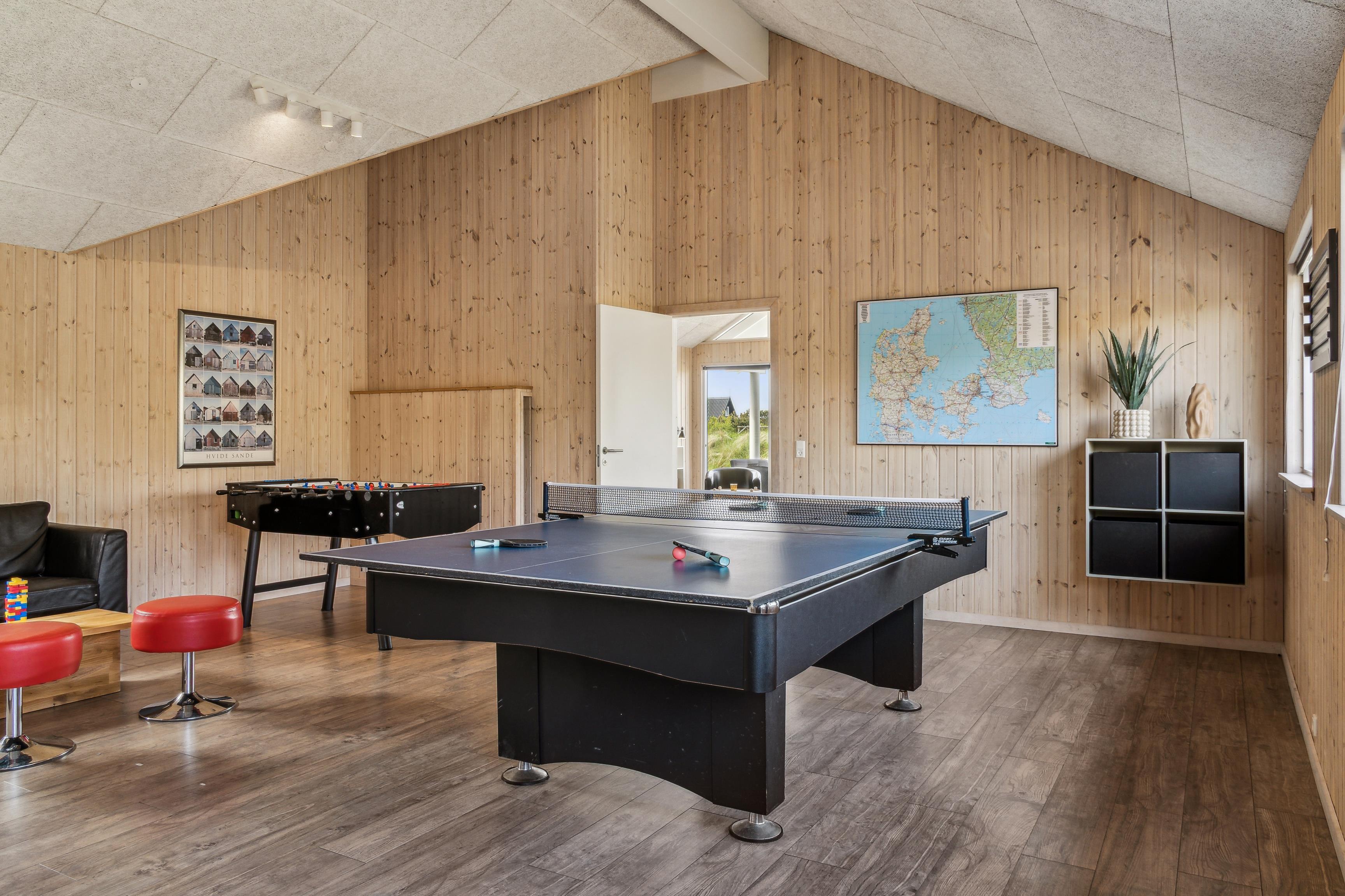 Det store aktivitetsrum er fuld af underholdningsmuligheder: Billard, bordtennis, dart, bordfodbold og en PlayStation 5. Et lille højdepunkt er den integrerede bar, hvor man kan nyde en kølig drink, når det brænder på.