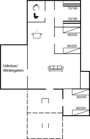 Der er i alt 3 soveværelser. Sovepladserne fordeler sig på: 4 sovepladser i enkeltsenge. 4 sovepladser i køjesenge.