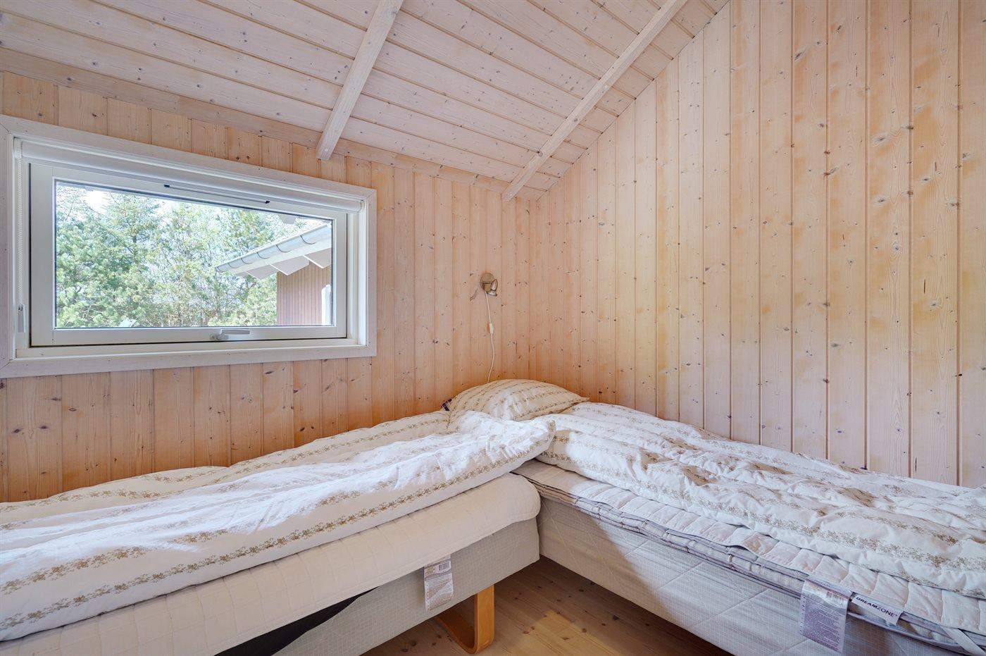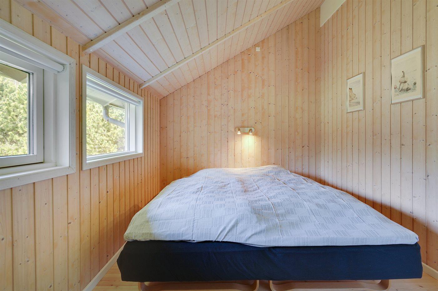 Der er i alt 4 soveværelser. Sovepladserne fordeler sig på: 6 sovepladser i dobbeltsenge. 2 sovepladser i enkeltsenge. Derudover er der 1 stk. barneseng. Der er mørklægningsgardiner i alle soveværelser.