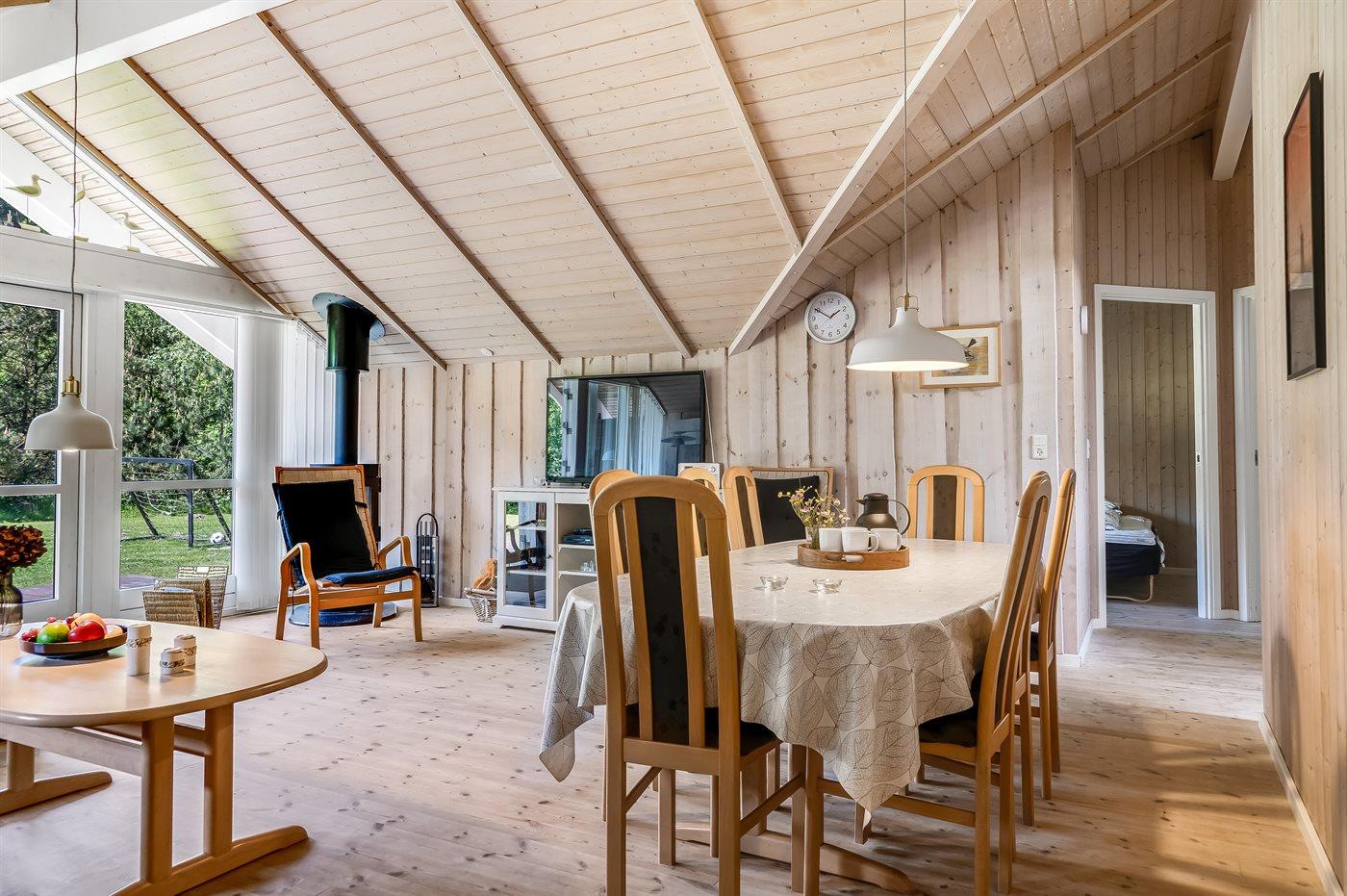 Sommerhuset egner sig til 8 personer. Ferieboligen er på 106 m² og er bygget i 2005. Det er tilladt at medbringe 2 husdyr. Ferieboligen er udstyret med energibesparende varmepumpe. Der er gulvvarme i alle klinkegulve. Ferieboligen har vaskemaskine. Tørretumbler. Frysekapacitet på 40 liter. Der er desuden brændeovn. Til de små er der 1 stk. barnestol.