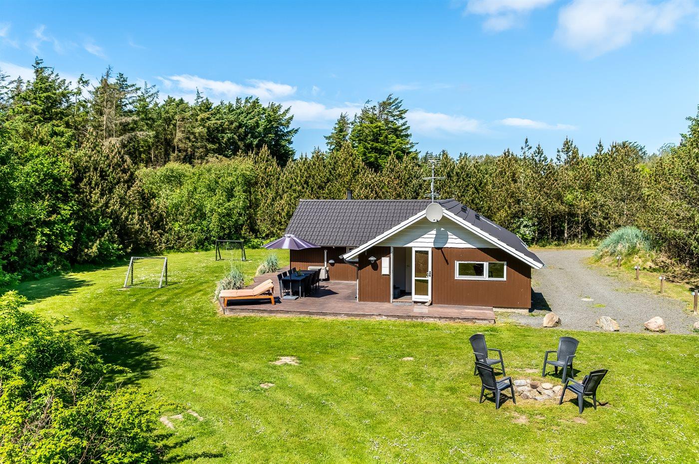 Dejligt sommerhus i Løkken med spa, sauna, brændeovn og elbiloplader på stor naturgrund.