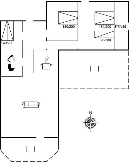 Der er i alt 3 soveværelser. Sovepladserne fordeler sig på: 6 sovepladser i dobbeltsenge. 1 soveplads i enkeltseng. Derudover er der 1 stk. barneseng.