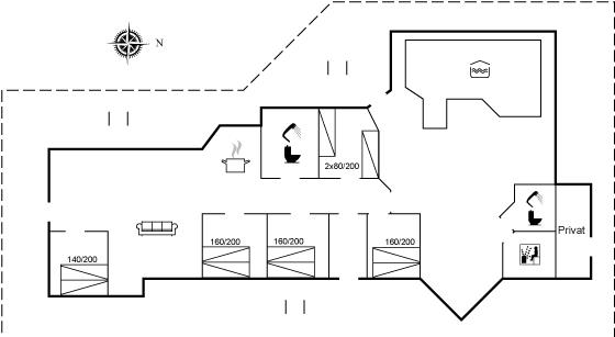 Der er i alt 5 soveværelser. Sovepladserne fordeler sig på: 8 sovepladser i dobbeltsenge. 2 sovepladser i enkeltsenge. Derudover er der 1 stk. barneseng.