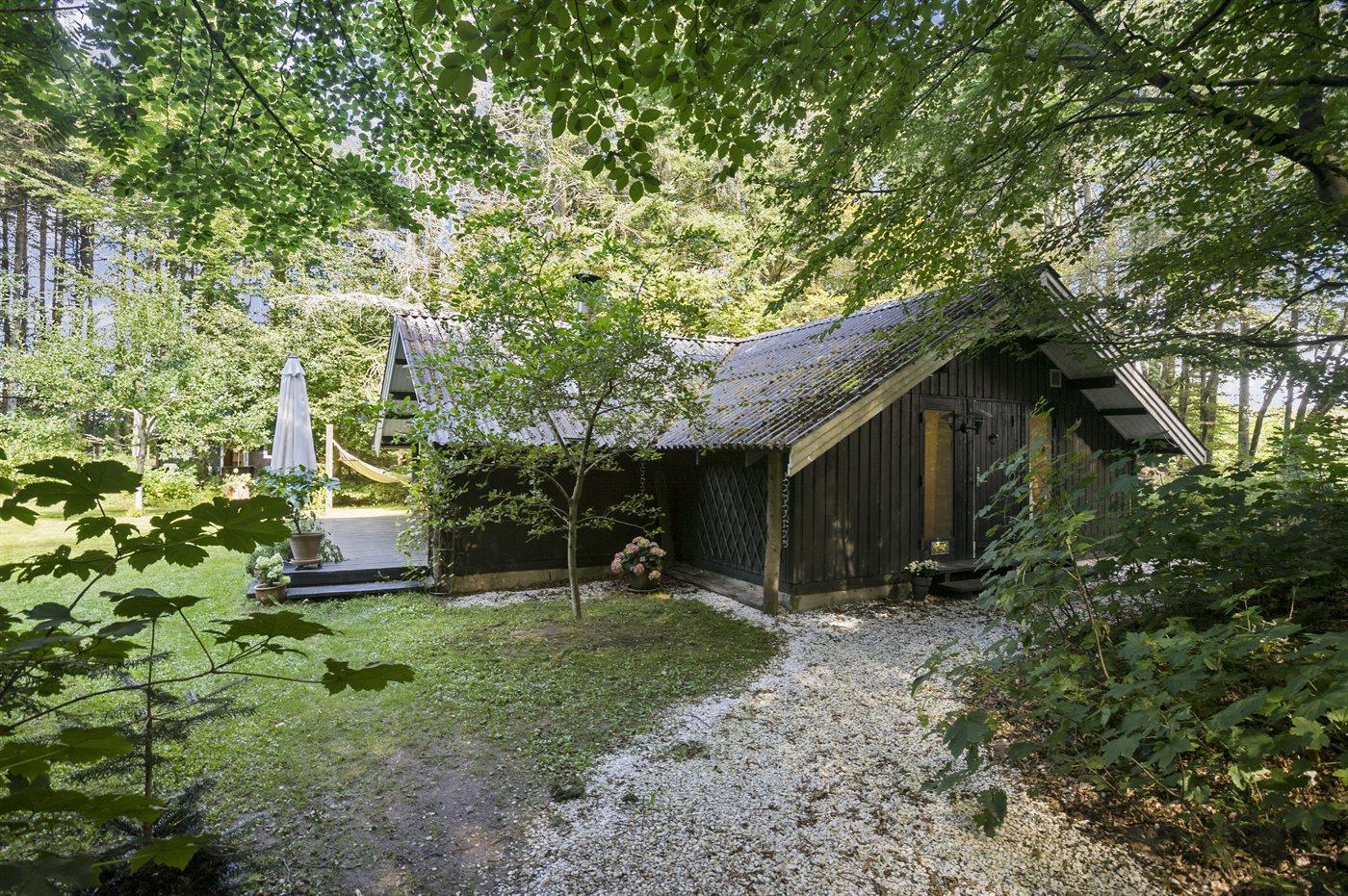 Ferieboligen er beliggende på en 5200 m² stor grund i skov/plantage. Der er 900 m til havet. Nærmeste forretning er beliggende i en afstand af 3000 m. Til ferieboligen hører 10 m² terrasseareal. Desuden er der 10 m² overdækket terrasse. Bålsted. Parkering ved ferieboligen.