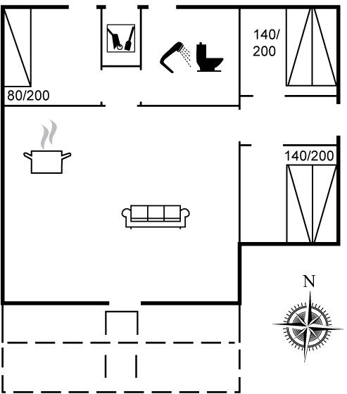Der er i alt 3 soveværelser. Sovepladserne fordeler sig på: 4 sovepladser i dobbeltsenge. 1 soveplads i enkeltseng.