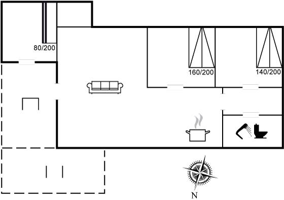 Der er i alt 3 soveværelser. Sovepladserne fordeler sig på: 4 sovepladser i dobbeltsenge. 2 sovepladser i køjeseng. Derudover er der 1 stk. barneseng.
