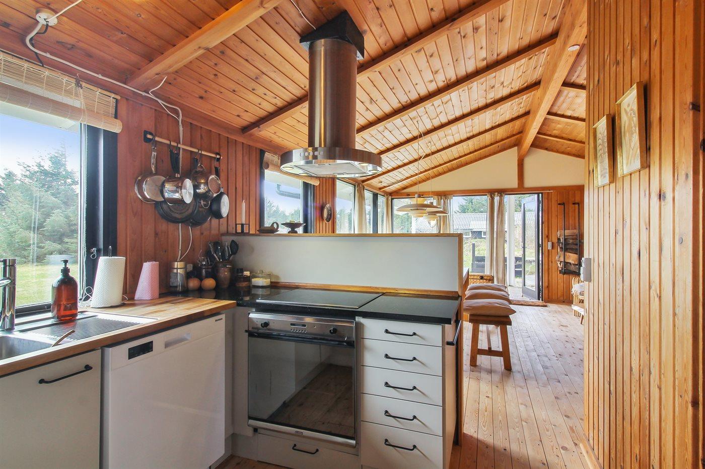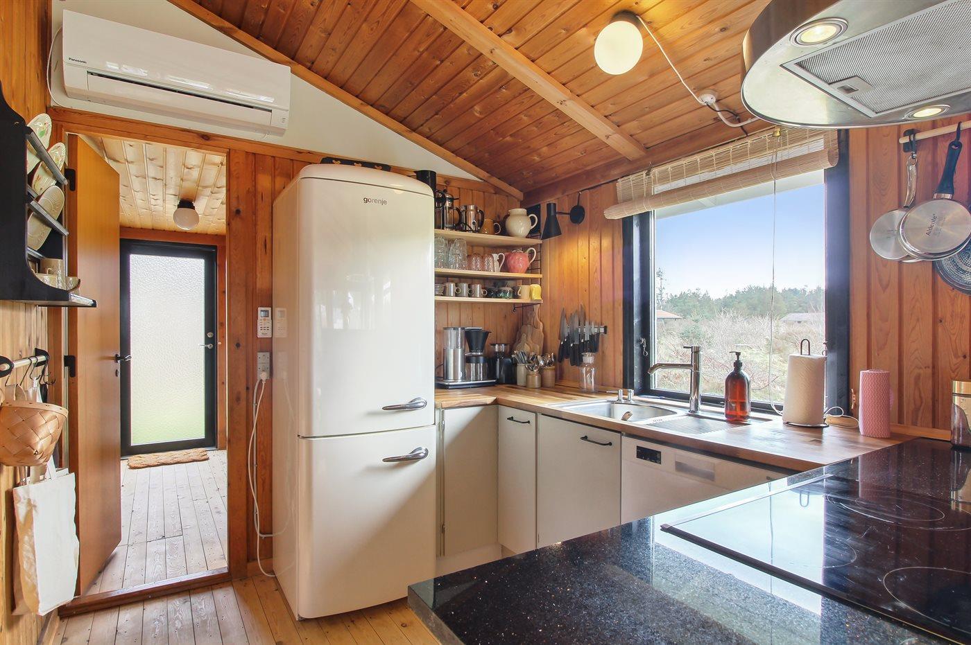 Køkkenet er udstyret med 1 køleskab. Der er 4 keramiske kogeplader, varmluftovn samt opvaskemaskine.
