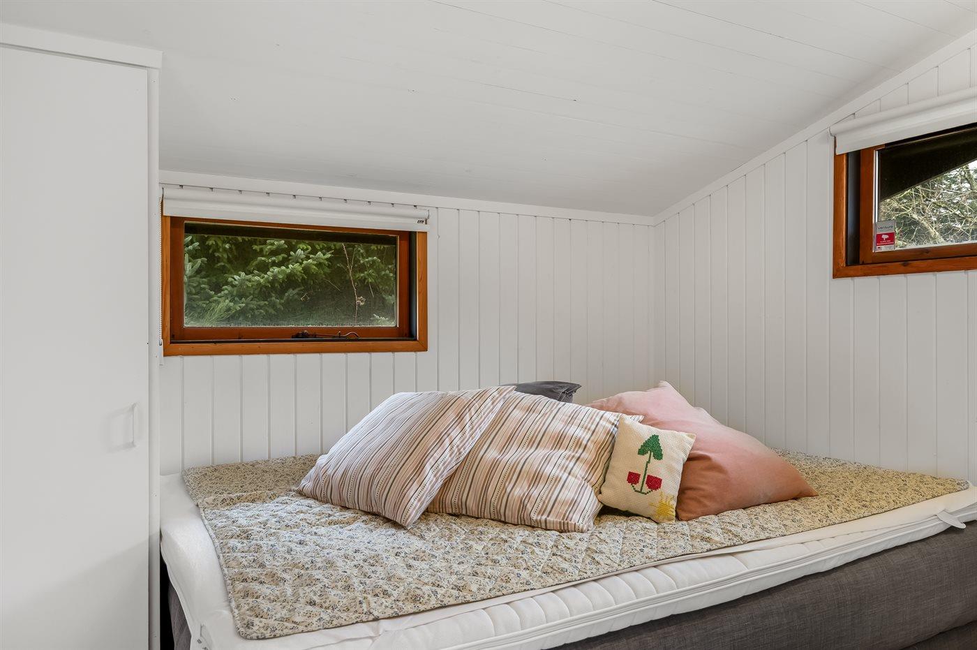 Der er i alt 4 soveværelser. Sovepladserne fordeler sig på: 4 sovepladser i dobbeltsenge. 2 sovepladser i køjeseng. 2 sovepladser i sovesofa (dobbelt).