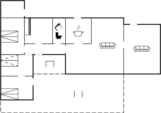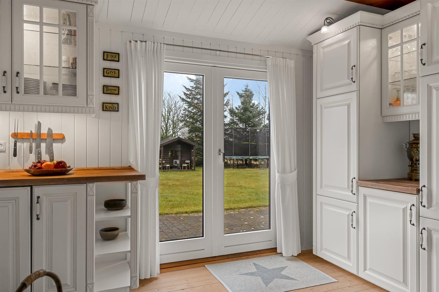 Køkkenet er udstyret med 1 køleskab. Der er 4 induktionskogeplader, varmluftovn, mikrobølgeovn samt opvaskemaskine.
