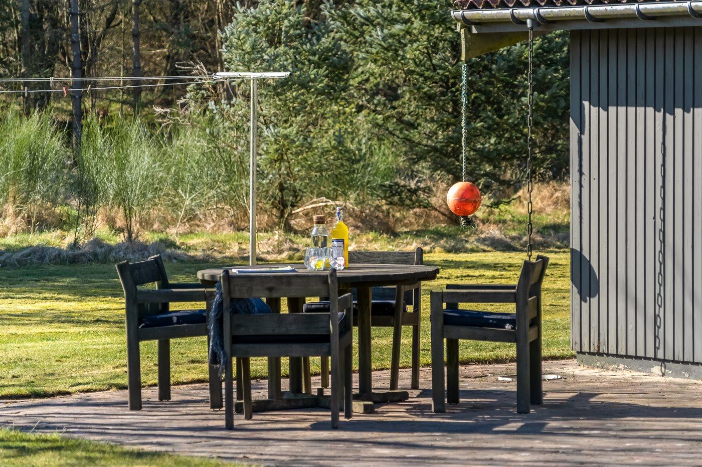 Ferieboligen er beliggende på en 5474 m² stor naturgrund. Der er 400 m til havet. Nærmeste forretning er beliggende i en afstand af 5000 m. Til ferieboligen hører åbent terrasseareal. Legehus. Fodboldmål. Bålsted. Grill til rådighed. Parkering ved ferieboligen.