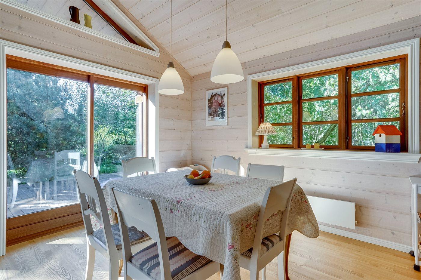 Sommerhuset egner sig til 6 personer. Ferieboligen er på 109 m² og er bygget i 2003. Det er tilladt at medbringe 2 husdyr. Ferieboligen er udstyret med energibesparende varmepumpe. Ferieboligen har vaskemaskine. Der er desuden brændeovn. Til de små er der 1 stk. barnestol.