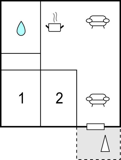 Opholdsstue/køkken - 1 Soveplads. (Sofa, madras eller lignende).