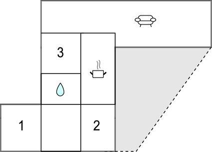 Badeværelse (nr. 1) - WC. Varmt og koldt vand. Bruser