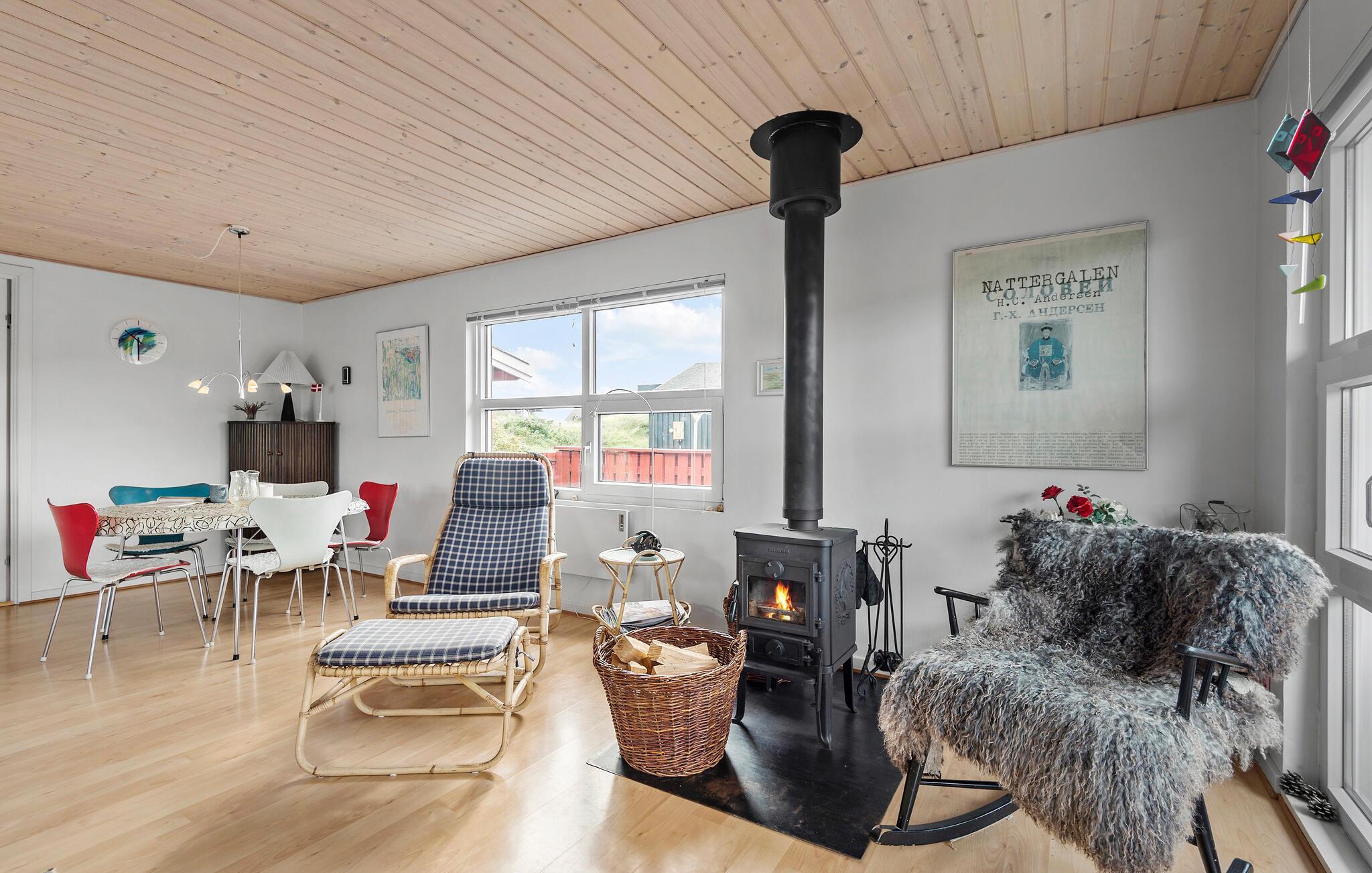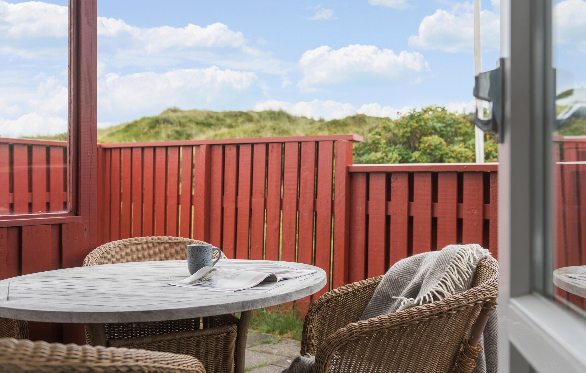 Her er I omgivet af et skønt, idyllisk landskab bag de store klitter med stranden og havet på den anden side. Huset er hyggeligt indrettet og med gode terrasser samt skur, hvor I kan opbevare jeres cykler. Det lille funktionelle køkken har alt, hvad I skal bruge, så her kan I gøre feriens måltider klar, inden I dækker op på terrassen på en lun sommerdag.