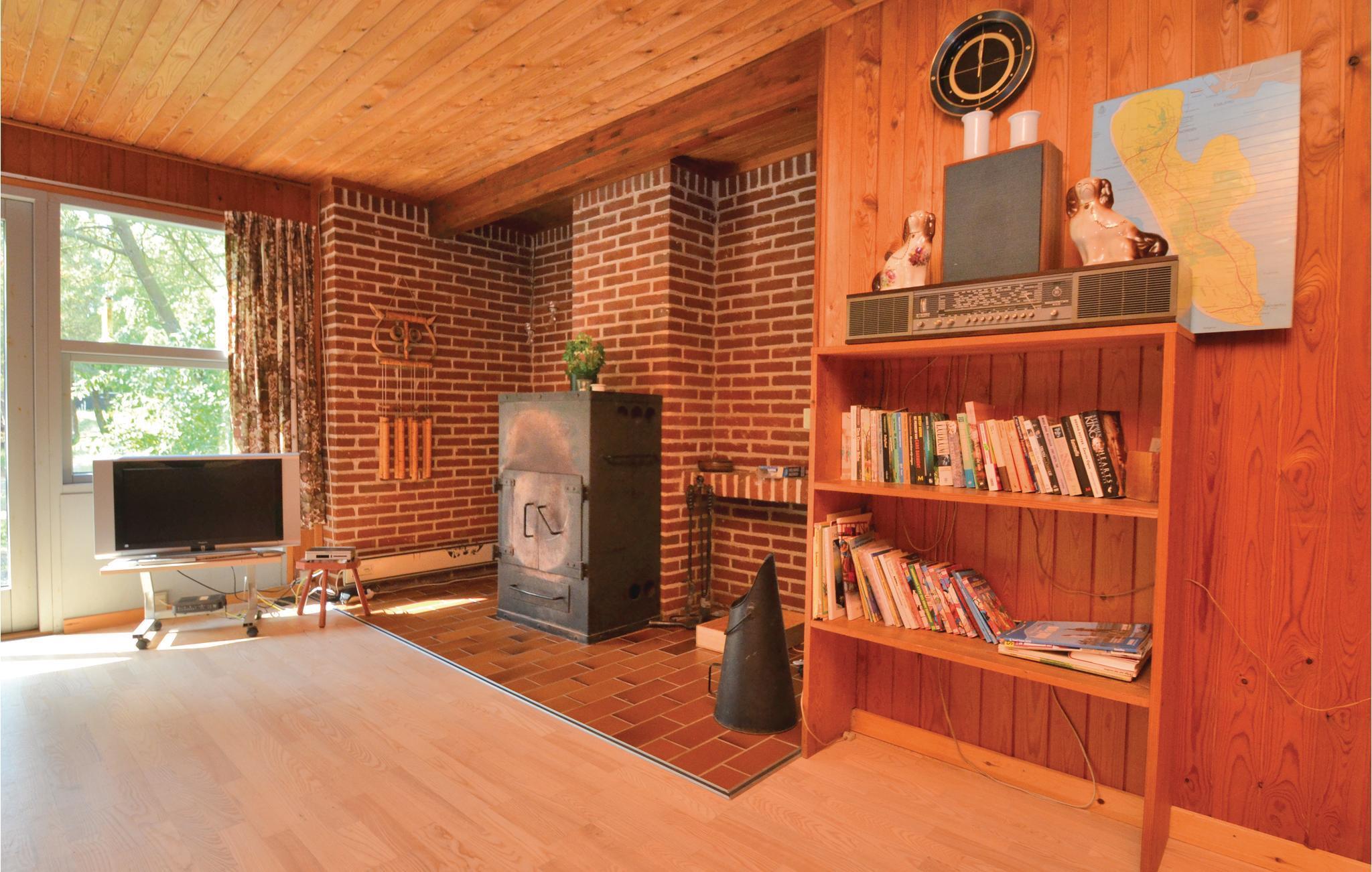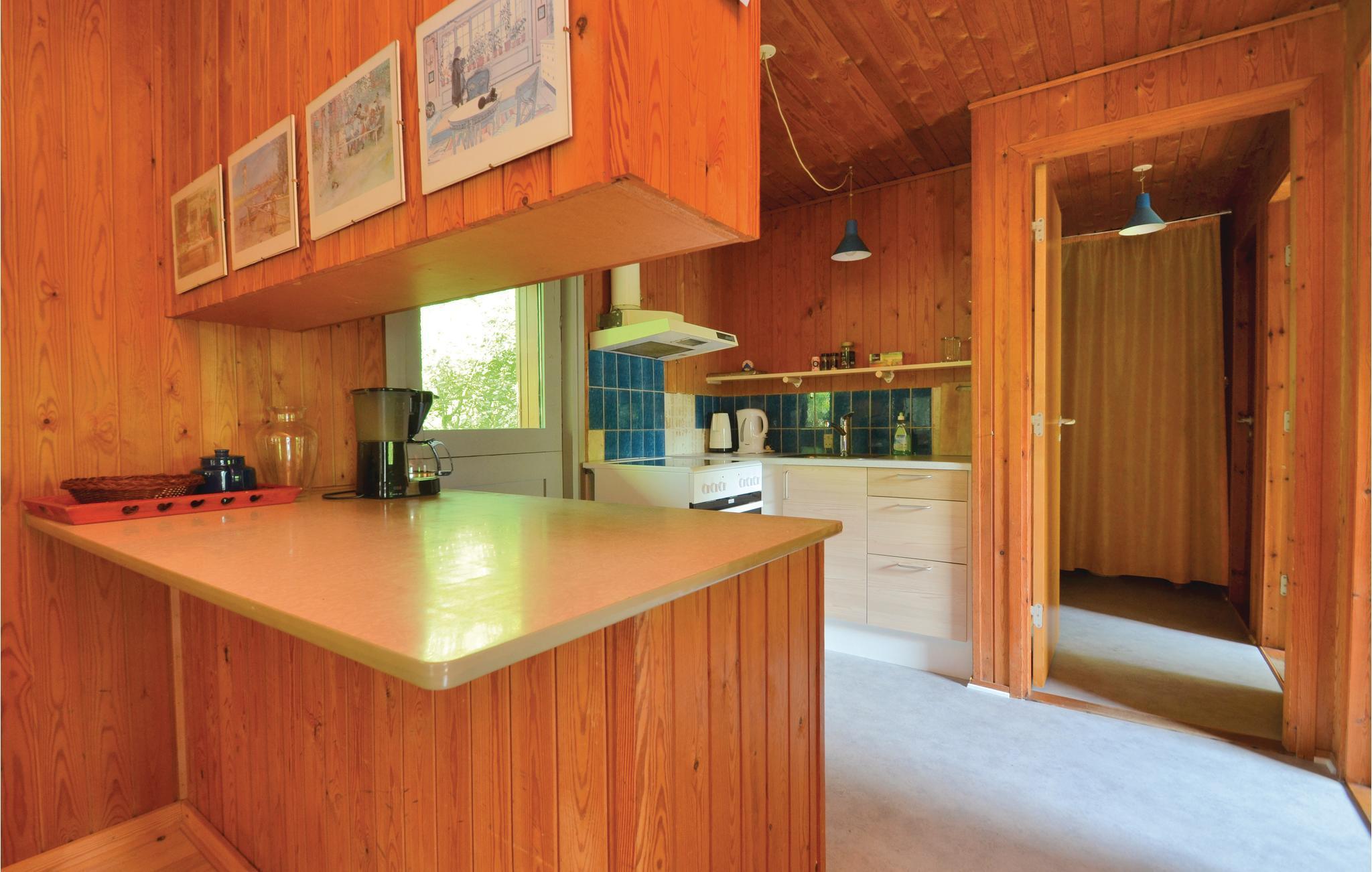 Dette ældre feriehus har en god beliggenhed i feriehusområdet Nyby - det ligger godt tilbagetrukket fra vejen, og har mange afskærmende træer rundt om hele huset, hvor I også finder de små private terrasser, som er delvist overdækket. Huset byder på gode soveværelser med dobbeltsenge og en etageseng, et lyst badeværelse samt et mindre køkken, der ligger i åben forbindelse med den rummelige stue, hvor der er en fin spiseplads samt stort sofaområde.