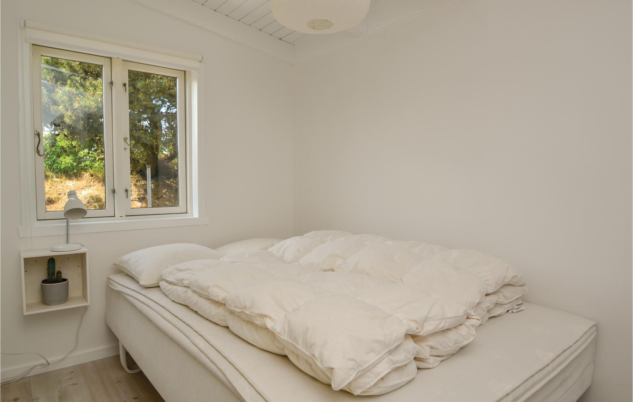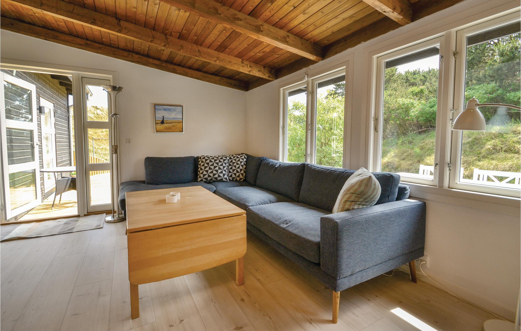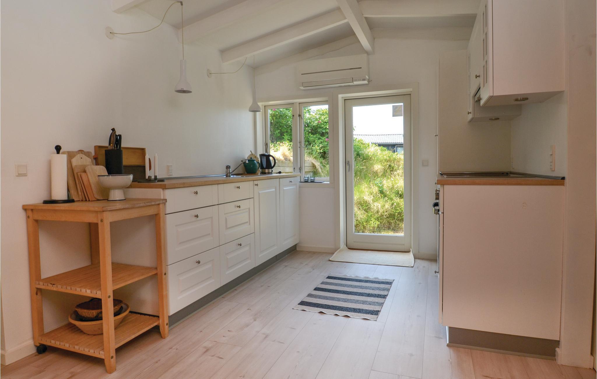 Huset fremstår med en pæn og lys tidssvarende indretning efter ombygning i 2018. Det veludstyrede køkken ligger i åben forbindelse med stuen, og hele rummet har et rigtig godt lysindfald fra de mange vinduer. Stuen er det helt ideelle sted at slappe af efter en lang dag på stranden - er det lidt køligt, er der også en brændeovn at varme sig på. Soveværelserne i huset er indrettet med gode senge, og med indbyggede skabe er der god plads til bagagen.