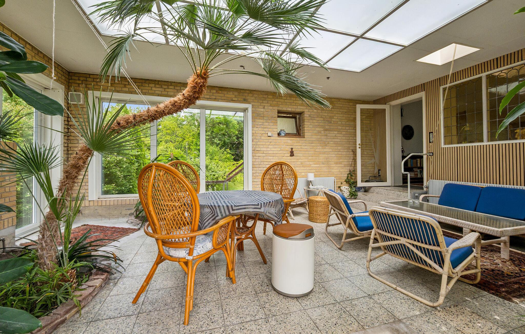 Træd gennem udestuen ud på den solrige terrasse, når de første solstråler viser sig om morgenen. Nyd en solid morgenmad her, nyd roen, der omgiver jer, og lav planer for den næste dag. Sid i den store, grønne have med en god bog og glem alt om tiden.