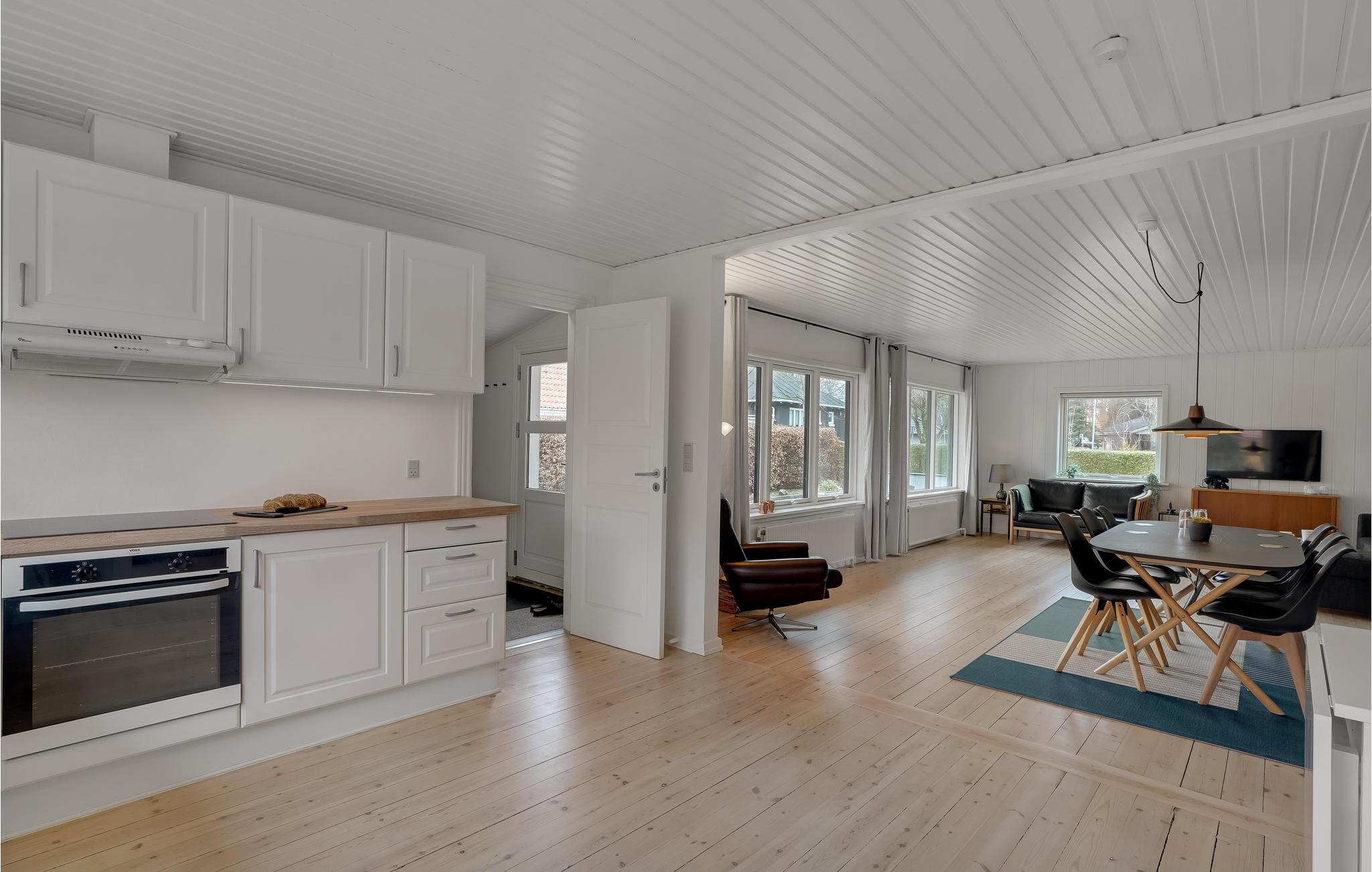 Glæd jer til en dejlig familieferie i dette dejlige feriehus, som emmer af smarte og behagelige indretningsløsninger. Boligen er lys og hyggelig, så får alle de bedste betingelser for at hvile ud efter en lang dag på farten. Nyd tiden sammen i det åbne opholdsrum, der forbinder køkken, spisestue og opholdsstue. Her kan I spille brætspil, fremtrylle lækre ferieretter eller læne jer tilbage med hver jeres gode bog. I sommermånederne kommer I sikkert til at bruge størstedelen af jeres timer hjemme på den store terrasse.