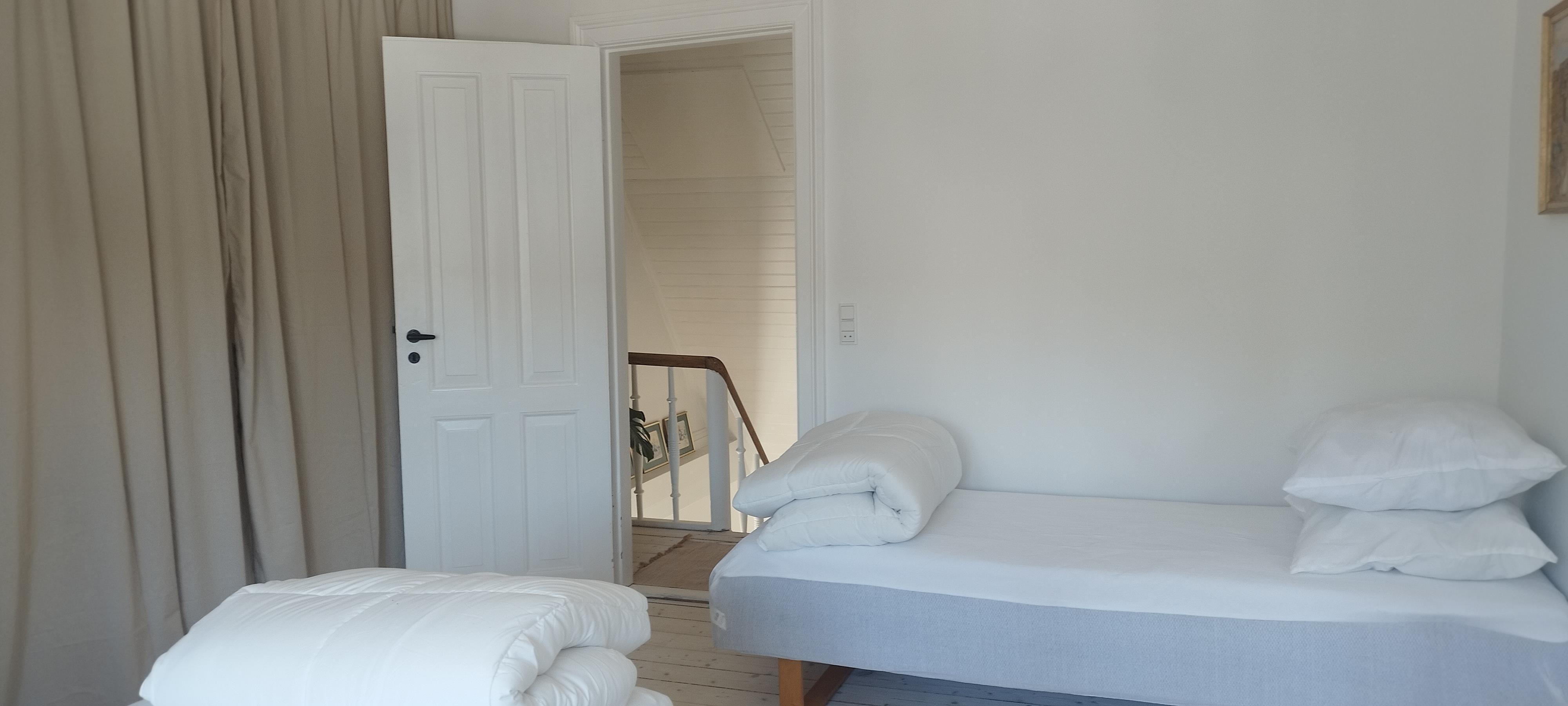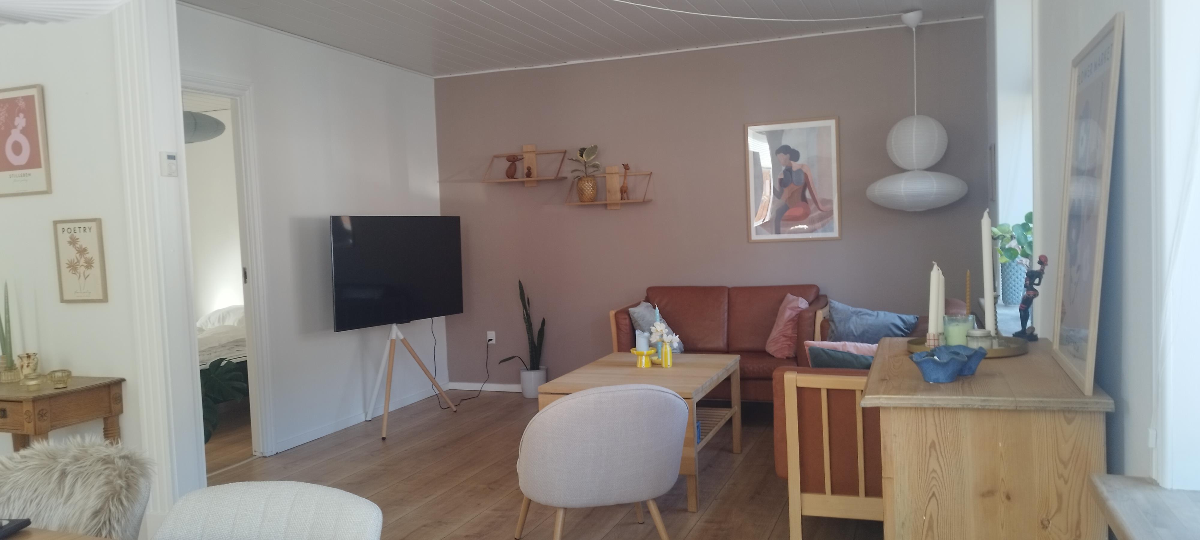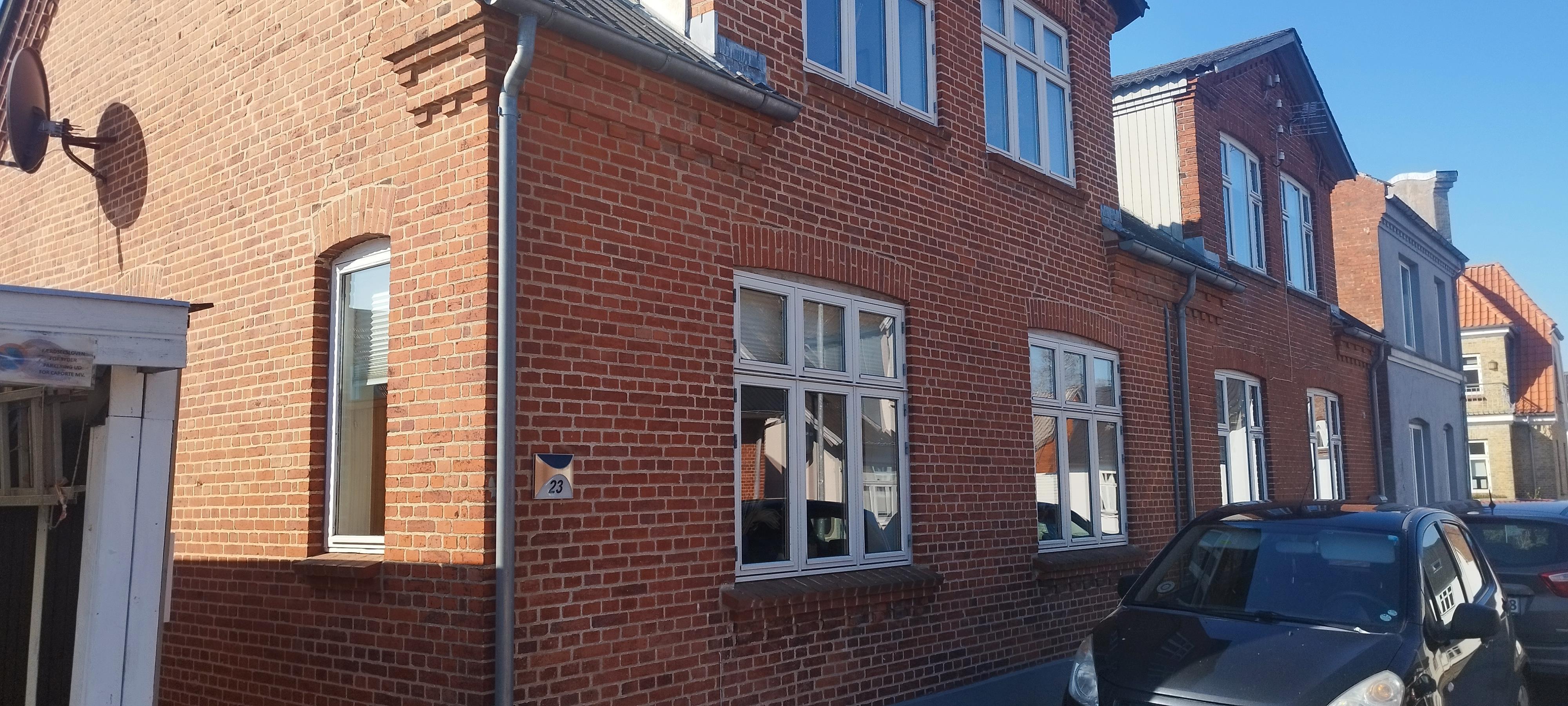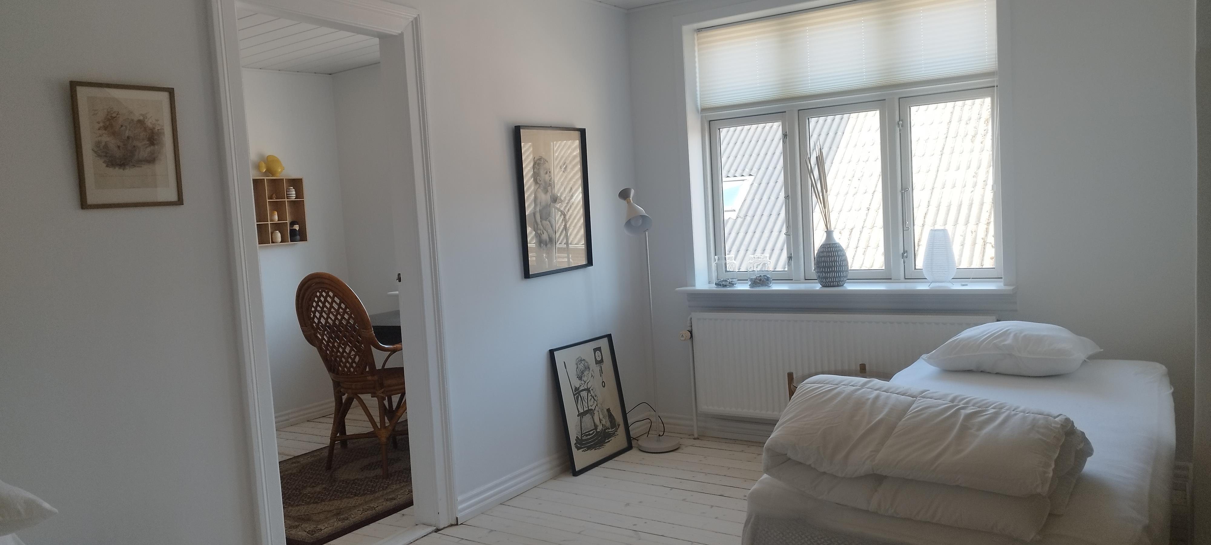 Dette charmerende byhus på 92 m² ligger tæt på Nykøbing Mors centrum og er ideelt til en afslappende ferie. Huset har tre værelser, hvoraf to ligger på første sal med hver to senge. For at komme til det andet værelse skal man gå igennem det første. Derudover er der et badeværelse, som kan tilgås både fra det bagerste værelse og fordelingsgangen. I stueetagen finder du det tredje værelse med to senge og udgang til en overdækket terrasse. Stuen er hyggelig med både sofagruppe og spiseafdeling, og køkkenet er fuldt udstyret med kaffemaskine, elkedel, brødrister og opvaskemaskine.