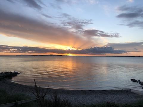 Her kan du hver aften i sæsonen opleve at solen spilles ned kl. 21 ved lystbådehavnen.