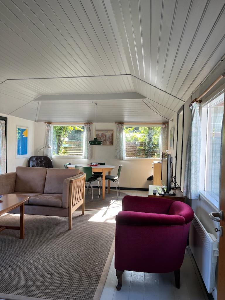 Charmerende sommerhus som virkelig "oser" af sommerhusstemning. Huset er på 72 m2 og der er 2 værelser i huset. En med 1 db. seng og en med 2 køjer (90 x 200). Huset egner sig fint til 4 voksne og 1 barn. Huset er renoveret i 2021 og der er taget hensyn til den oprindelige stil. Skøn stor overdækket terrasse på 45 m2, hvor det er oplagt at opholde sig. En del af haven er fuldstændig lukket af, så alle muligheder for nogle skønne dage tæt på fjorden er til stede. Sig til hvis der er behov for barneseng eller barnestol. BEMÆRK: Når der medbringes hund, skal der tilkøbes en slutrengøring.