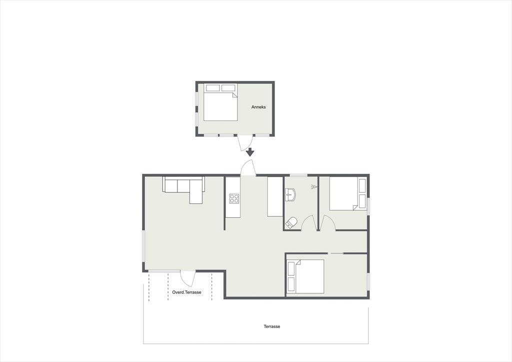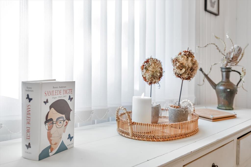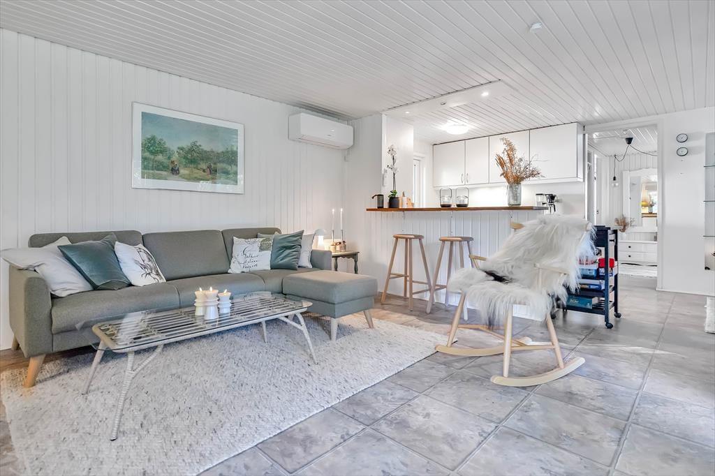 Sommerhuset har gennemgået en større renovering og fremstår lyst og særdeles indbydende. Inde fra huset er der det smukkeste udsyn til den skønne grund. Sommerhusets hjerterum er opholdsstuen, hvor mange gode stunder kan nydes med en god middag, eller med en spændende bog i sofaen imens du lytter til brændeovnens knitren. Du vil med det samme mærke den særdeles gode stemning af ro og velvære. I huset er der 2 fine værelser og et dejligt badeværelse. Desuden er der et skønt anneks i tilknytning til huset.