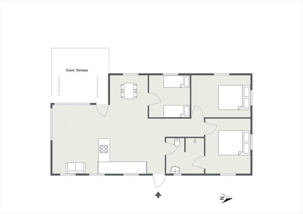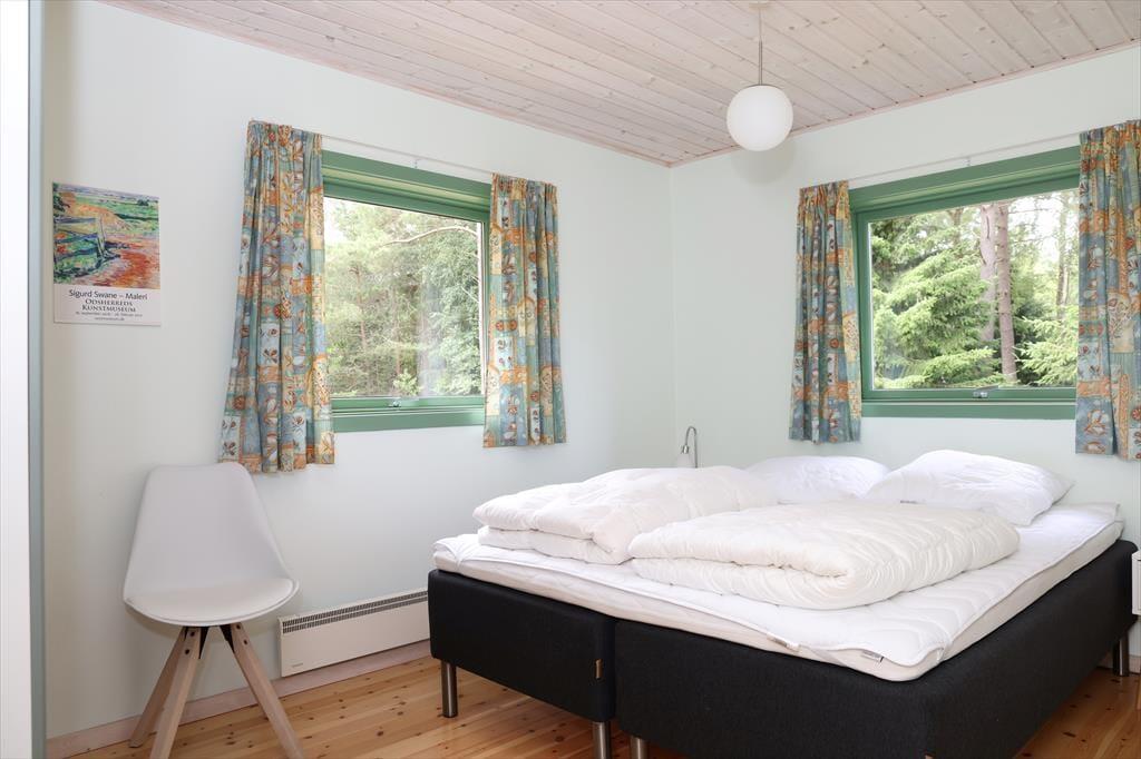 Huset er indrettet med en skøn stue, hvor du virkelig mærker den unikke og særdeles gode stemning, her kan der spilles et slag kort eller du kan læse en god bog imens ilden syder i brændeovnen. I det hyggelige køkken kan I hjælpes med at tilberede en god frokost. Der er et dejligt badeværelse med brus og tre gode soveværelser, de to med dobbelt senge, det tredje med to enkeltsenge samt mulighed for at benytte husets hems. På den solrige terrasse kan der både grilles, hygges eller hvad med at nyde et godt glas vin, mens børnene leger.