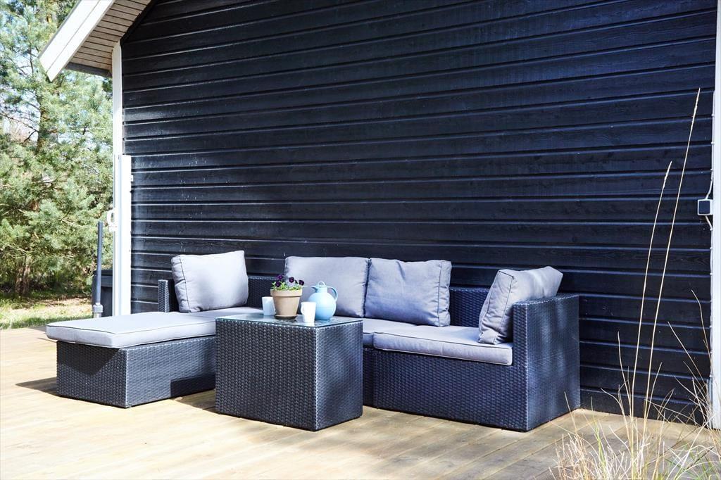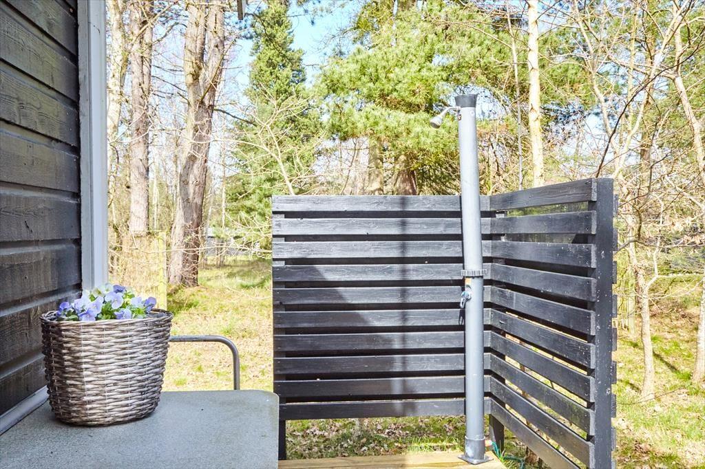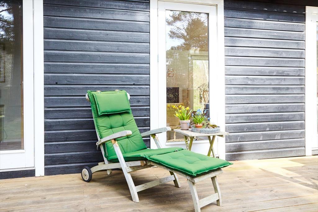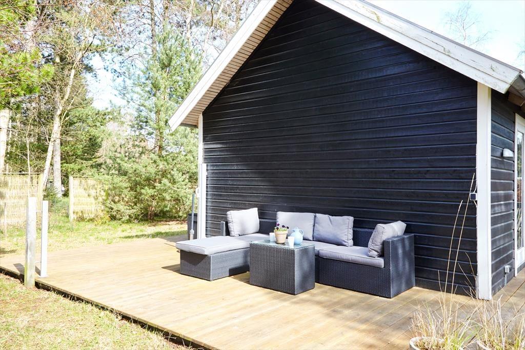 Udendørs kan sommerhusets store og afskærmede træterrasse nydes. Har I haft en lang dag ude af huset med masser af oplevelser, så trænger I måske bare til at nyde aftenen på terrassen foran bålet og snakke om dagens oplevelser imens i griller skumfiduser over bålet. Eller måske har kulden lige sluppet jorden, og det er tid til årets første grillpølse. Hvis du har brug for en eftermiddagslur eller bare en time i solen, så kan resten af familien måske dyste i badminton imens, eller gøre klar til aftensmaden.