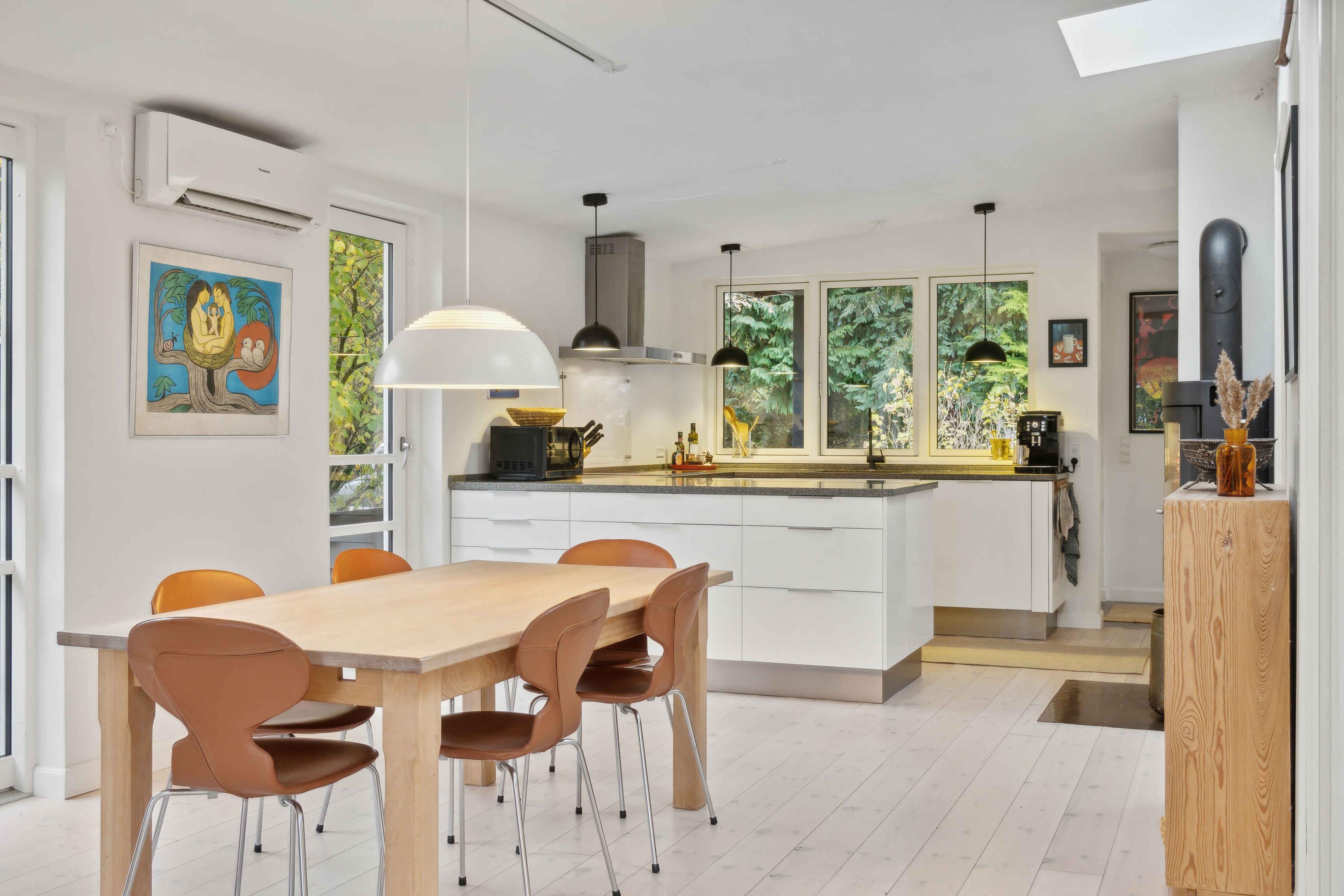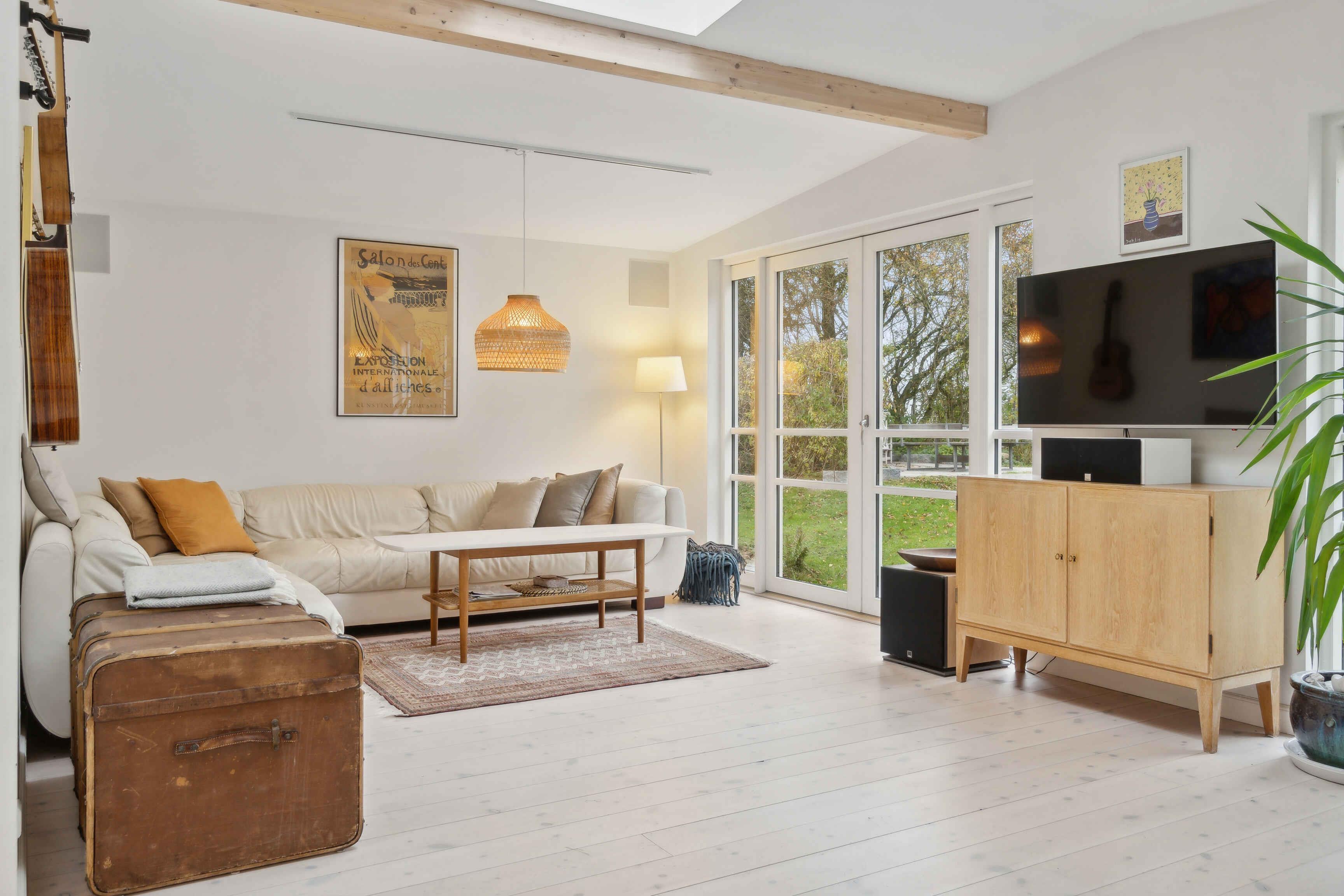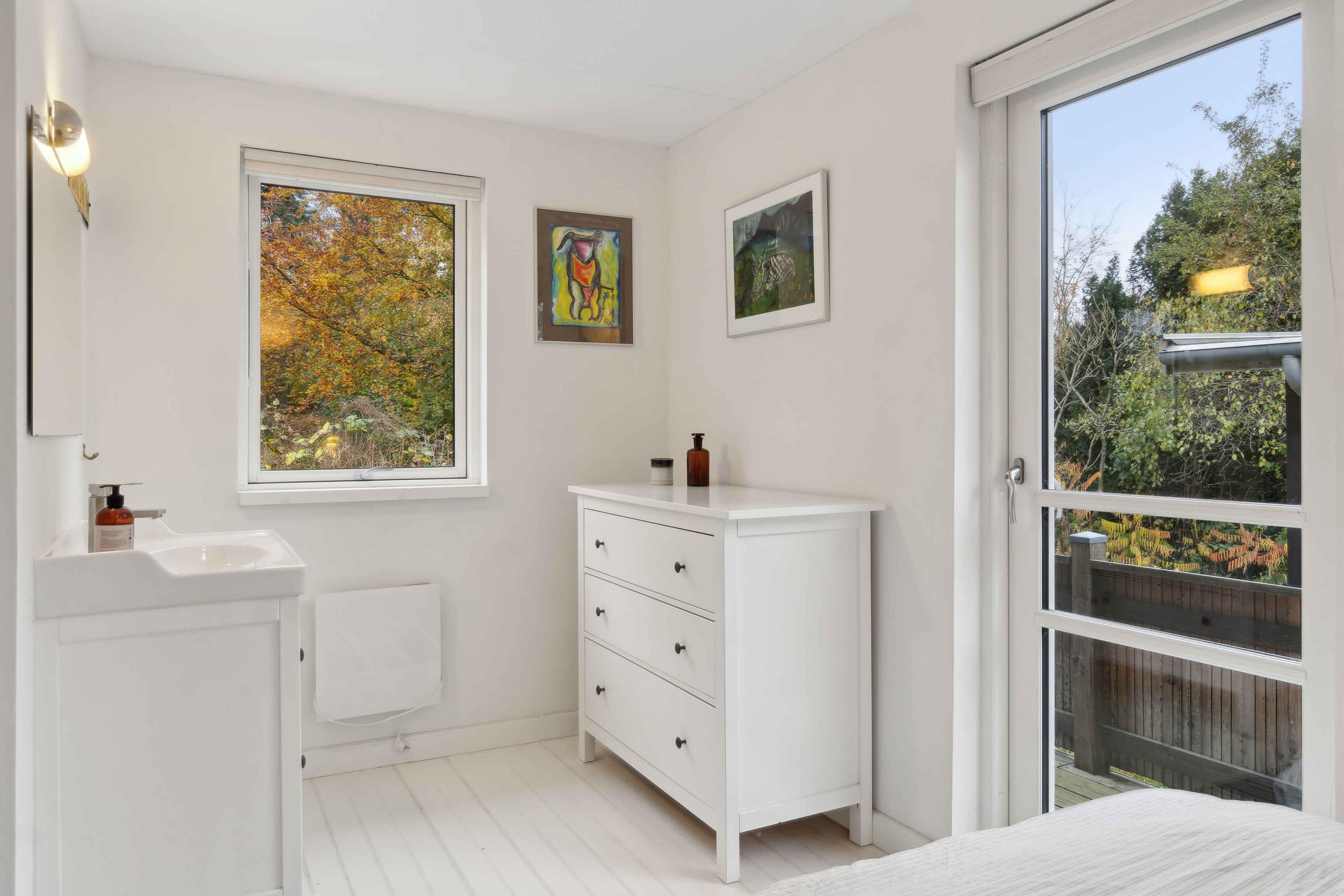 Dette arkitekttegnede sommerhus byder på en fantastisk beliggenhed tæt ved vandet og med egen strand, ideelt for dem, der ønsker ro og afslapning i naturskønne omgivelser. Med fem soveværelser og ti sovepladser er huset oplagt til større grupper eller familier. Tre soveværelser findes i selve huset, og de to øvrige er placeret i et hyggeligt anneks med eget badeværelse. Det store vinduesparti og ovenlysvinduerne skaber en lys og luftig atmosfære i hele huset. Her kan I nyde udsigten til haven og kigget til fjorden fra stue, spisestue og køkken. Den rummelige have byder på flere terrasser og en hyggelig bålplads. Her kan I nyde aftenerne udendørs og lade jer omfavne af naturen og den friske luft. Med kun 100 meter til vandet er stranden lige ved hånden. Her er rig mulighed for både badning og fiskeri, så strandliv kan blive en del af jeres ferieoplevelse. Huset er udstyret med Chromecast og indbyggede højttalere, perfekt til en hyggelig aften efter en dag i det fri. Det er nemt at koble af og nyde musikken eller en god film. For de eventyrlystne er der surfbrætter til fri afbenyttelse. I kan også finde tang, muslinger, svampe og urter i området, ideelt til dem, der ønsker at komme tættere på naturen. Området byder på mange oplevelser. Besøg Malergården eller tag en gåtur langs den smukke kyst. I finder her en fredfyldt atmosfære og mange naturoplevelser. Dette sommerhus har sjæl og charme. Her får I den perfekte ramme for en ferie med afslapning, naturoplevelser og nærvær i smukke omgivelser. Obs, udlejes ikke til erhversmæssigt brug.